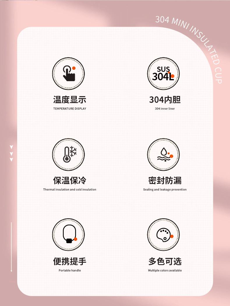 Taza de Acero Inoxidable 304 con Aislamiento al Vacío Taza con Pantalla de Temperatura para Estudiante Taza Rebotadora de Guisante Regalo de Negocios Taza de Agua Vacío Portátil
