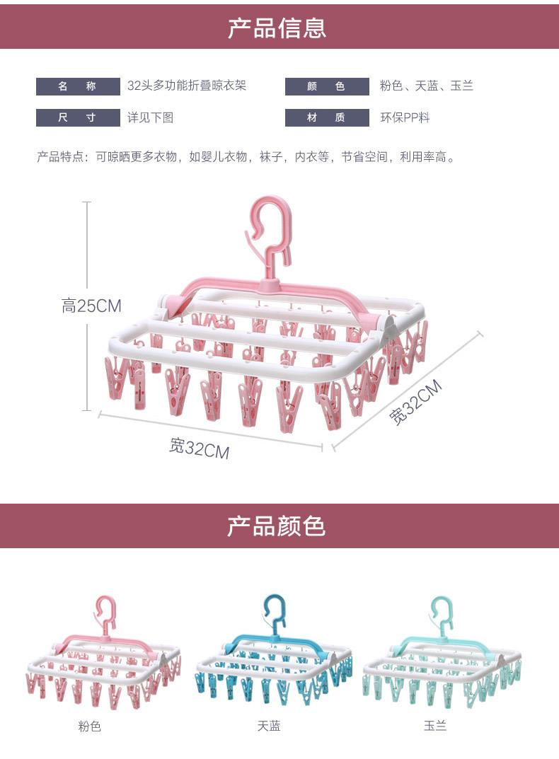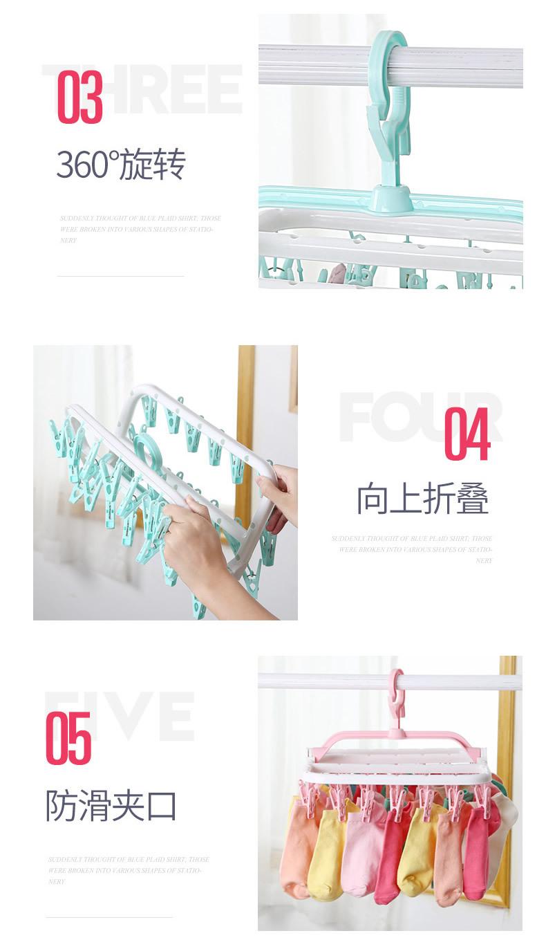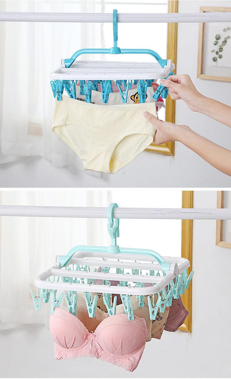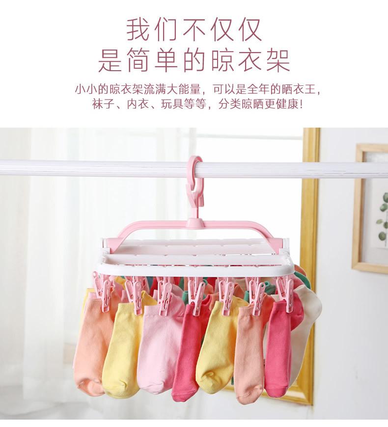 Tendedero de ropa interior y calcetines para bebés, de plástico, con múltiples clips, resistente al viento, plegable, para pantalones, soporte para ropa de bebé y niños.