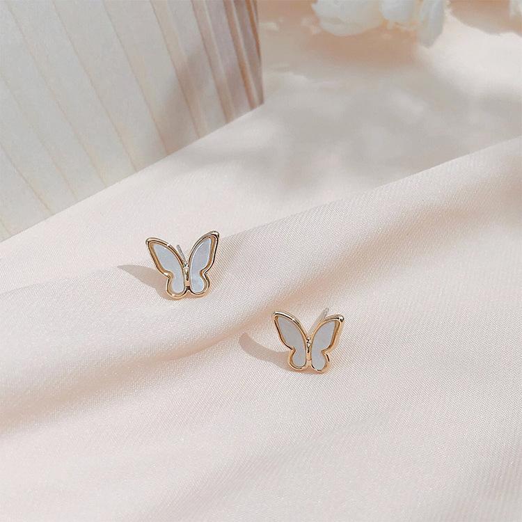 Pendientes de plata s925 con forma de mariposa, sencillos y bonitos, de Corea del Sur, con personalidad fresca y dulce.