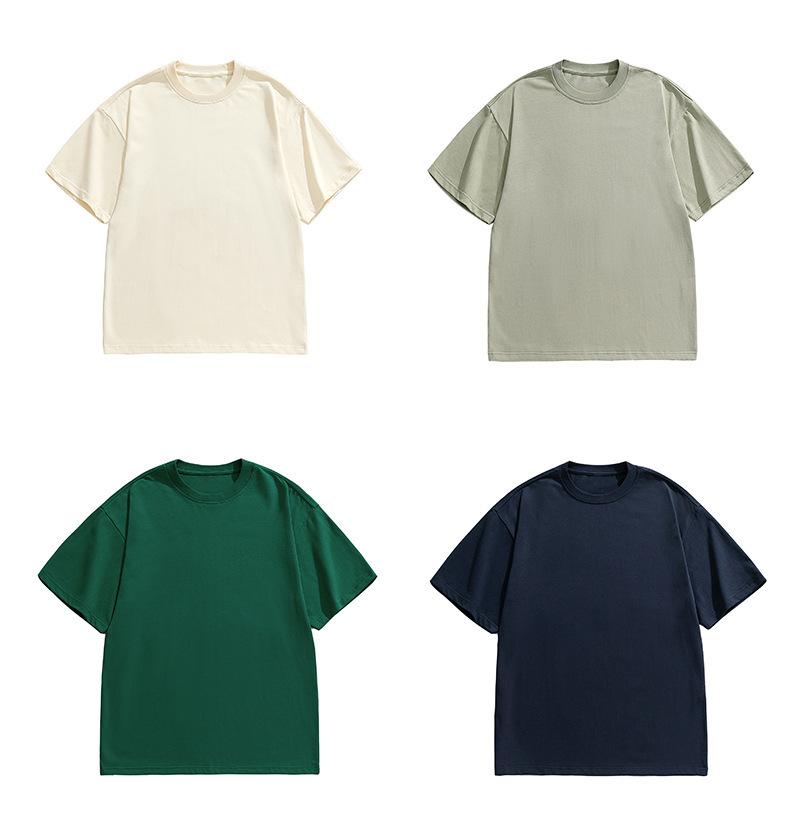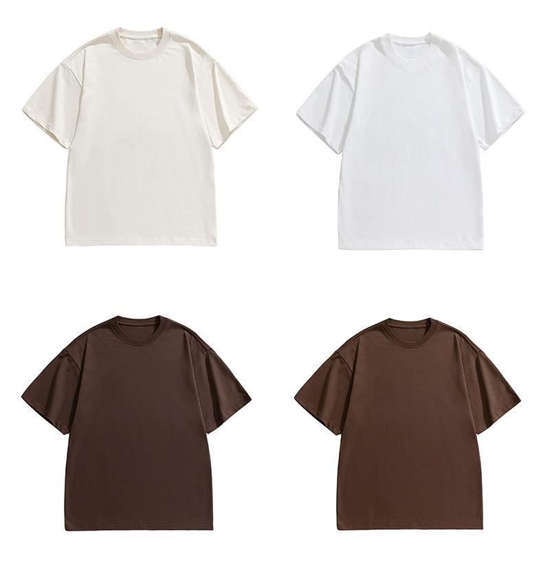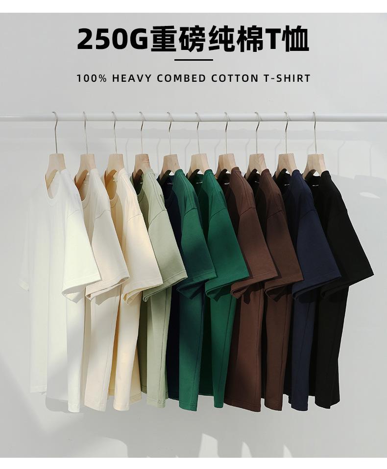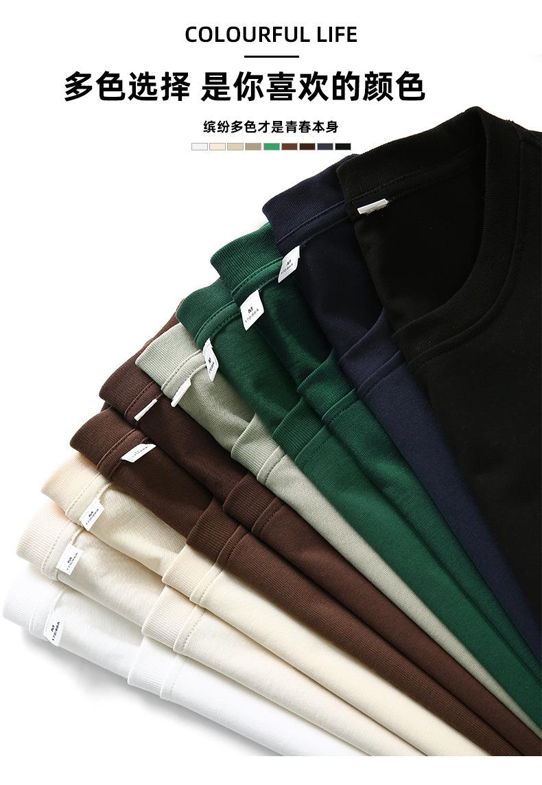 Camiseta de manga corta de algodón grueso de 250 g para hombre, de verano, holgada, de color liso, informal, de marca de moda, combinable con todo.