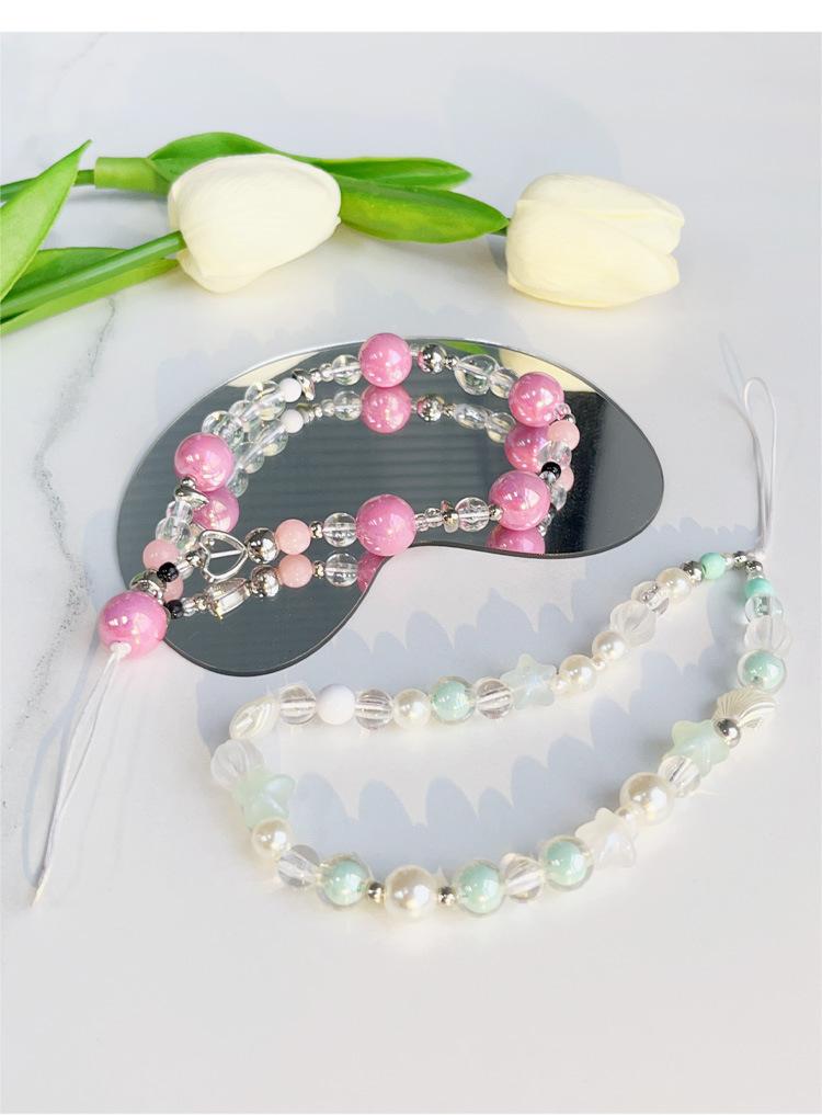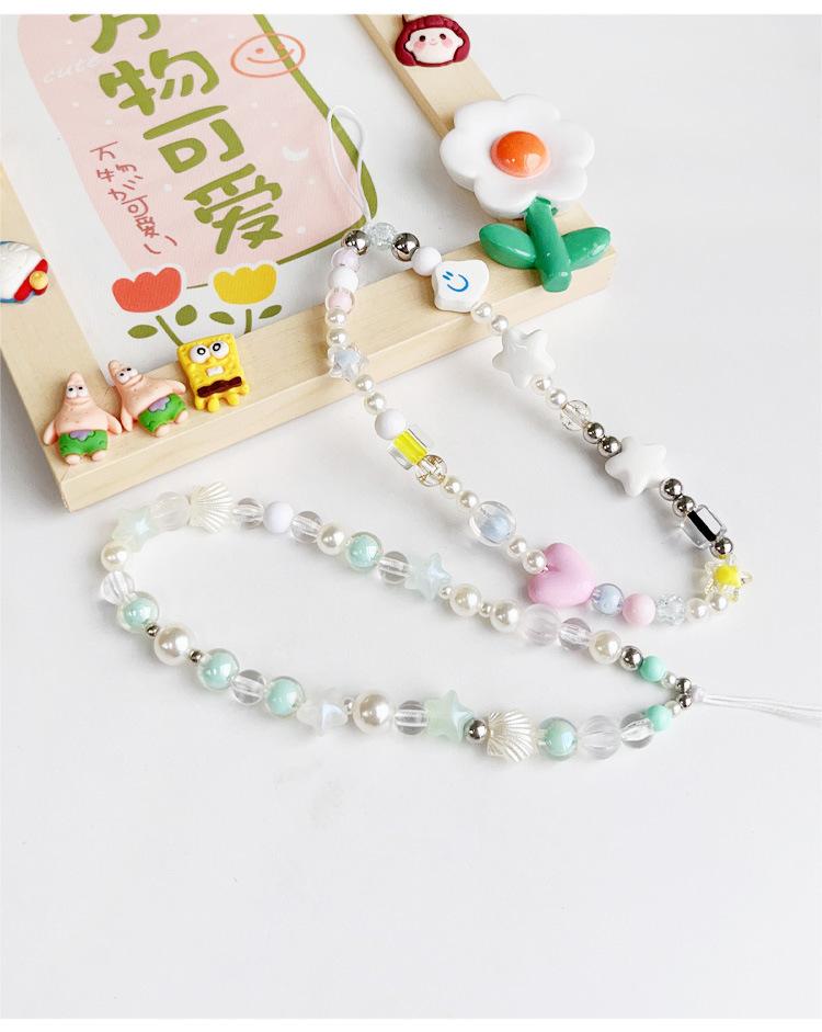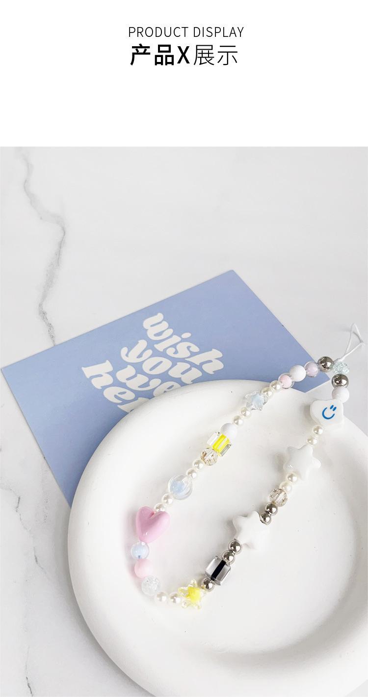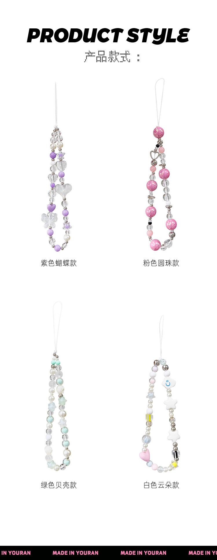 Cadena para Celular con Cuentas de Color Color Caramelo Corta Lanyard para Carcasa de Celular Correa de Muñeca Cadena Anticaída Correa de Mano Femenina Linda