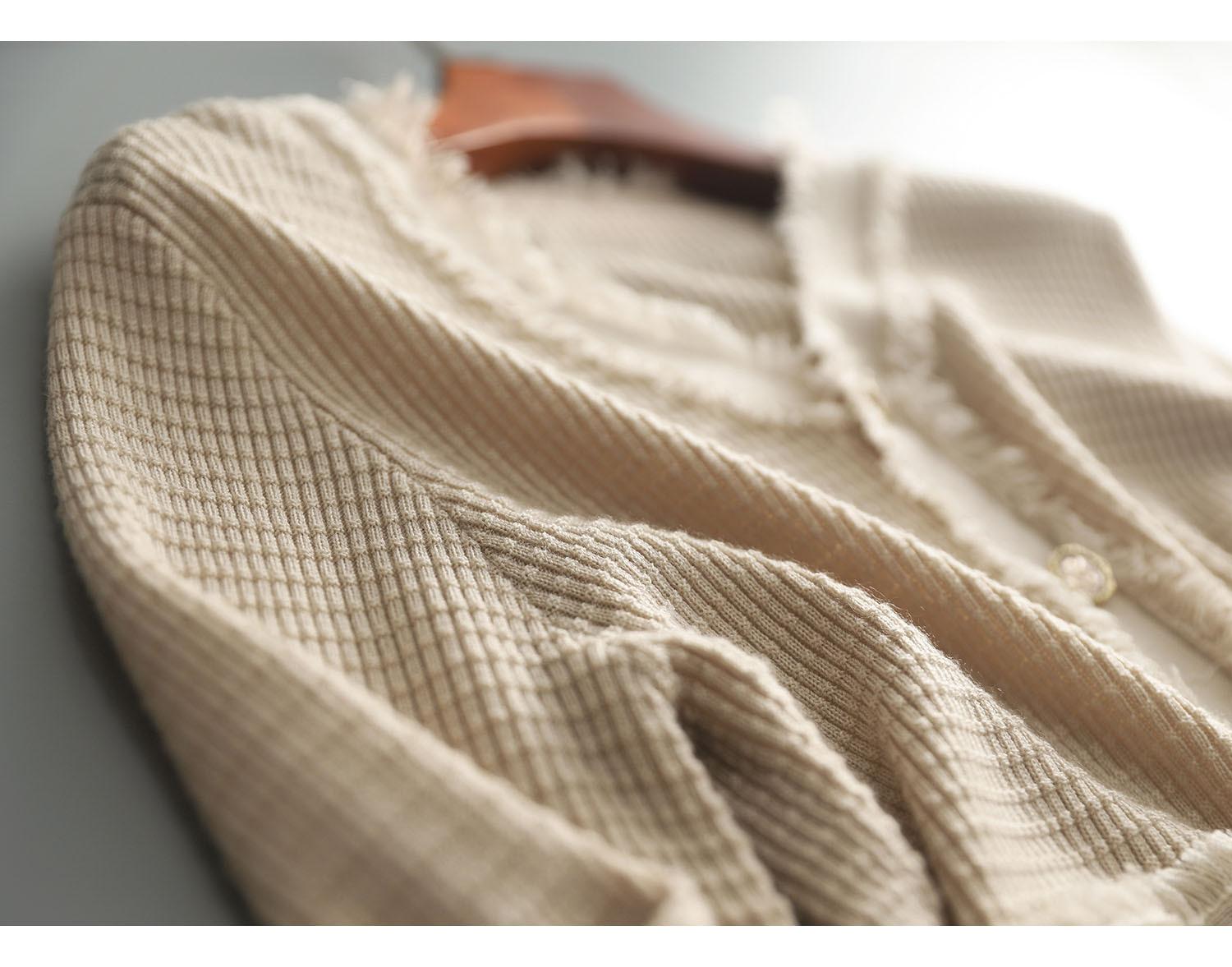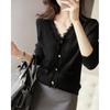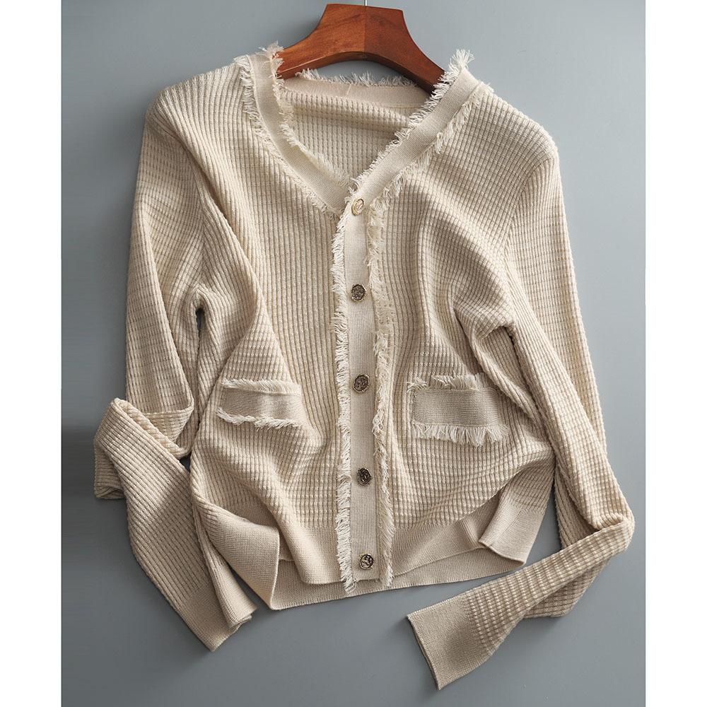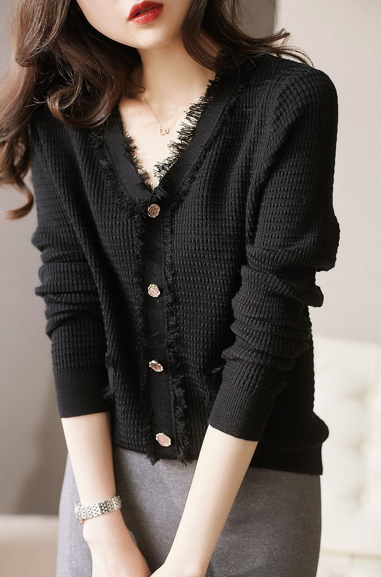 Suéter de punto de manga larga para mujer, otoño 2022, nuevo abrigo pequeño con borlas negras, top de cuello en V para mujer de primavera y otoño