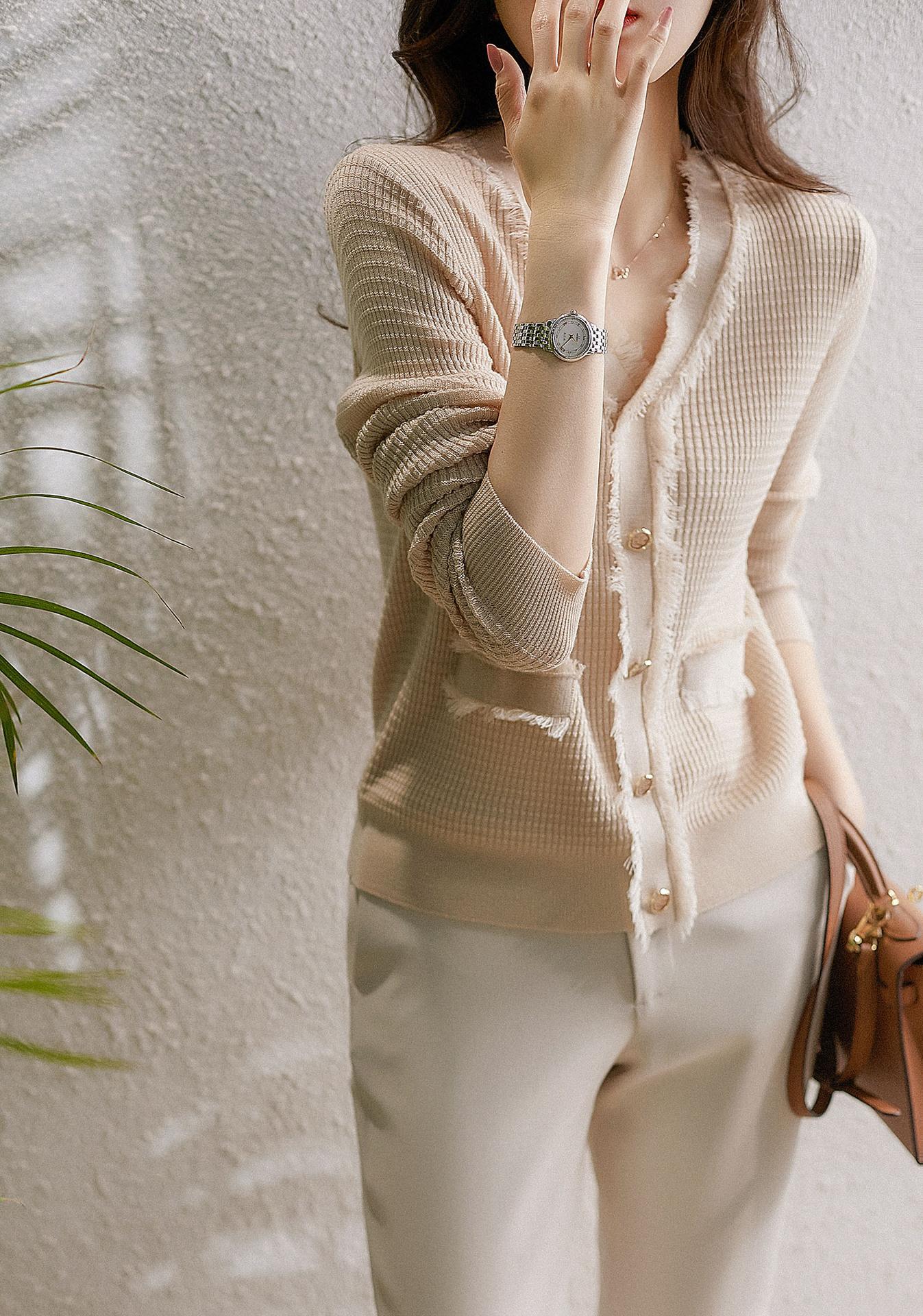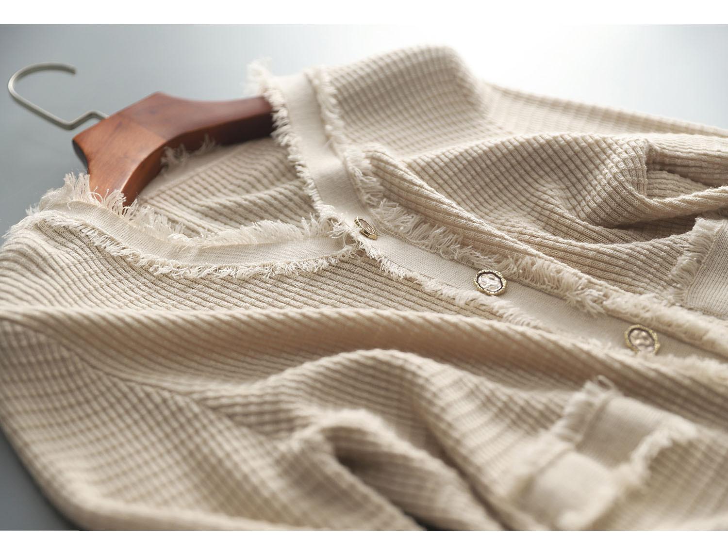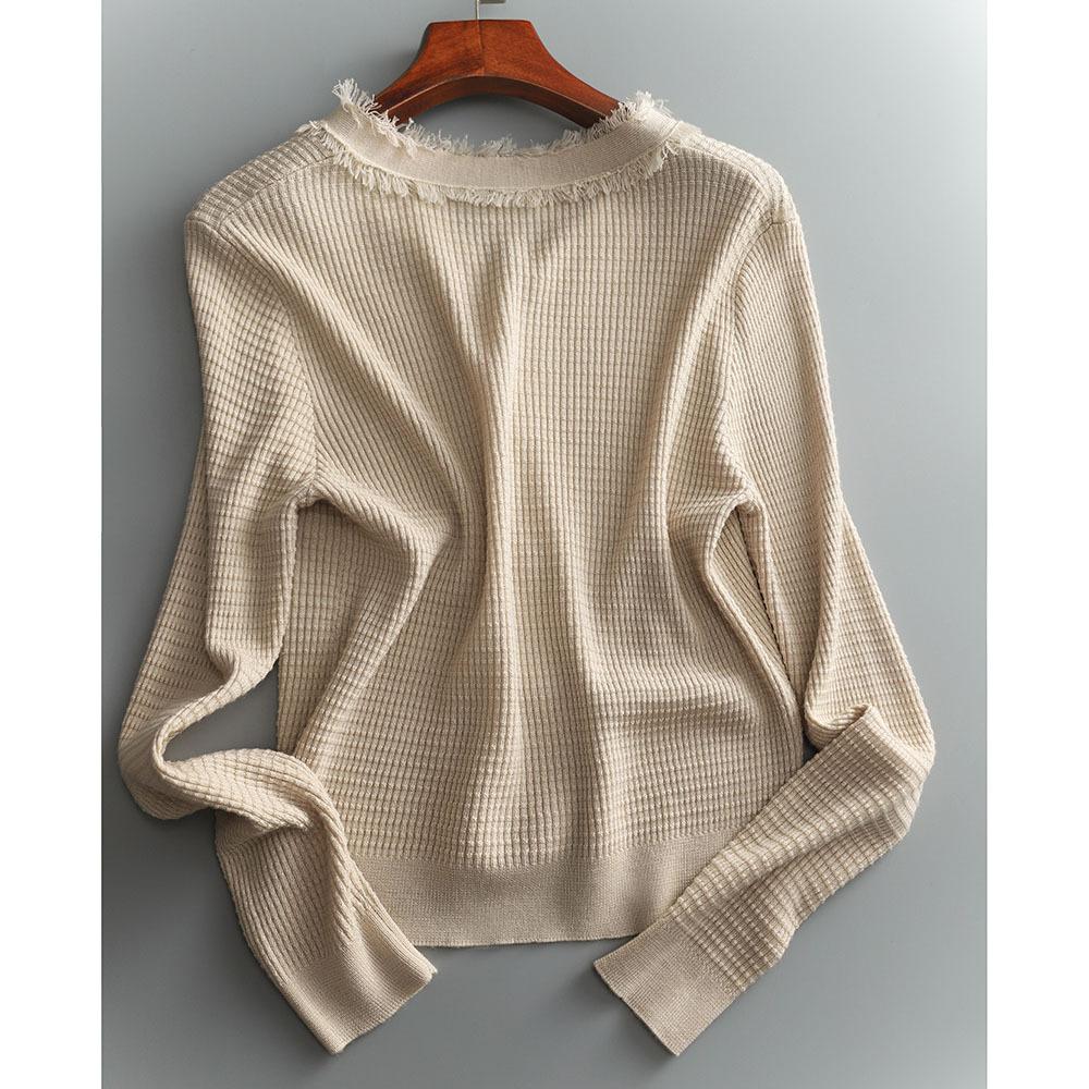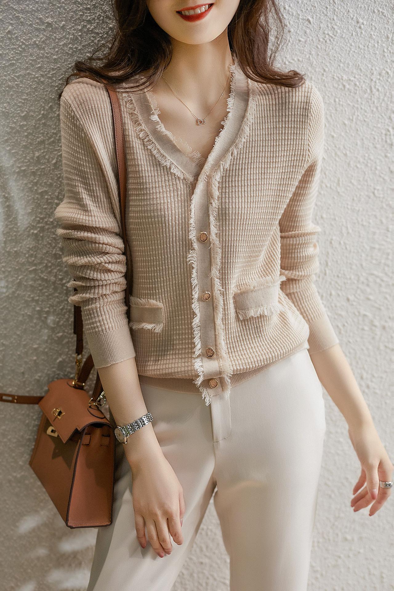 Suéter de punto de manga larga para mujer, otoño 2022, nuevo abrigo pequeño con borlas negras, top de cuello en V para mujer de primavera y otoño