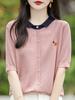 Compra POLO Collar Thin Knitted Short-sleeved T-shirt Women's 2024 Summer Loose Casual Small Shirt bordado ombro meia manga Top al por mayor en Joom.pro