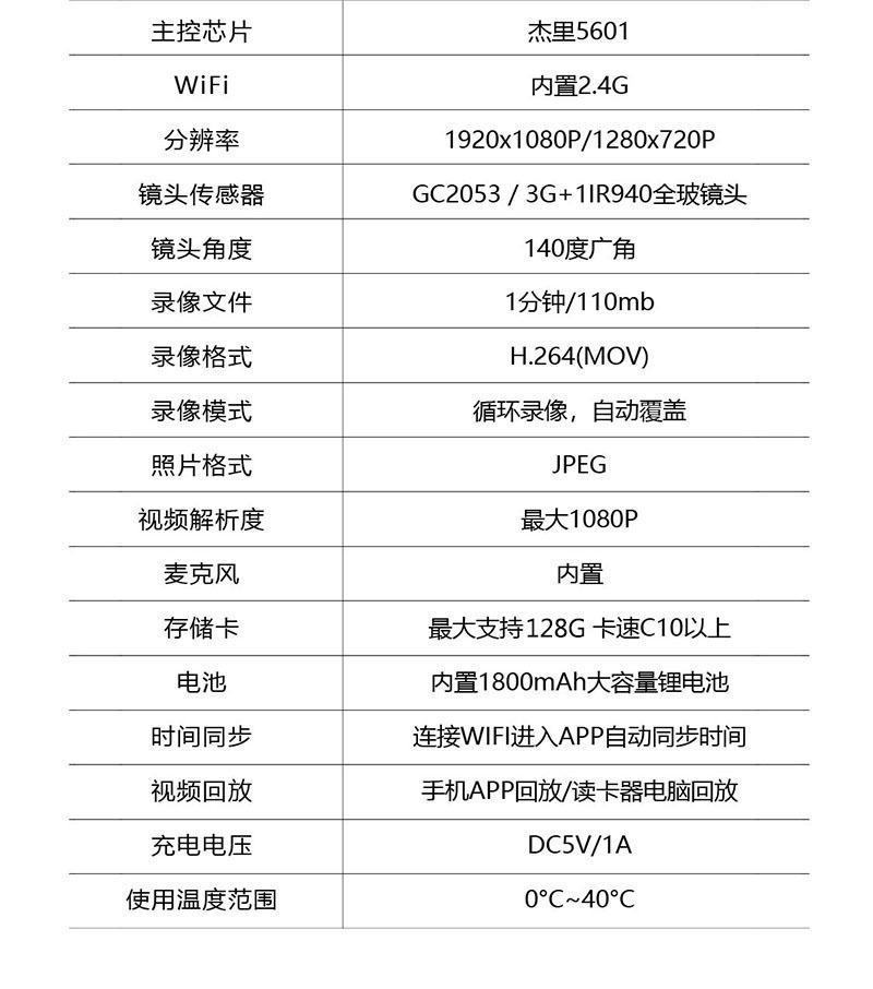10. Cuando el WIFI está encendido o apagado, la grabación de video dura aproximadamente 5 horas y 30 minutos, y la resolución de video es 1080P