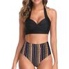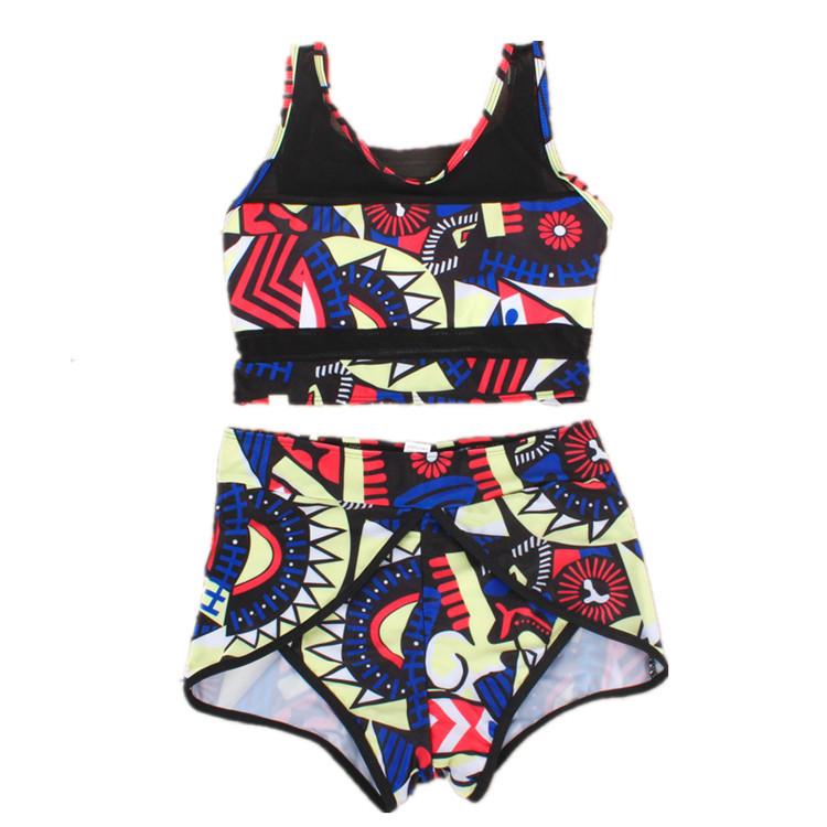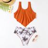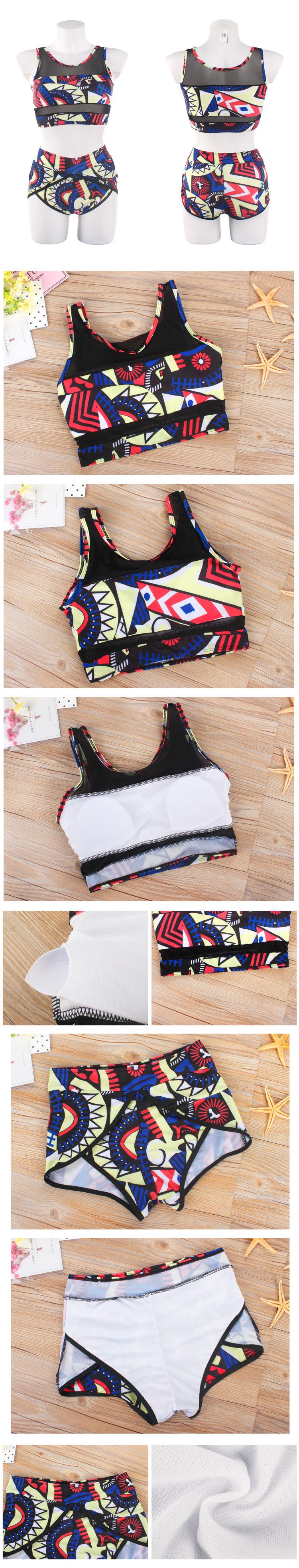 Traje de baño dividido transfronterizo nuevo para mujeres europeas y americanas, bikini sexy de cintura alta con costuras de malla estampadas, traje de baño AliExpress.