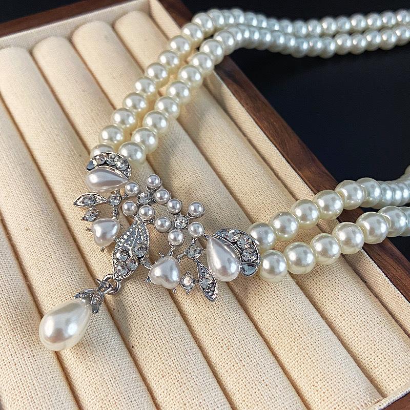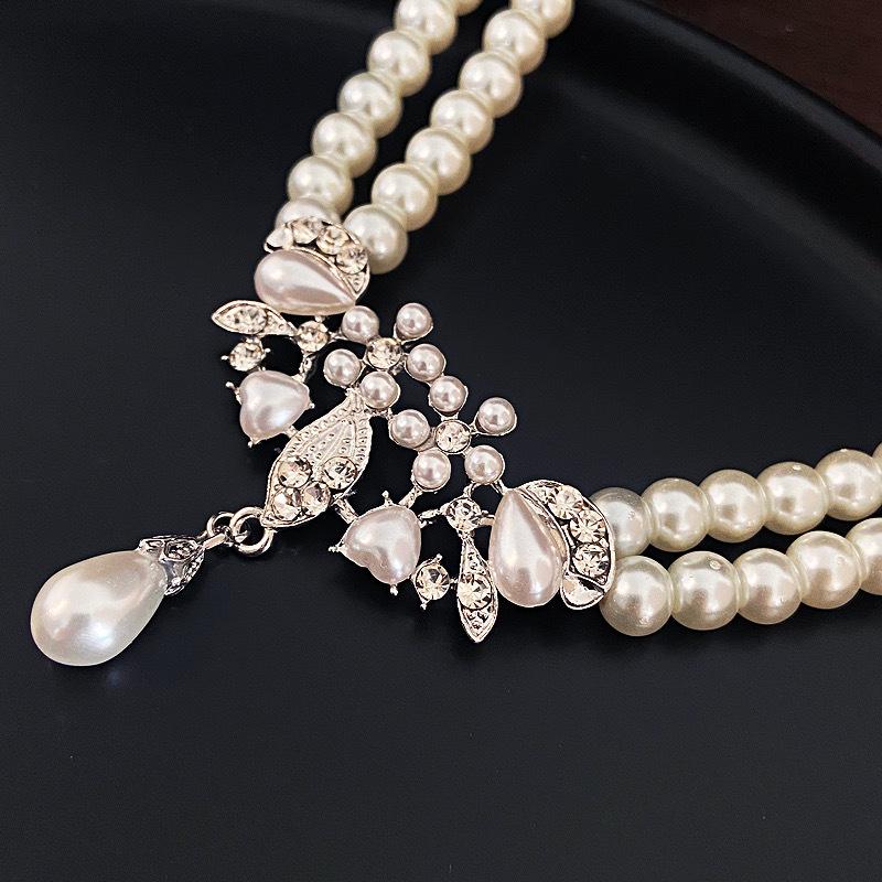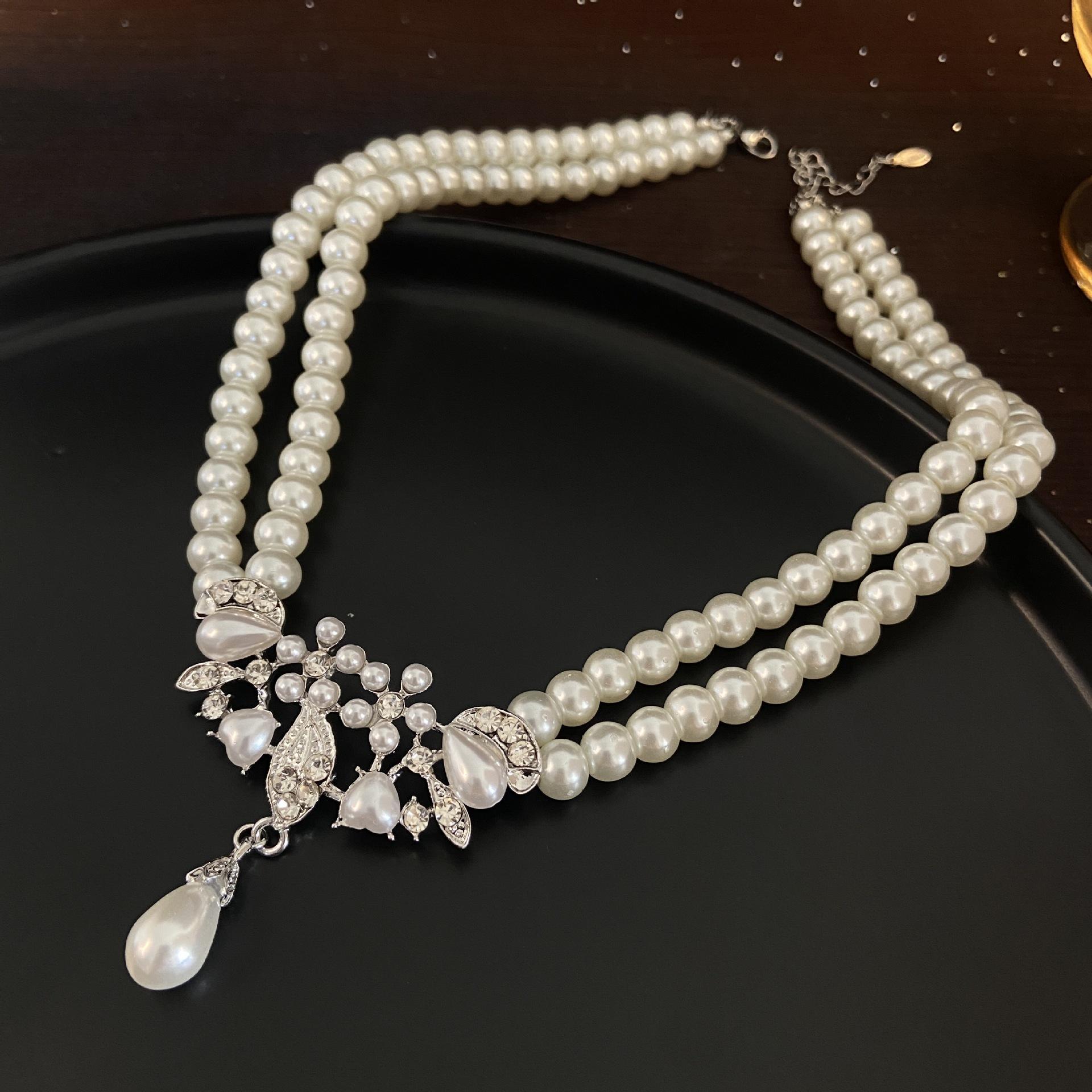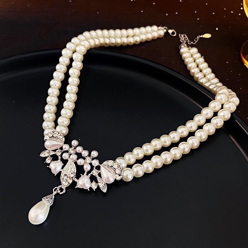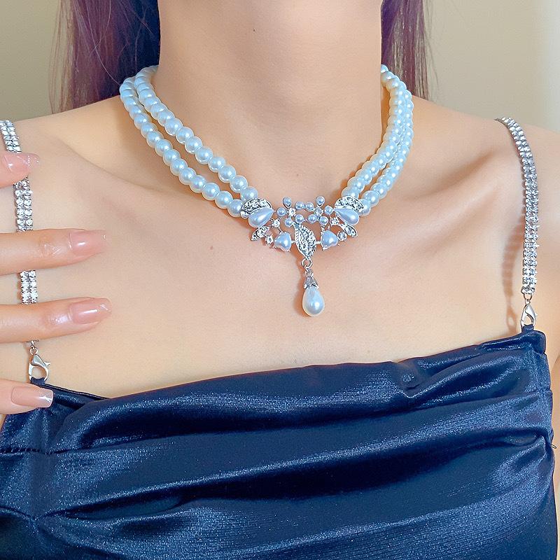 Collar de perlas de agua con diamantes de lujo, estilo francés, ligero, con diseño creativo de nicho, cadena de clavícula con sentido elegante, joyería de alta gama para mujeres.