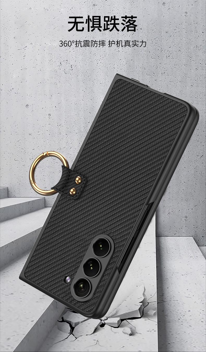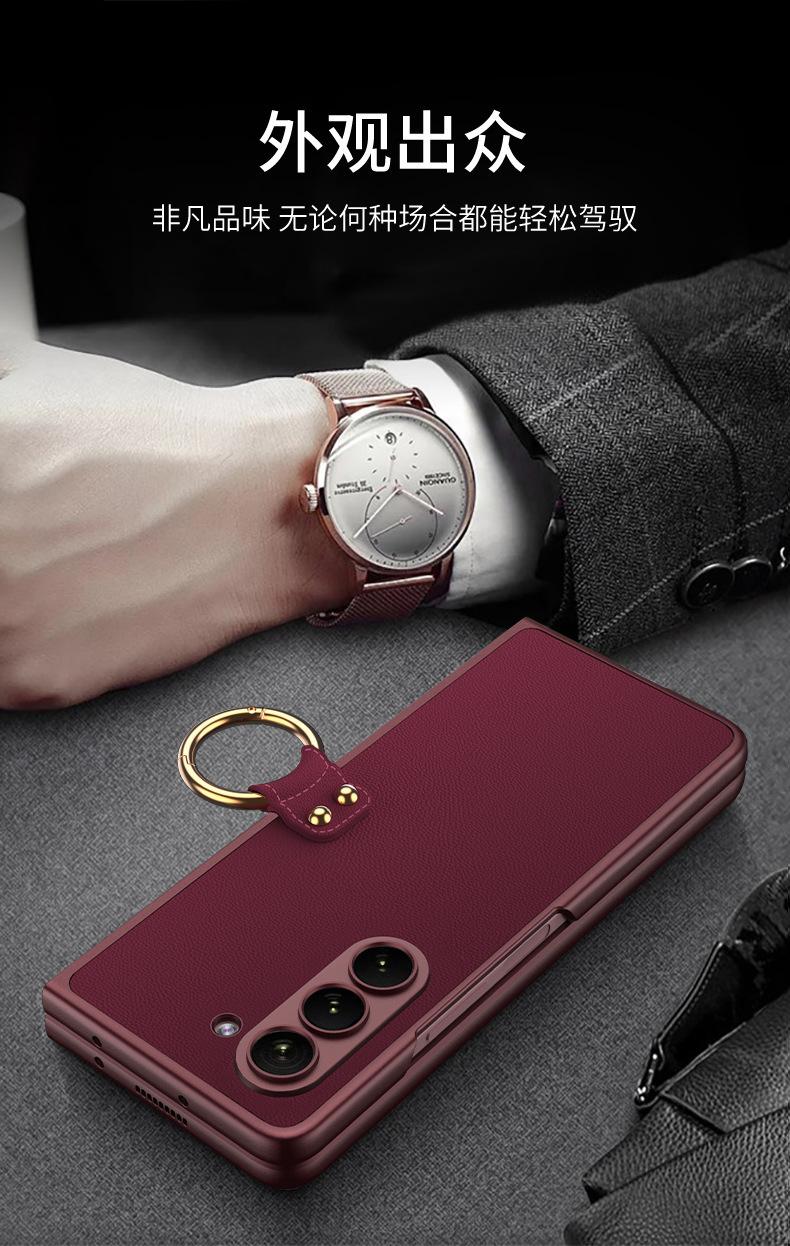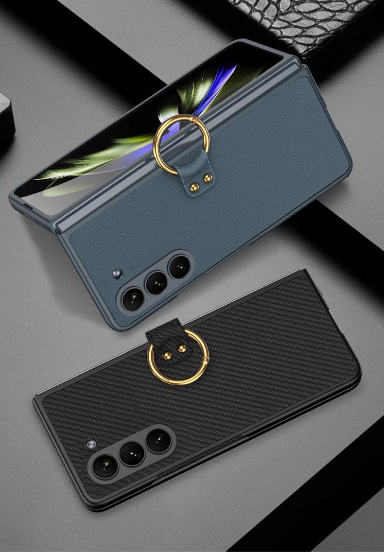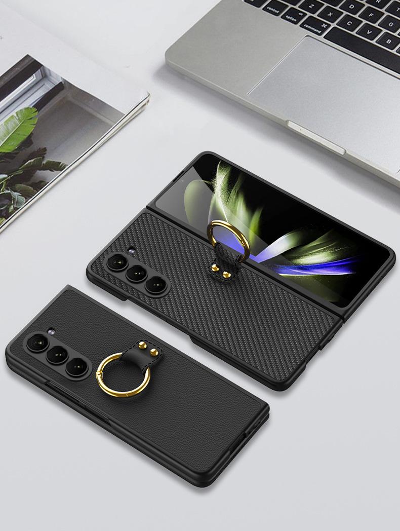 Para Samsung GalaxyZFold5 Funda de Teléfono Anillo Plegable Creativo Ultrafina Cuero Personalizada Estuche de Negocios