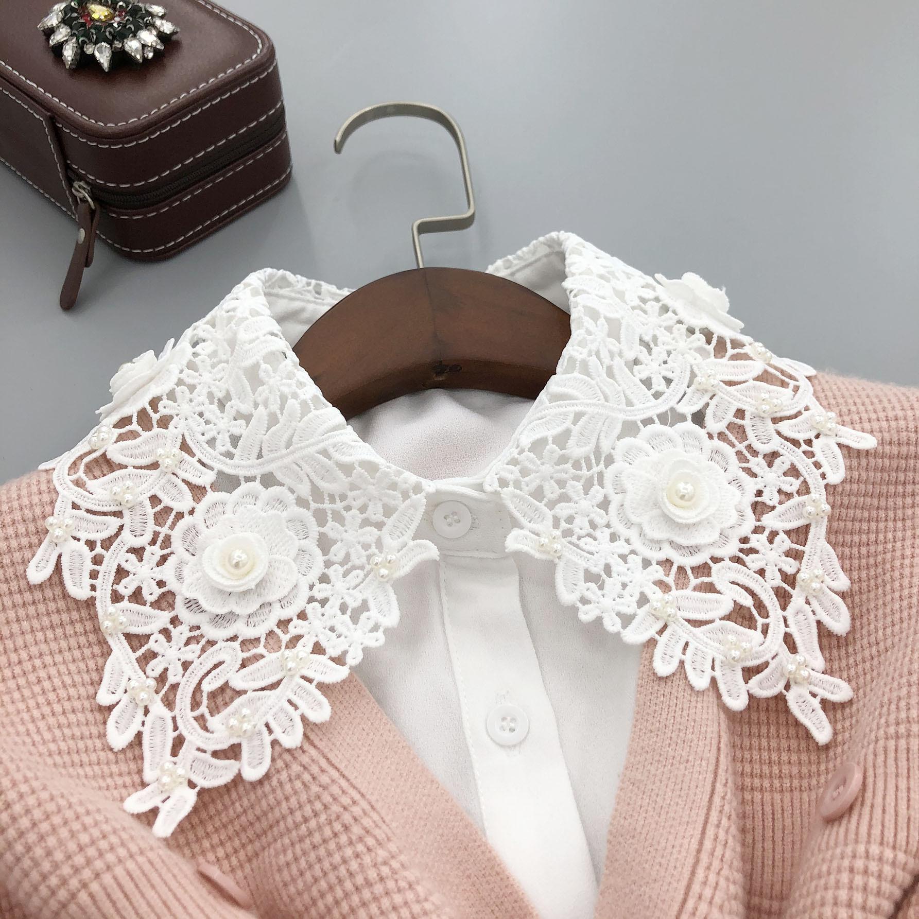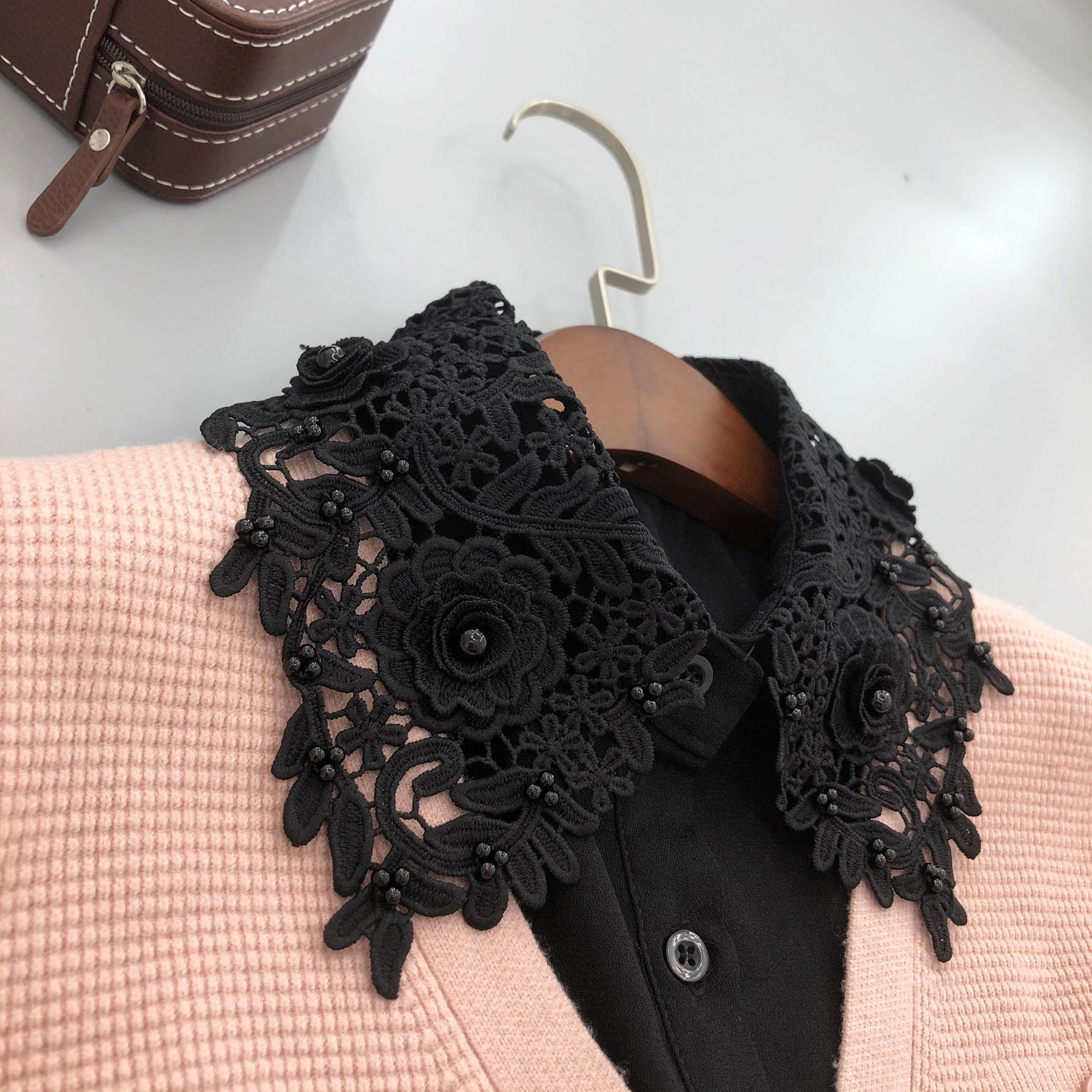 Suéter cálido de otoño e invierno estilo coreano versátil, flores solubles en agua, retro, versátil, decorativo, cuello falso para mujer con tacto de alta gama