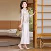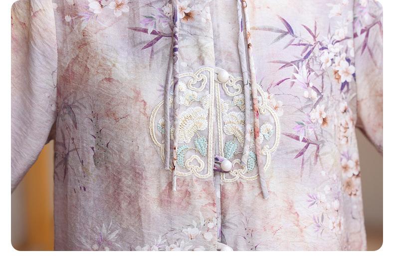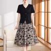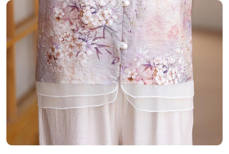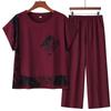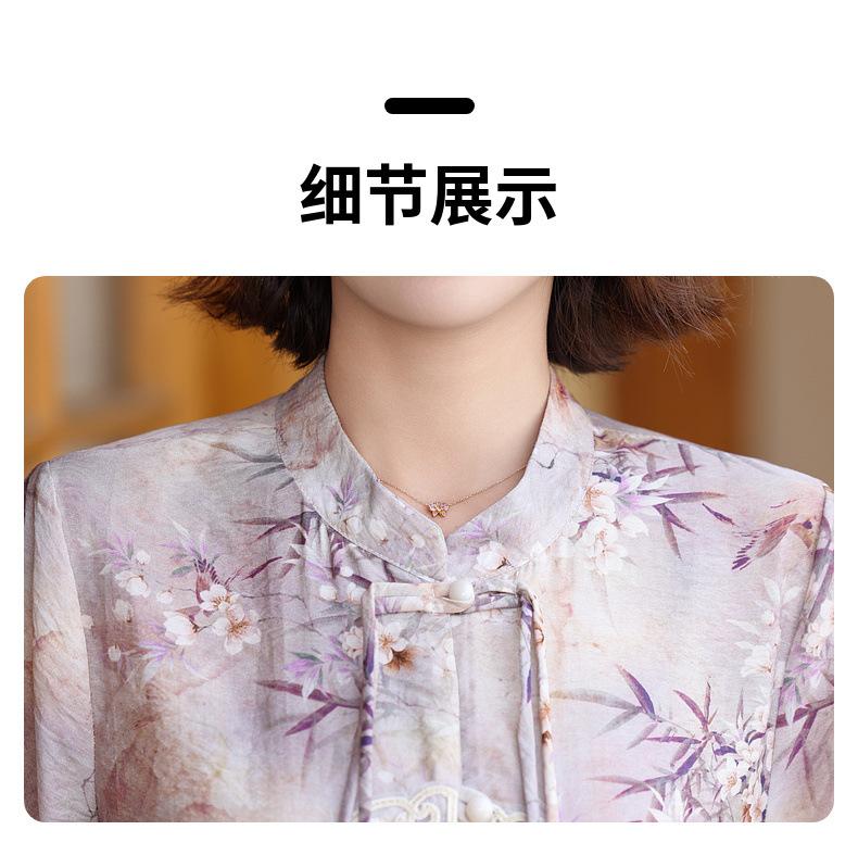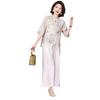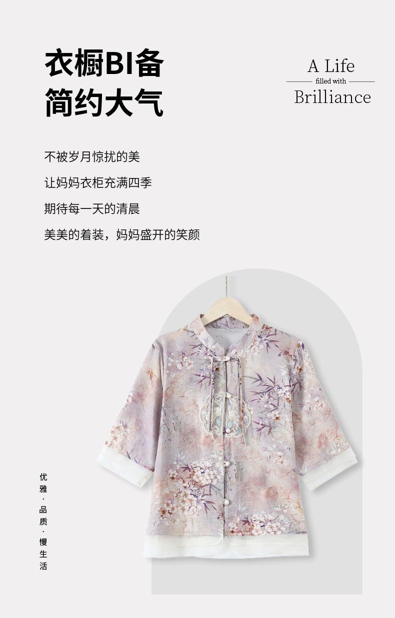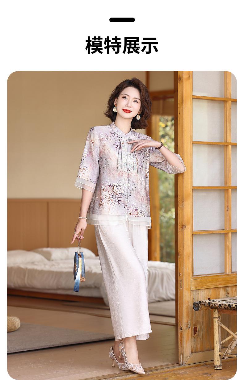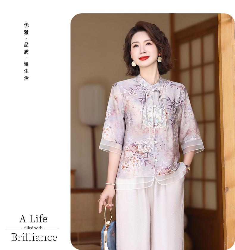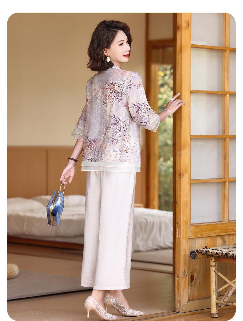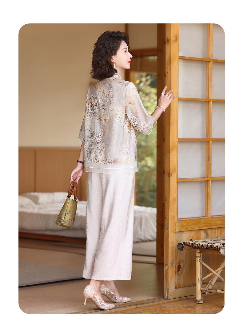 Vestido de madre 2024, nuevo traje, estilo occidental, moda, camisa de manga corta, para mujeres de mediana edad y mayores, verano, estilo chino, estilo nacional, conjunto de dos piezas.