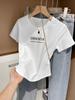 Camisa corta de manga corta para mujer, nueva camiseta de verano 2024 de estilo occidental a la moda, holgada y adelgazante.