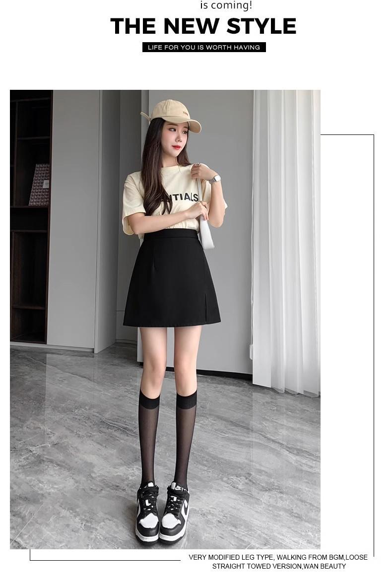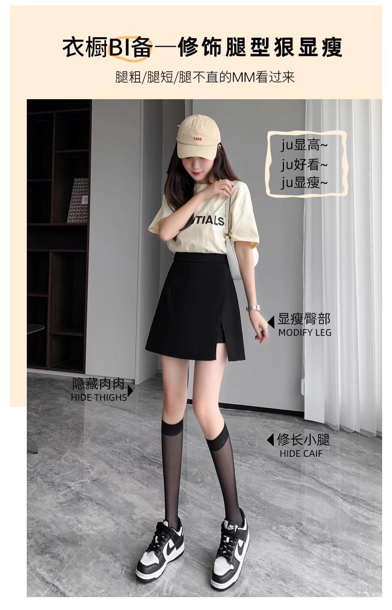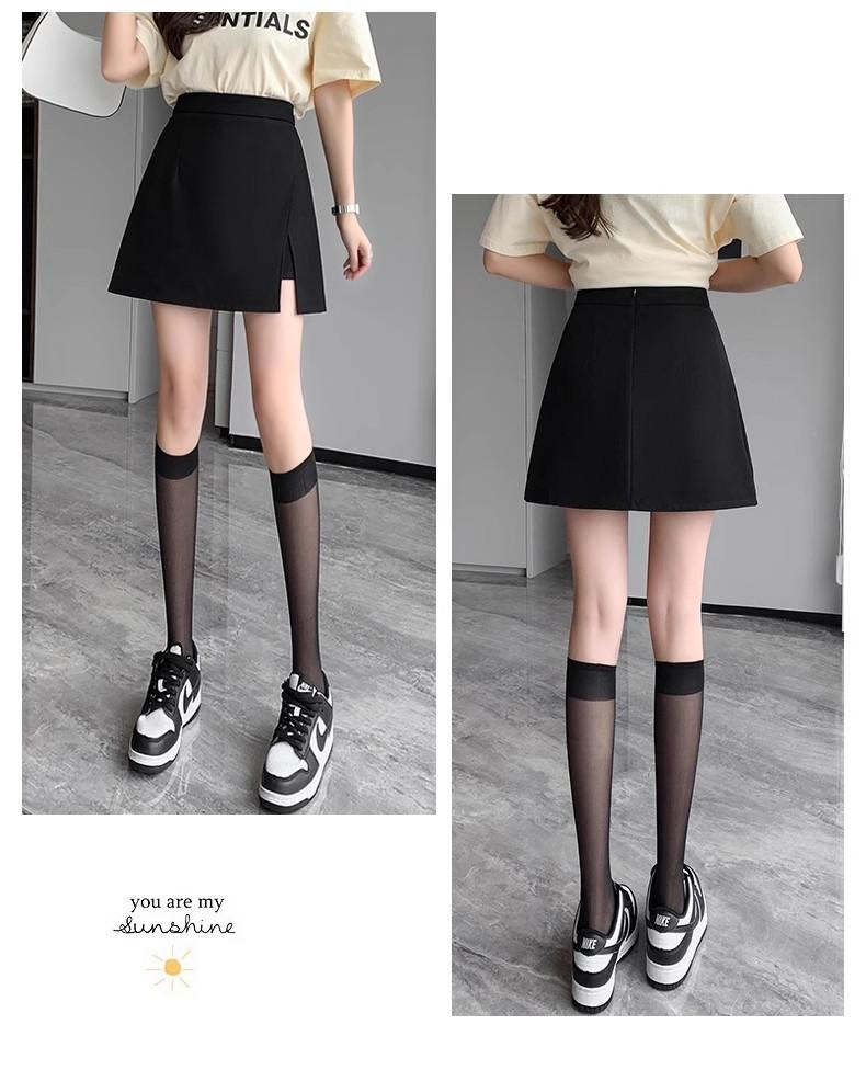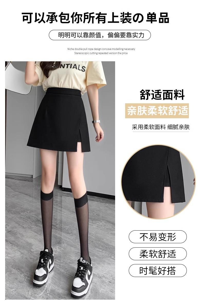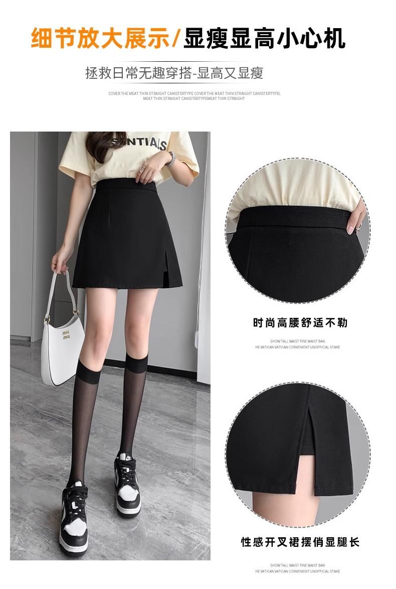 Falda de traje negra dividida para mujer, fina, de verano 2024, con cintura alta y caderas, ajustada, de corte A.