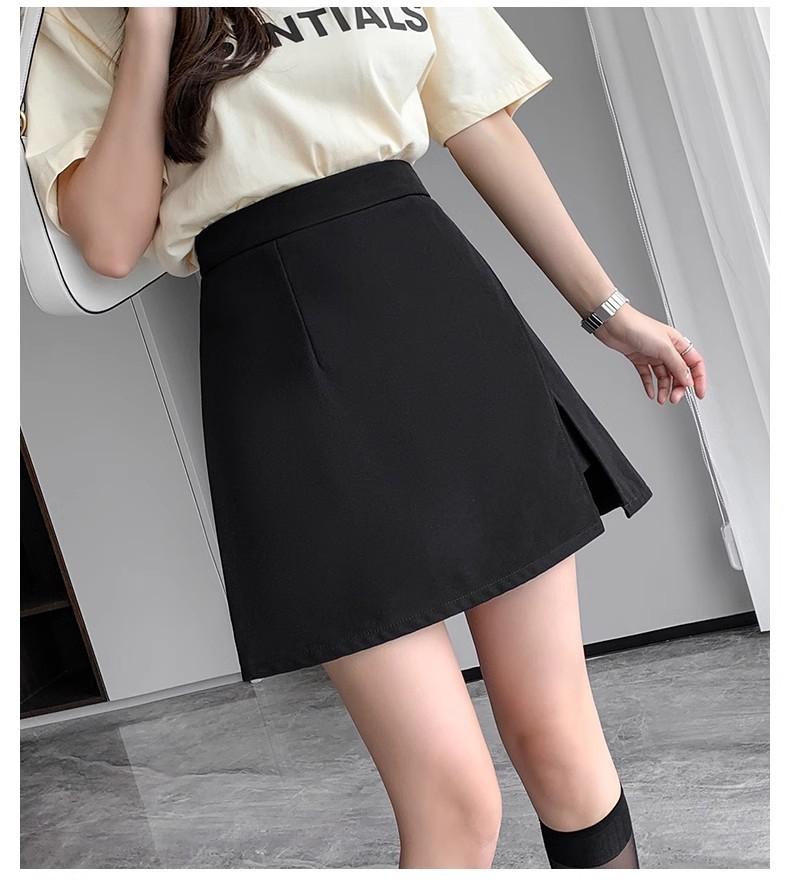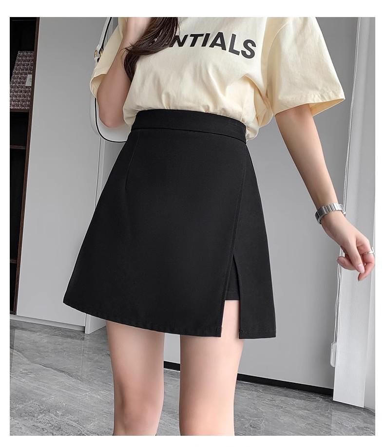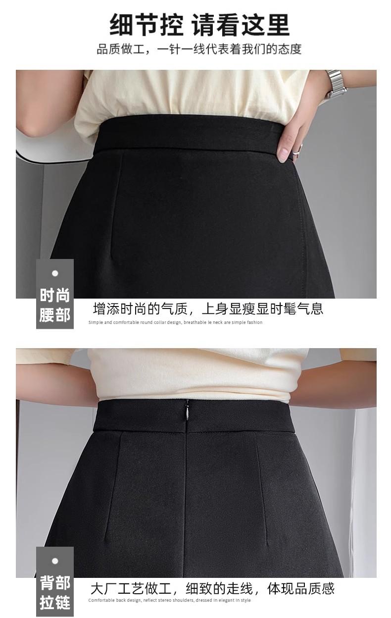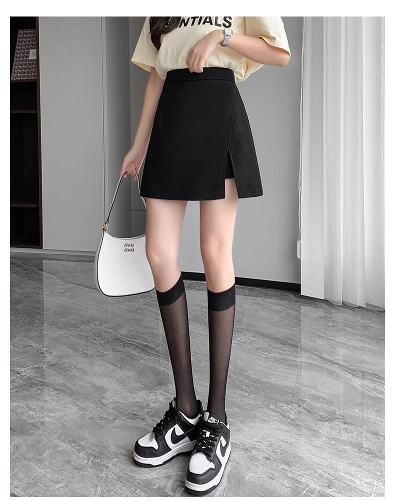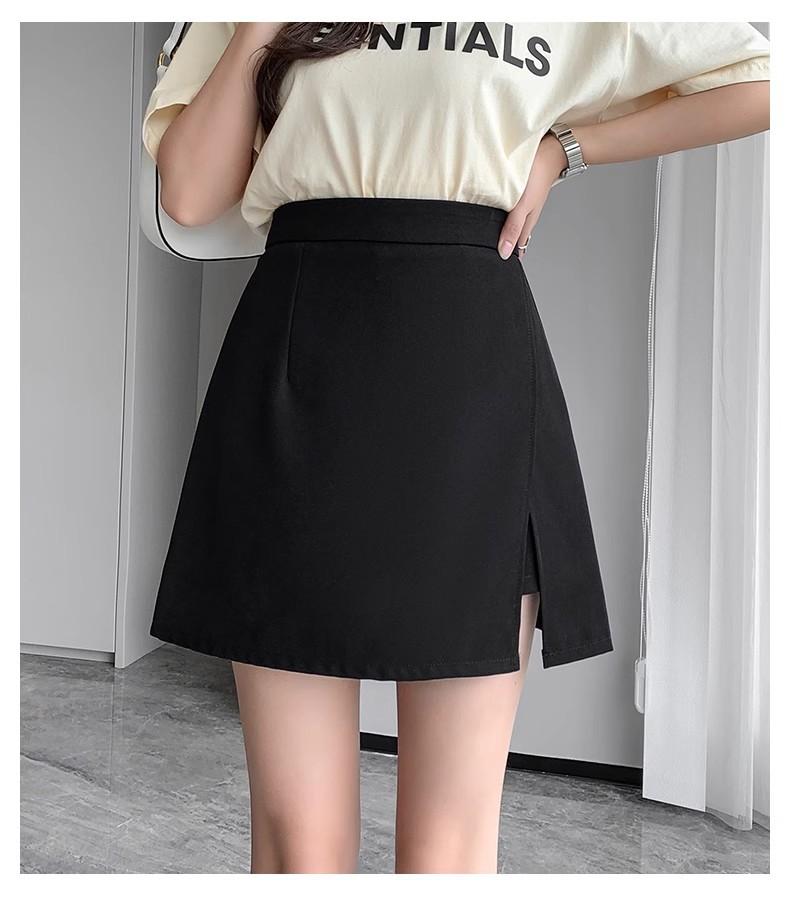 Falda de traje negra dividida para mujer, fina, de verano 2024, con cintura alta y caderas, ajustada, de corte A.