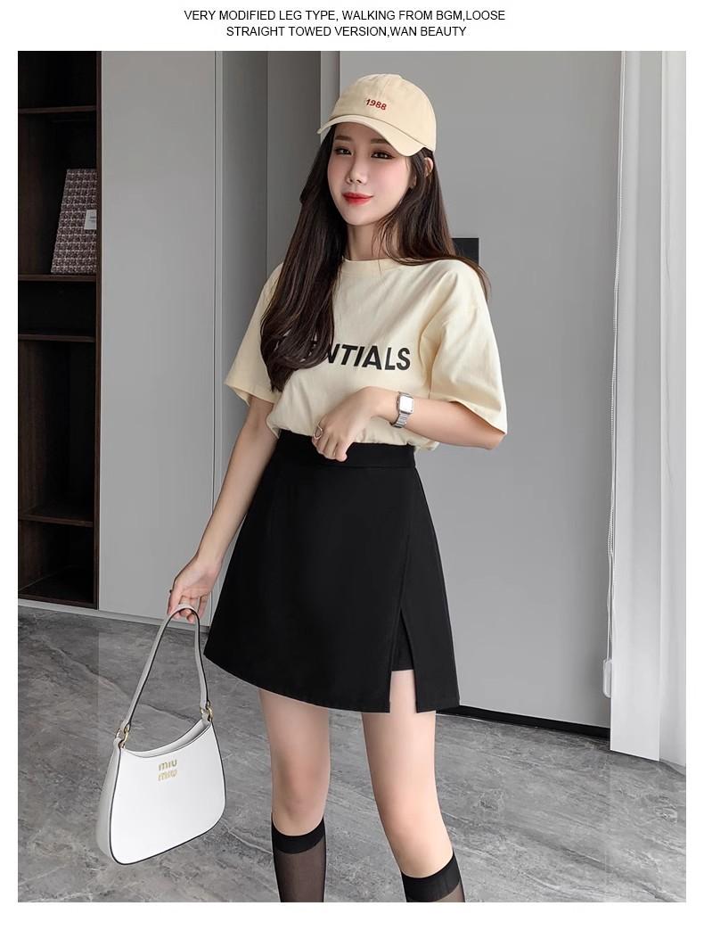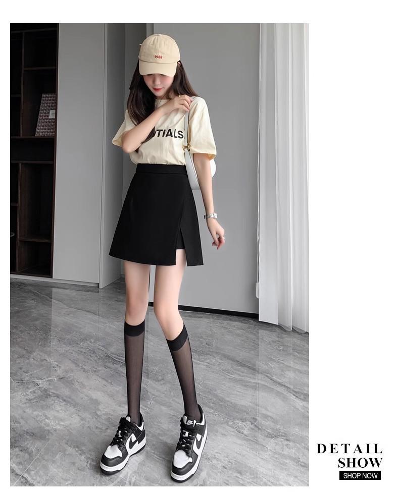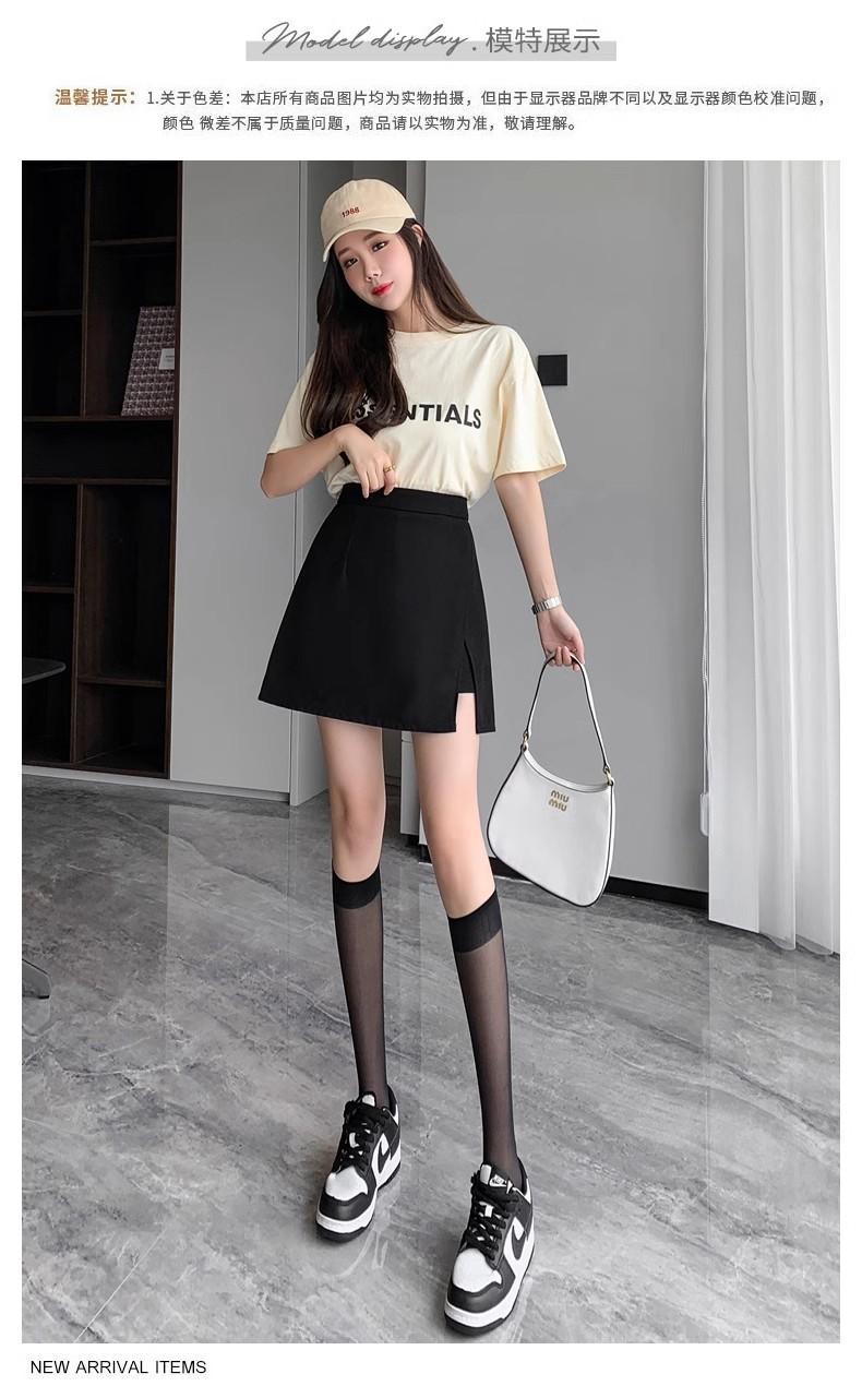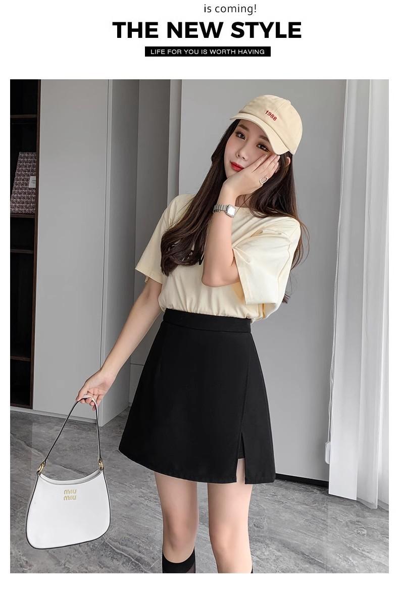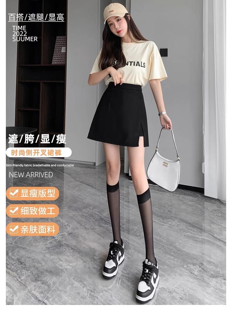 Falda de traje negra dividida para mujer, fina, de verano 2024, con cintura alta y caderas, ajustada, de corte A.