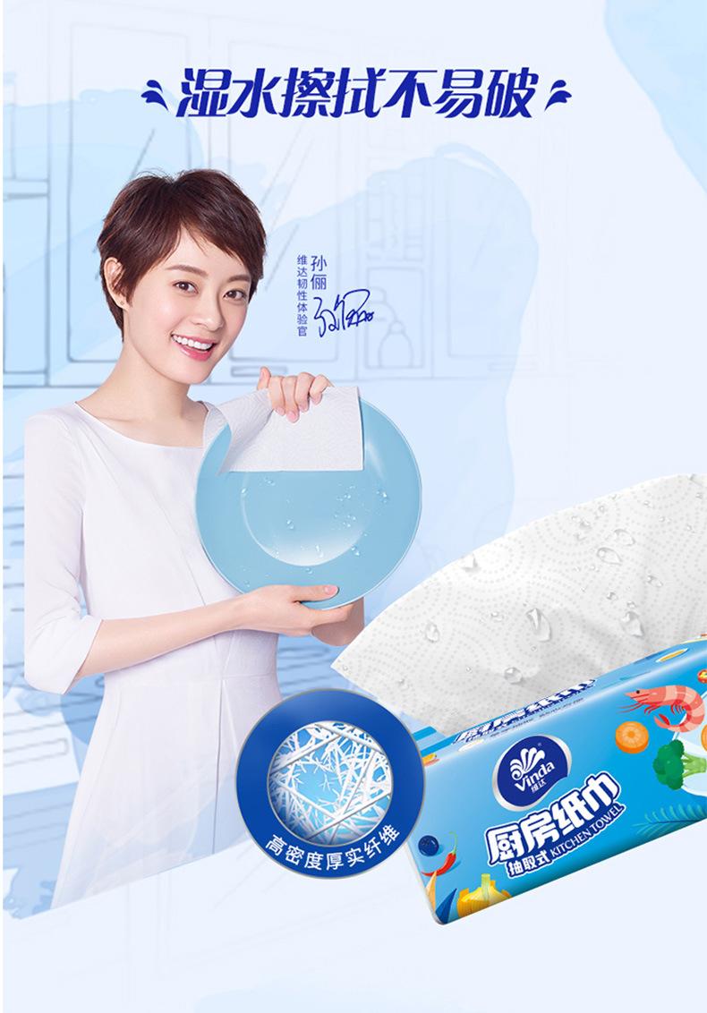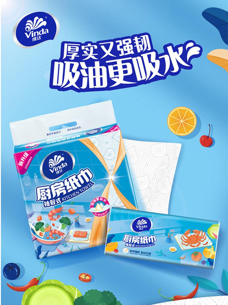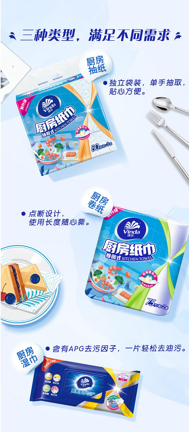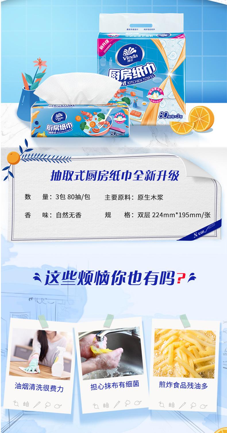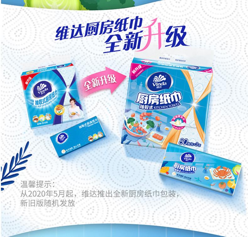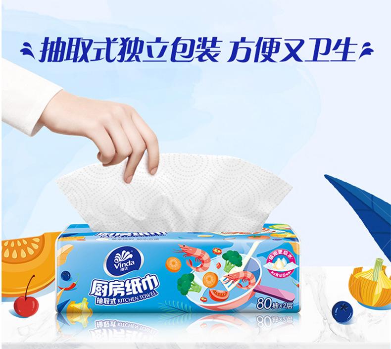 Vinda (Vinda) toalla de papel de cocina 80*3 paquetes * 2 toalla de papel para limpieza de extracción absorbente toalla de papel absorbente de aceite