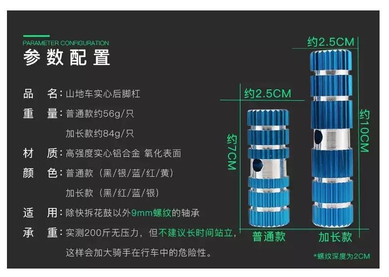 Pedal de bicicleta Licheng, columna de pie, almohadilla para el pie, barra de equilibrio, pedal de bicicleta, asiento trasero, pie, bicicleta de montaña, lanzador de cohetes. Longitud 7CM 200 pares por caja Peso 104,4g por par