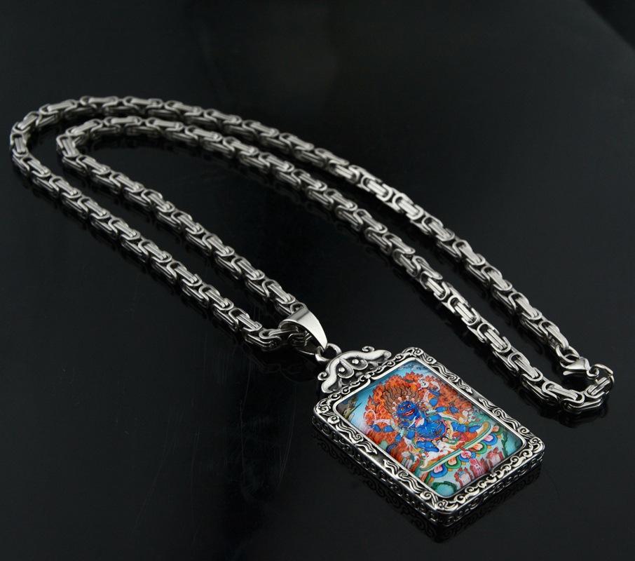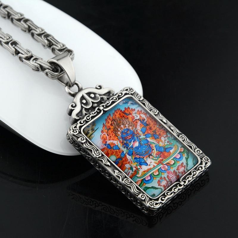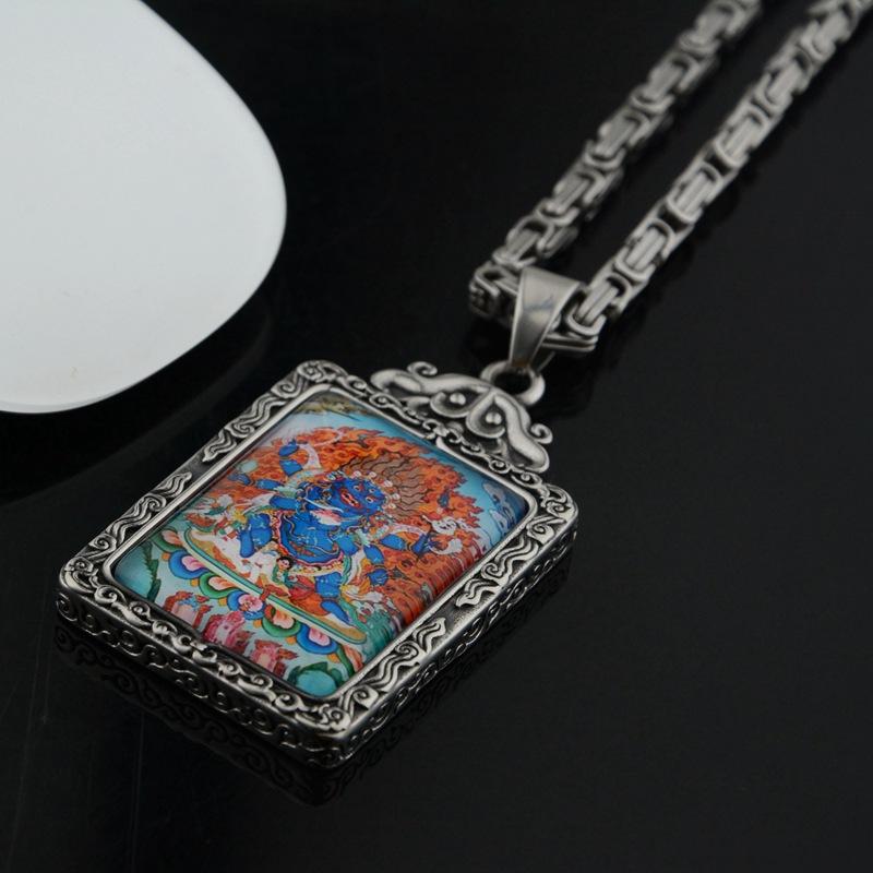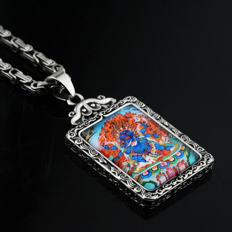 Colgante cuadrado de Thangka, diseño de Dios de la Riqueza, estilo hip hop, personalizado, de moda nacional, para hombre y mujer, ideal para combinar con todo.
