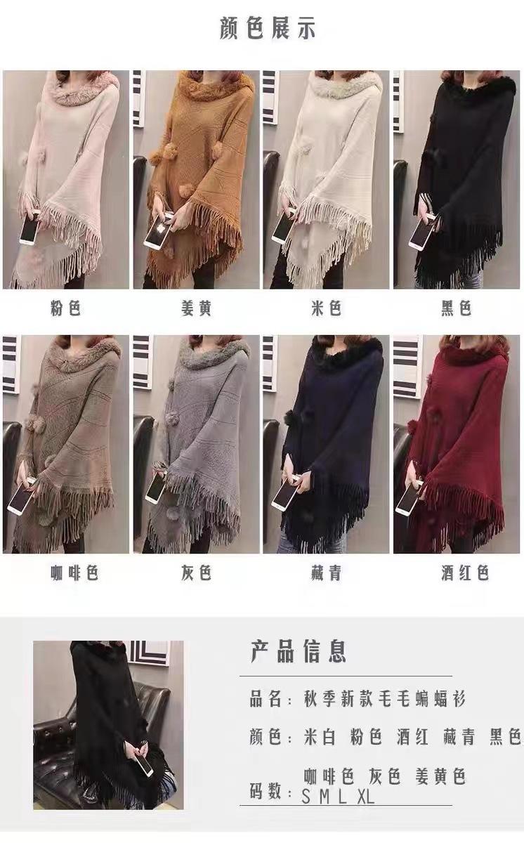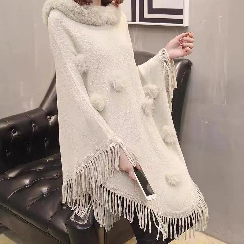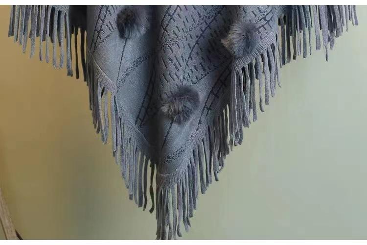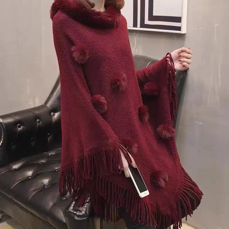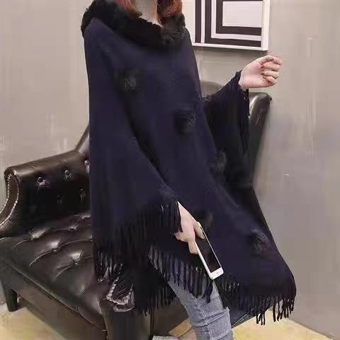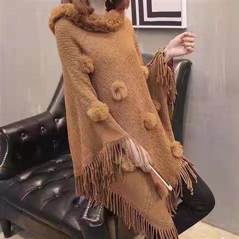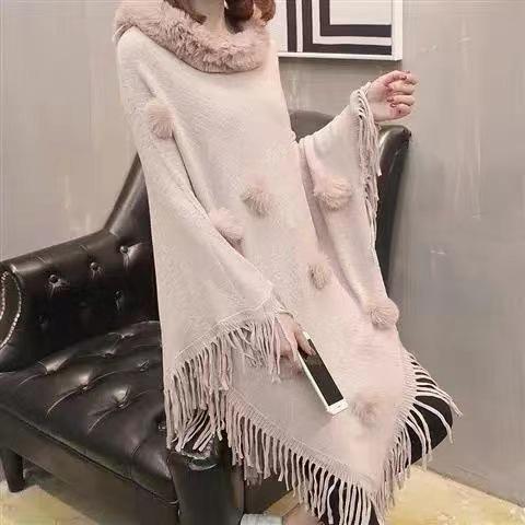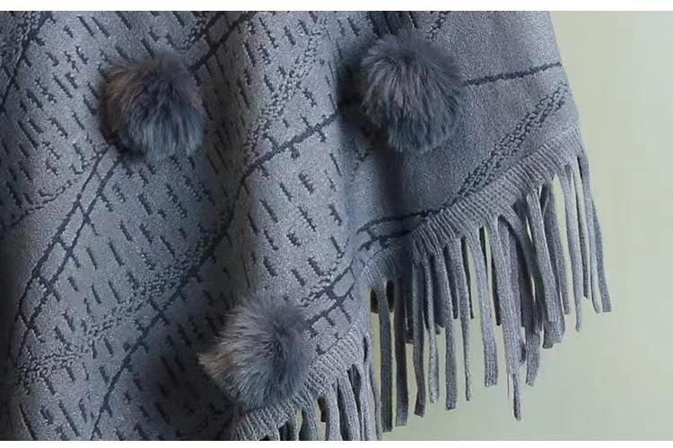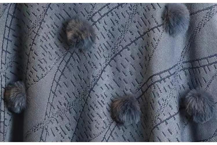 Otoño e invierno nuevo europeo y americano otoño e invierno nuevo jersey de punto de moda bola de piel borla capa capa capa capa ropa exterior