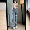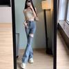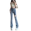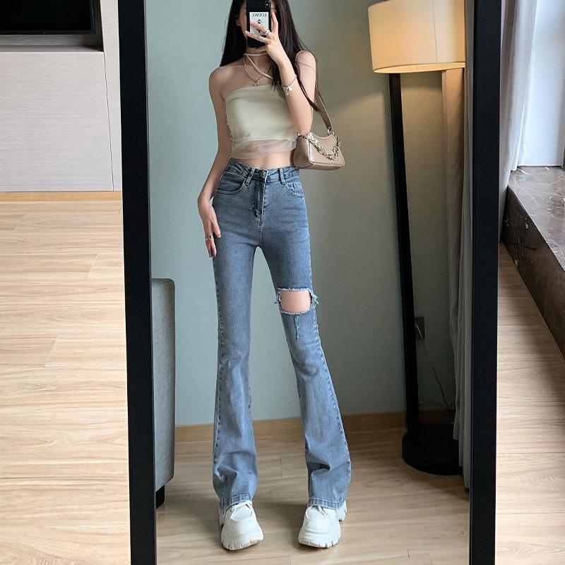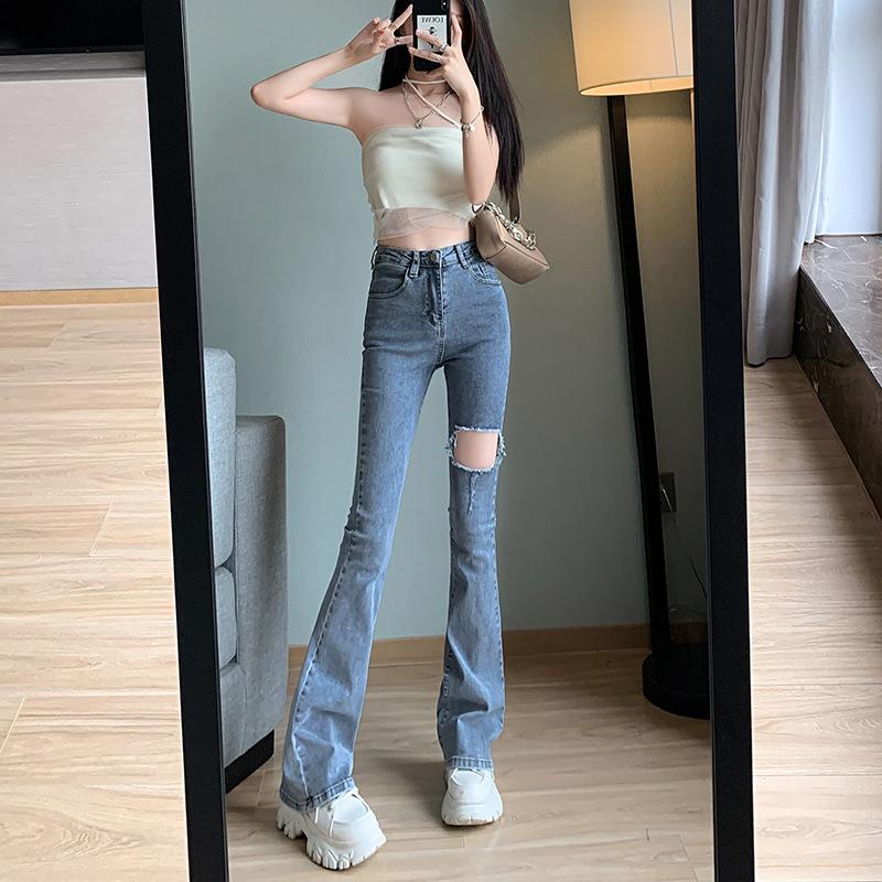 Pantalones vaqueros ajustados de verano para mujer, nuevo diseño, cintura alta, adelgazantes, elásticos, rotos, pierna ancha, pantalones de herradura