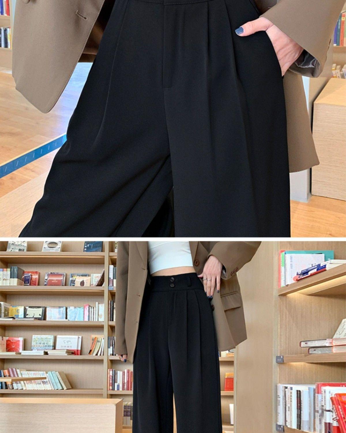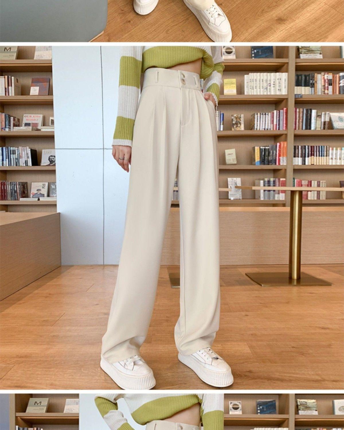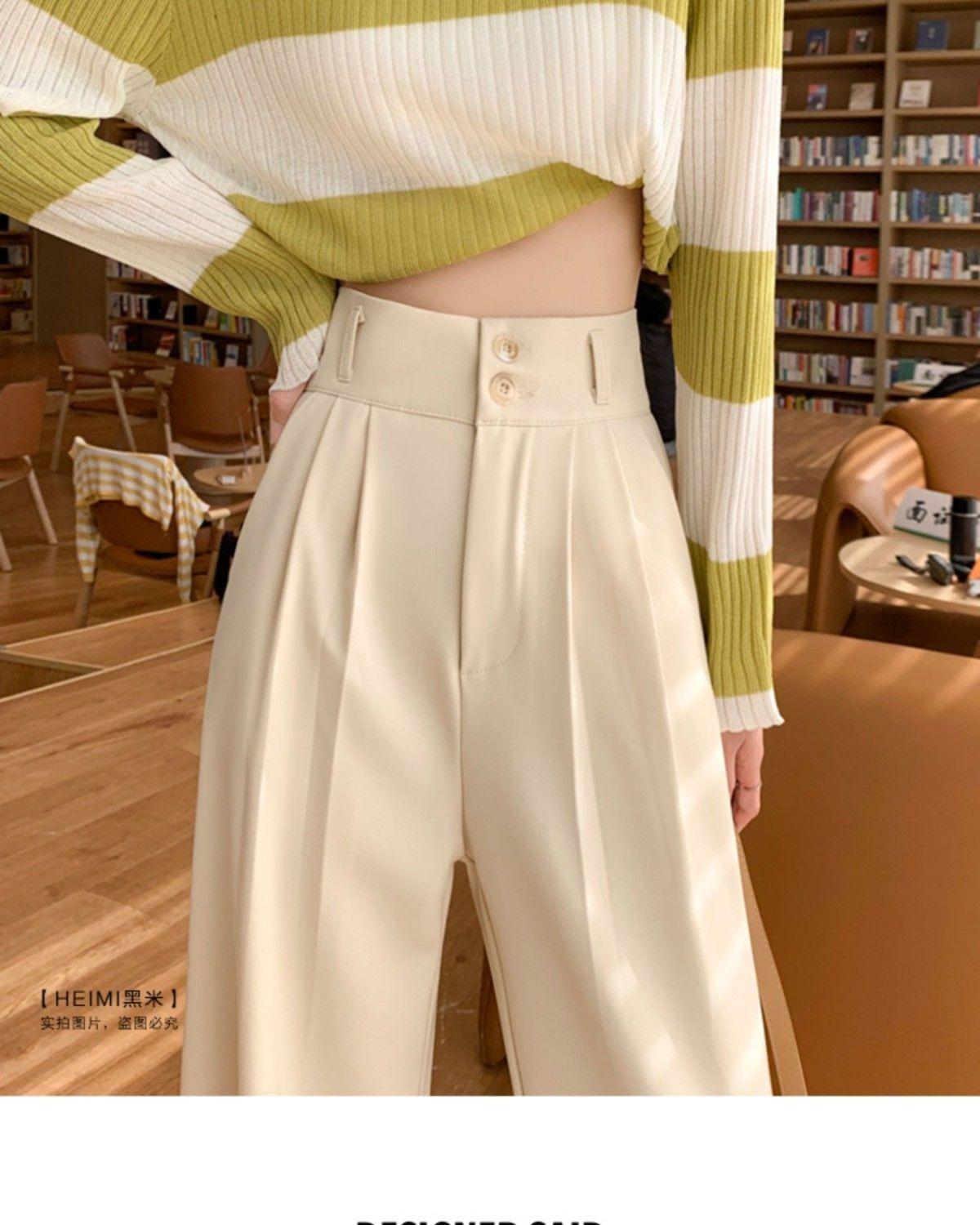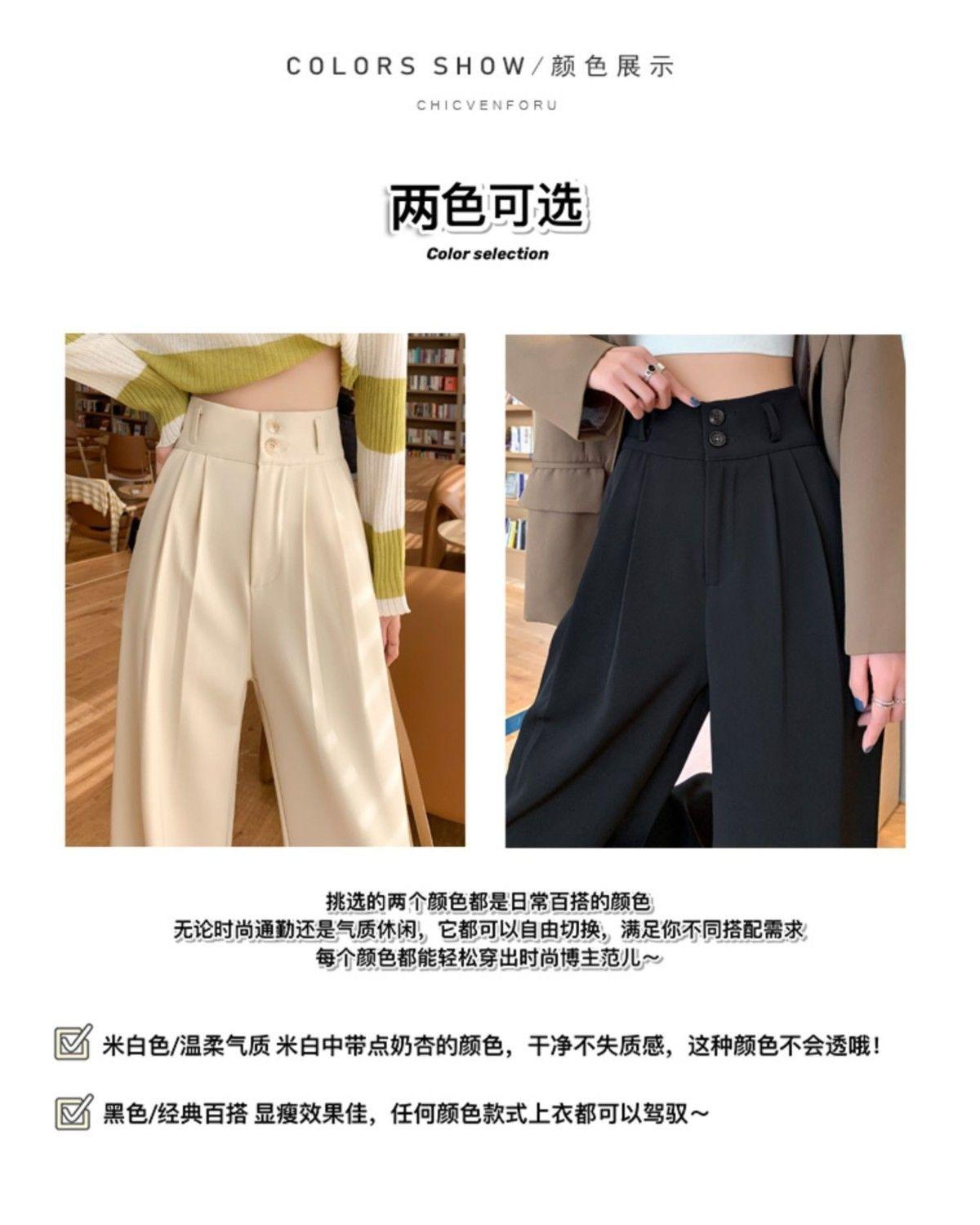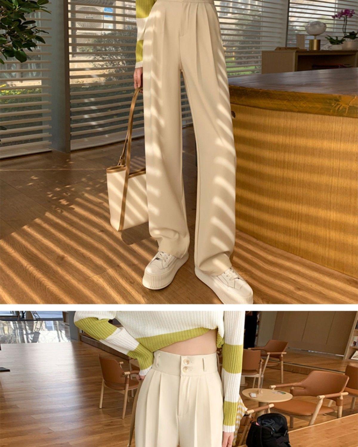 Pantalones de pierna ancha blanco cremoso para mujer, primavera y verano, pantalones sueltos de caída, cintura alta adelgazantes, negros de pierna recta, modernos
