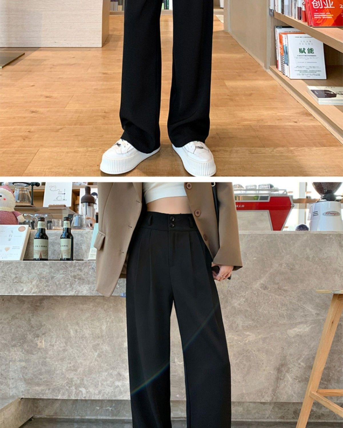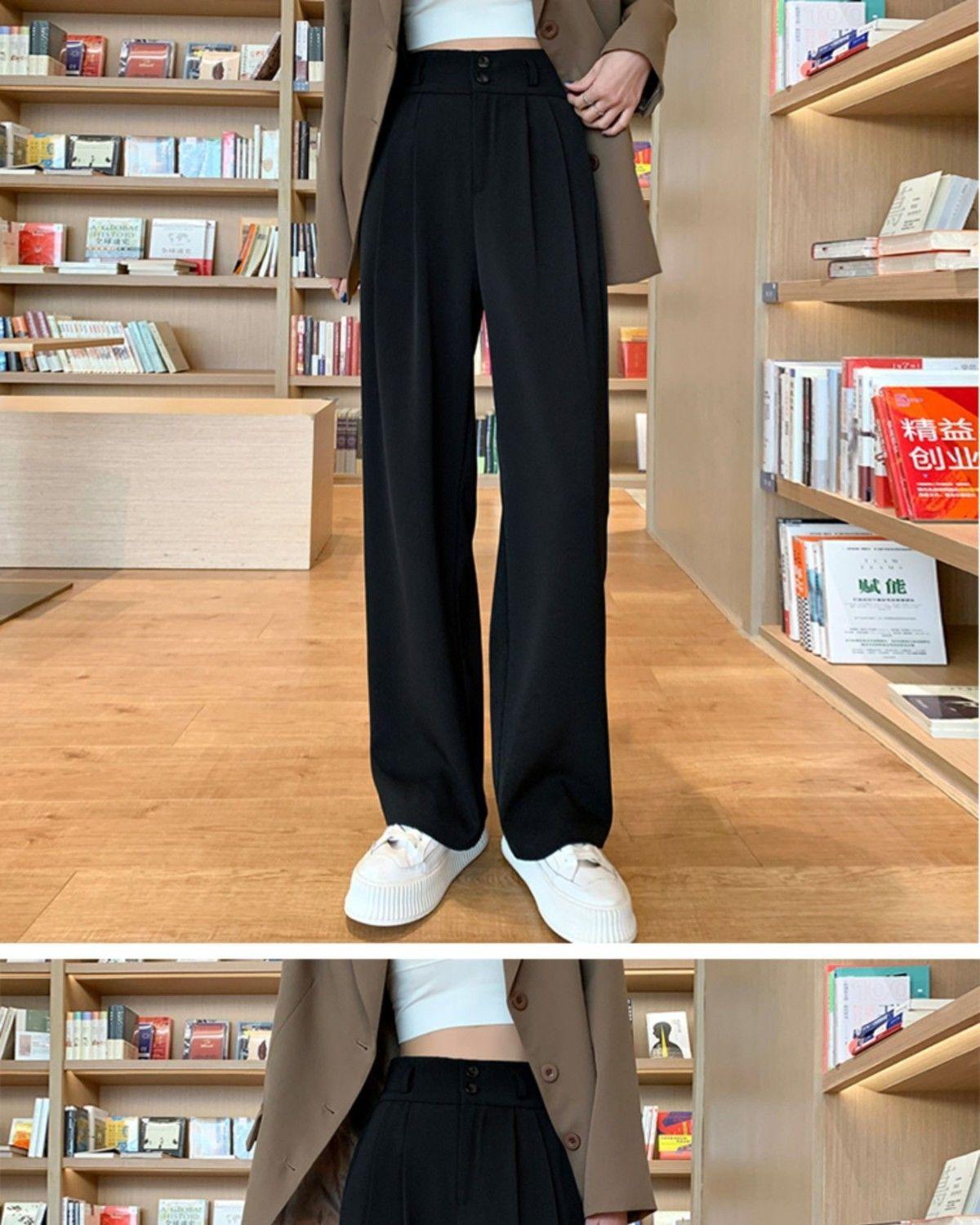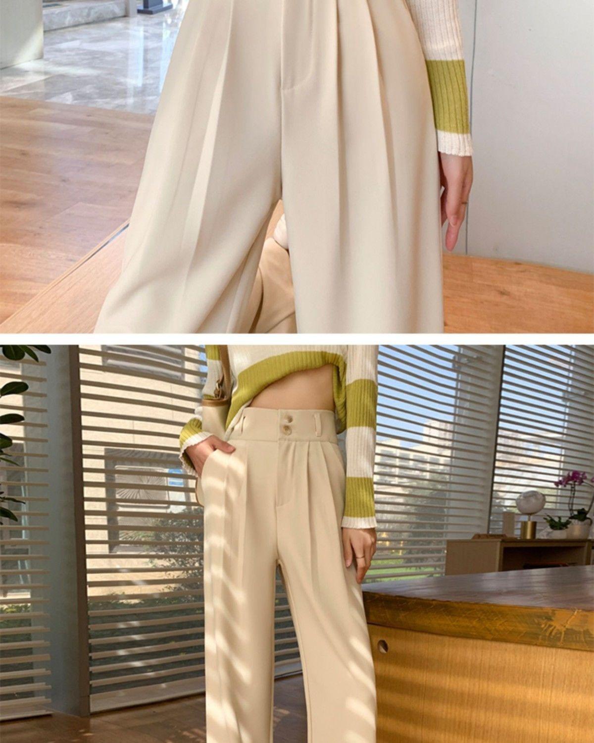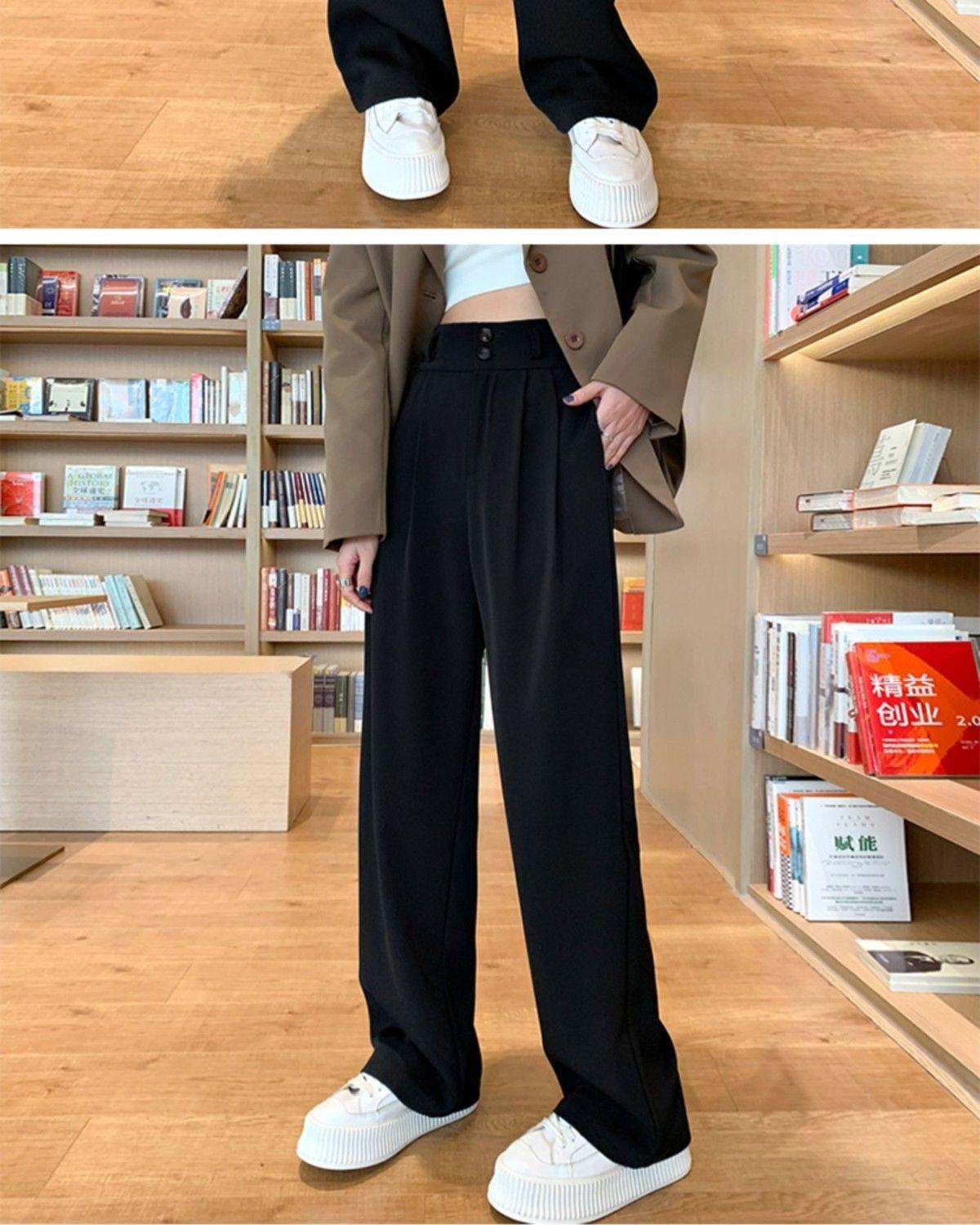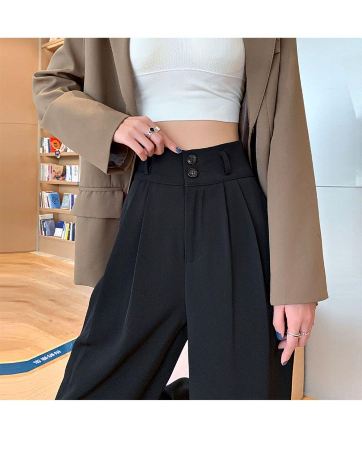 Pantalones de pierna ancha blanco cremoso para mujer, primavera y verano, pantalones sueltos de caída, cintura alta adelgazantes, negros de pierna recta, modernos