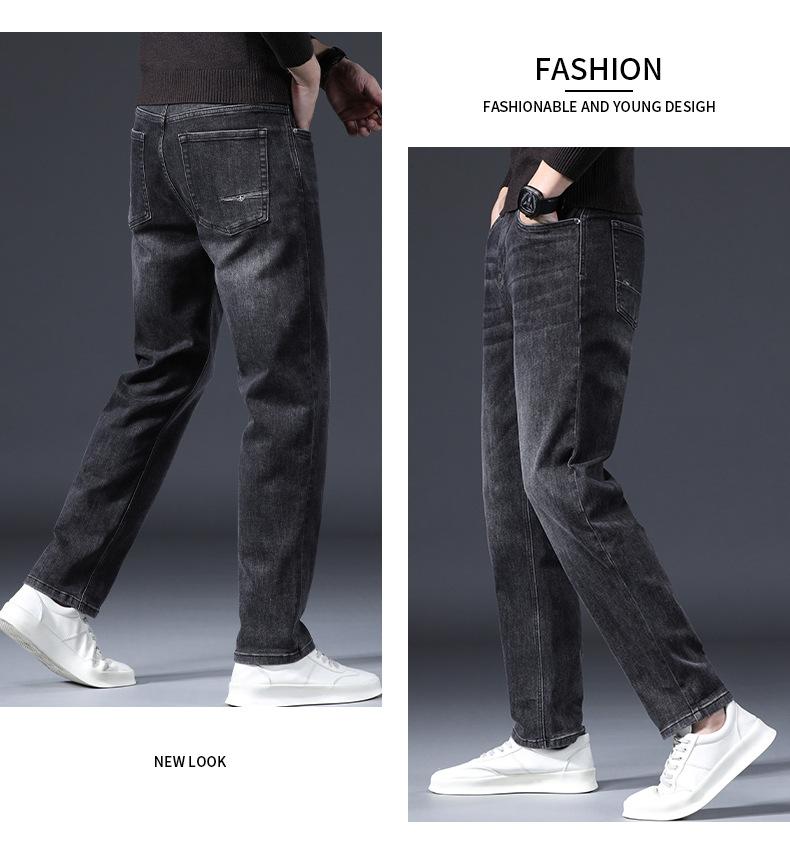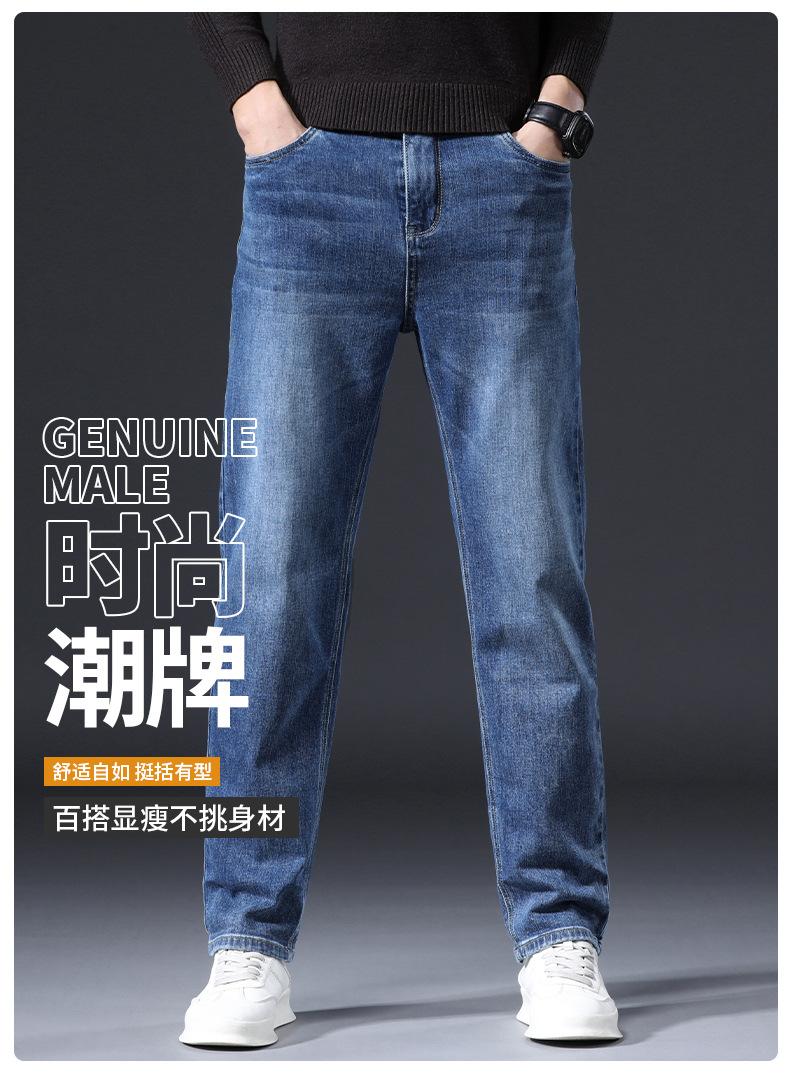 Pantalones vaqueros rectos y holgados de talla grande para hombre, otoño e invierno, 2023, nuevos pantalones casuales elásticos de alta gama, moda