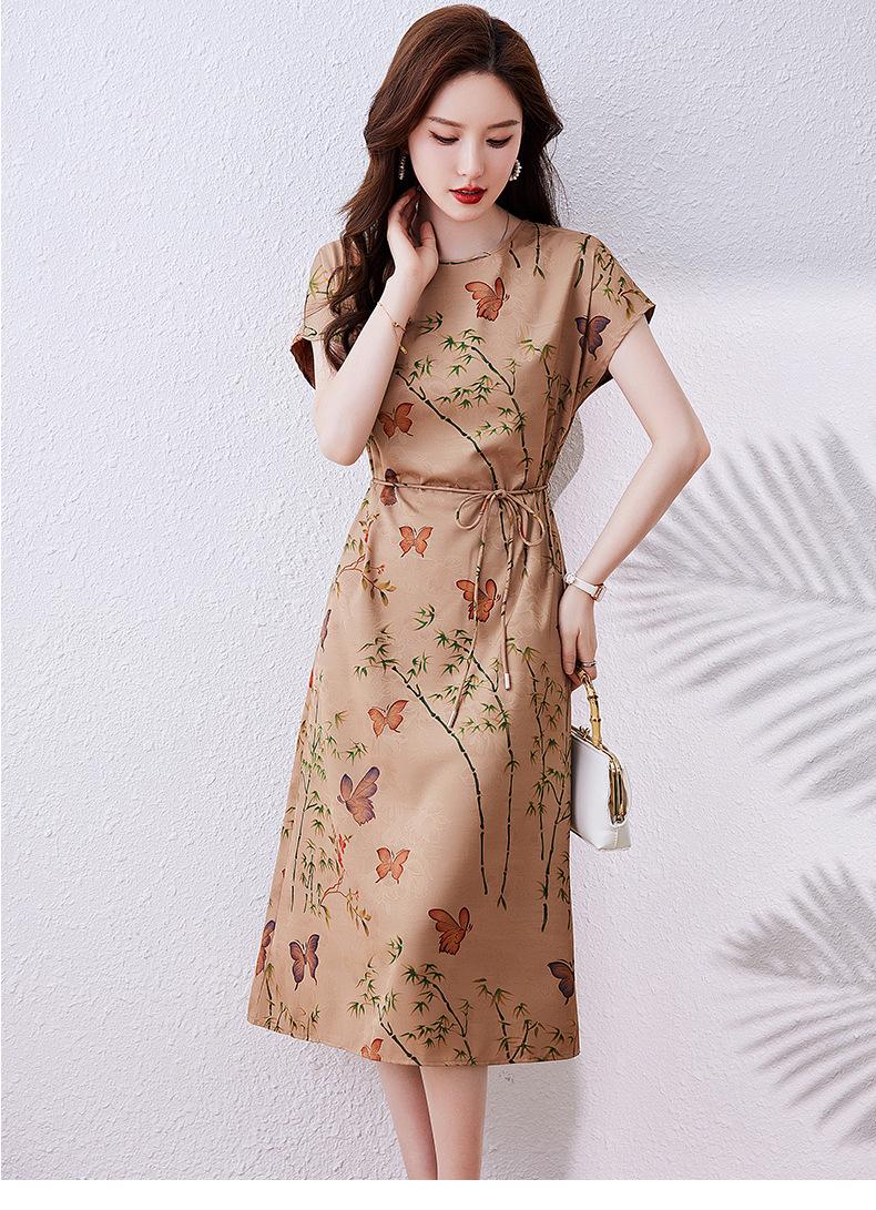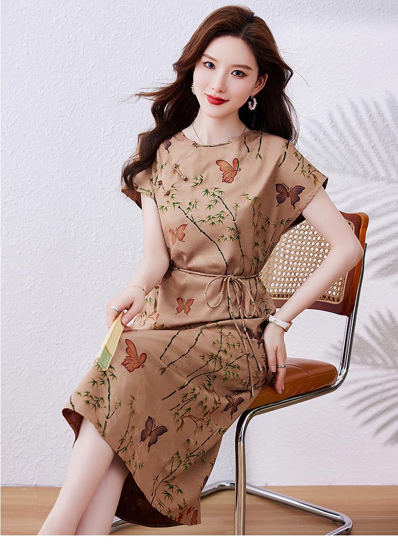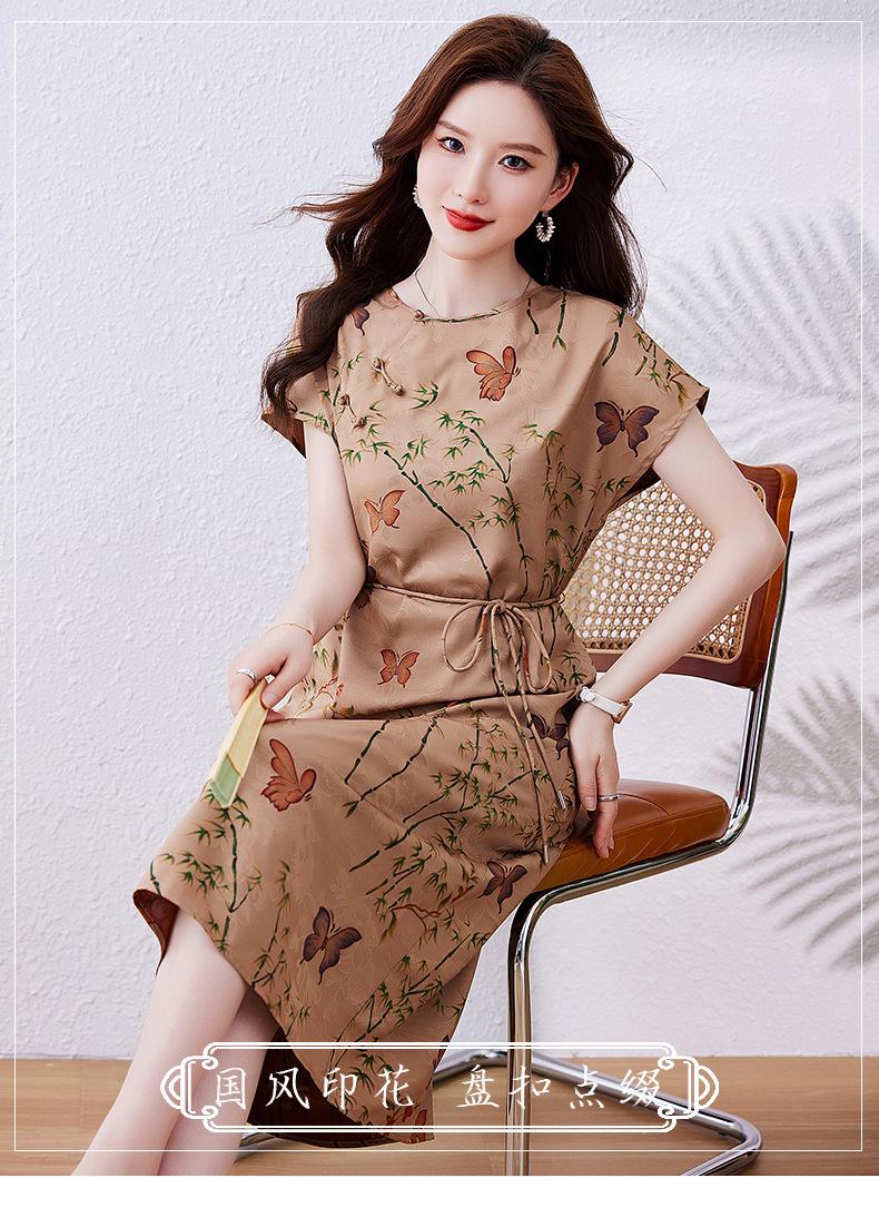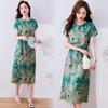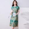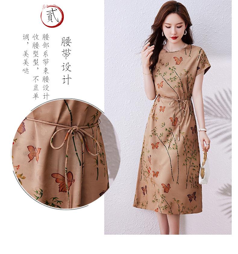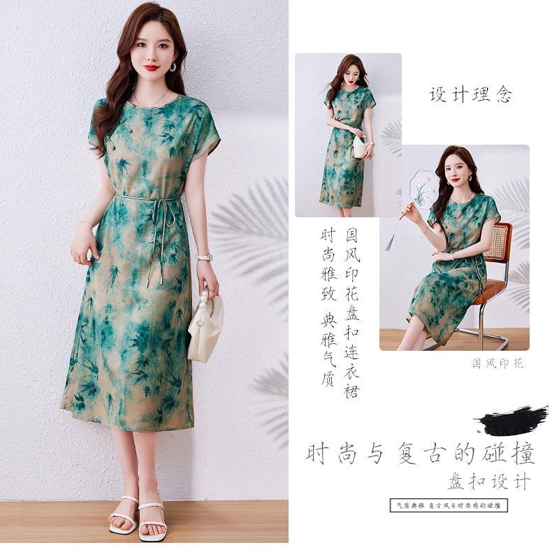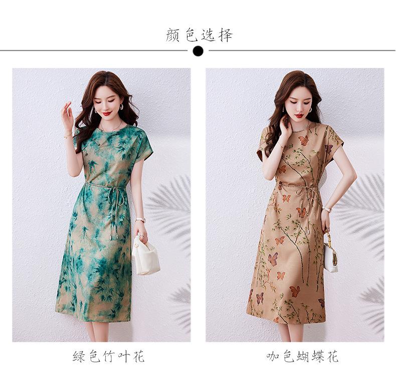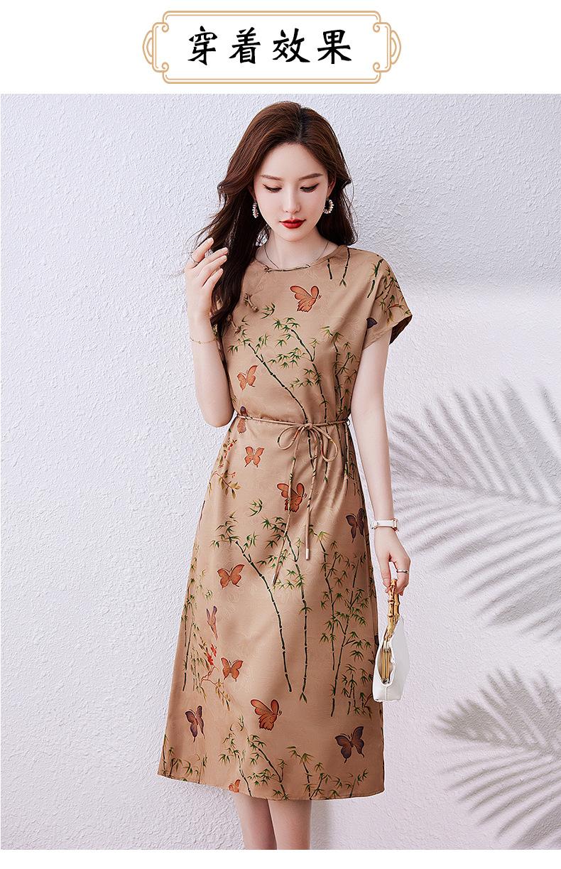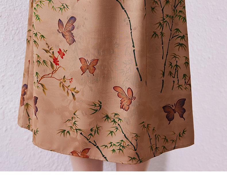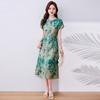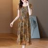 Vestido de cuello redondo de jacquard de seda vintage de estilo occidental de alta gama de verano 2024, falda estampada de verano de longitud media
