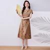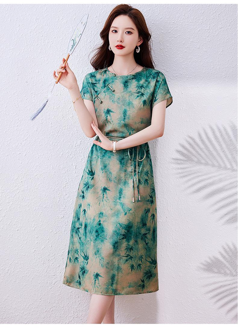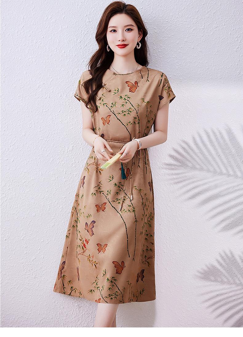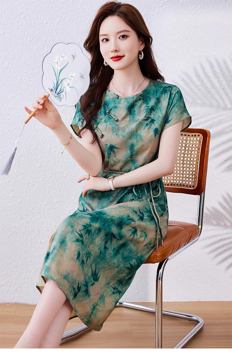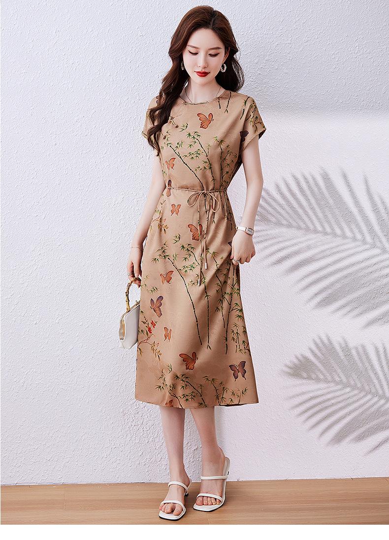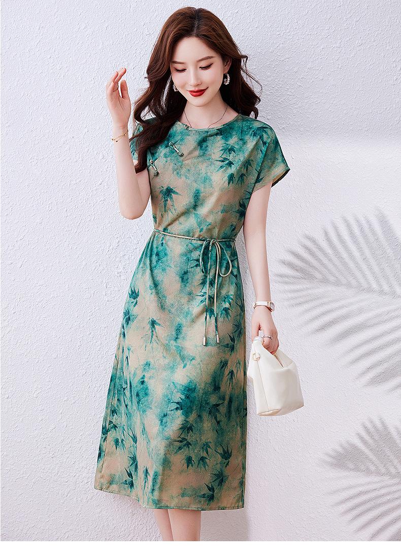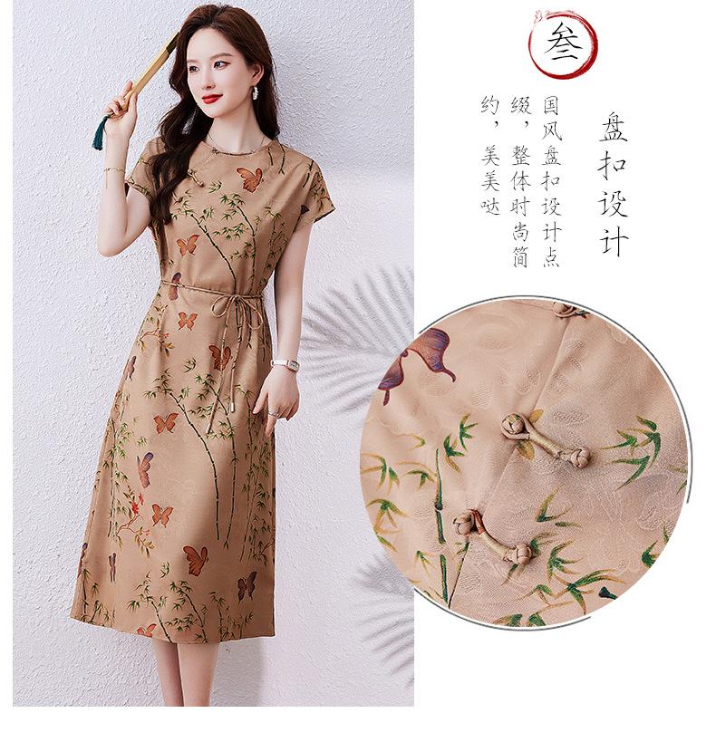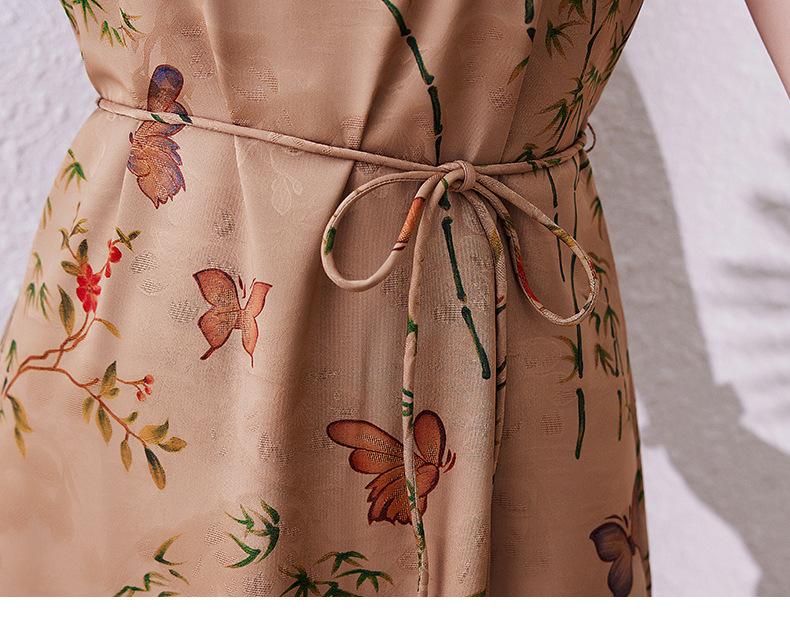 Vestido de cuello redondo de jacquard de seda vintage de estilo occidental de alta gama de verano 2024, falda estampada de verano de longitud media