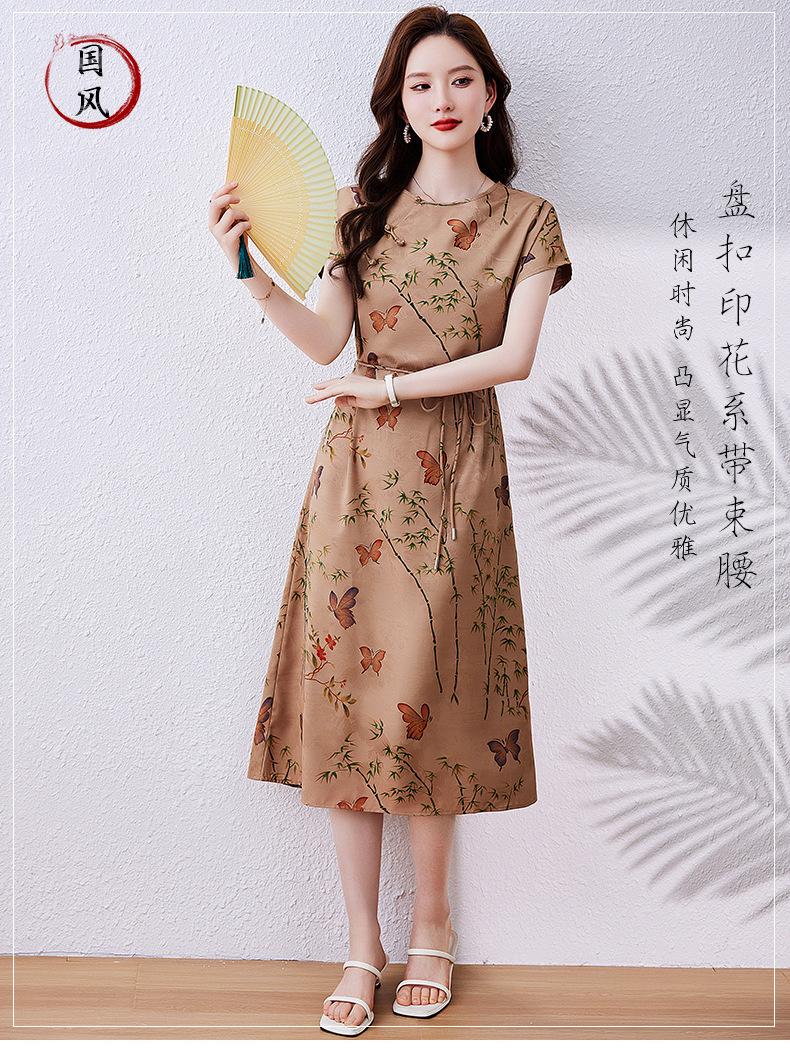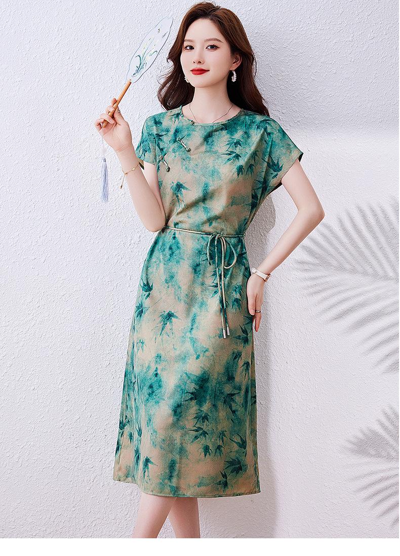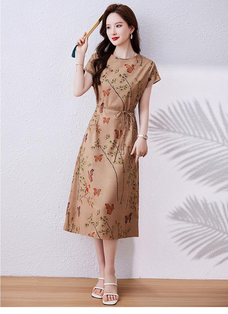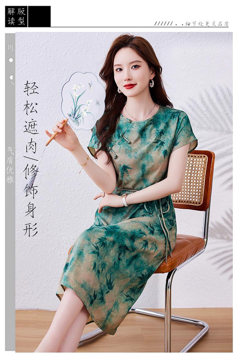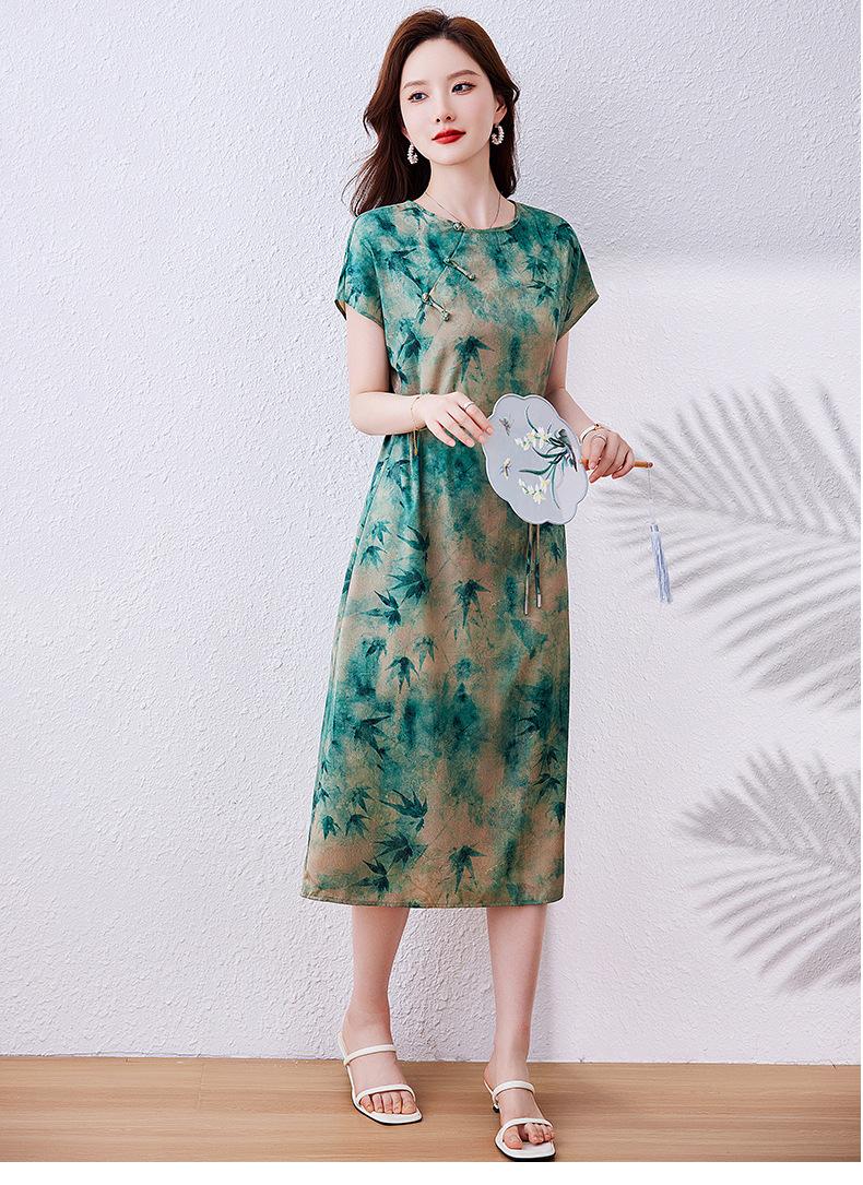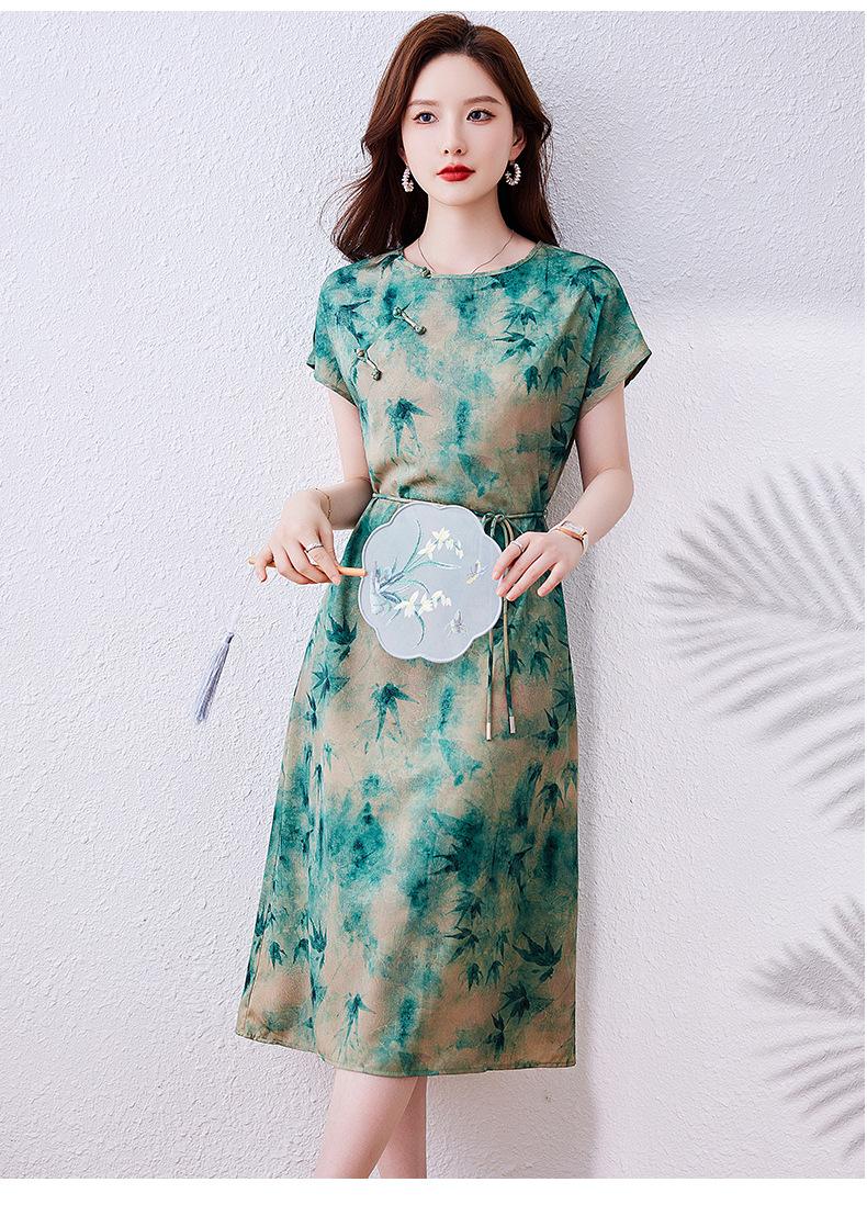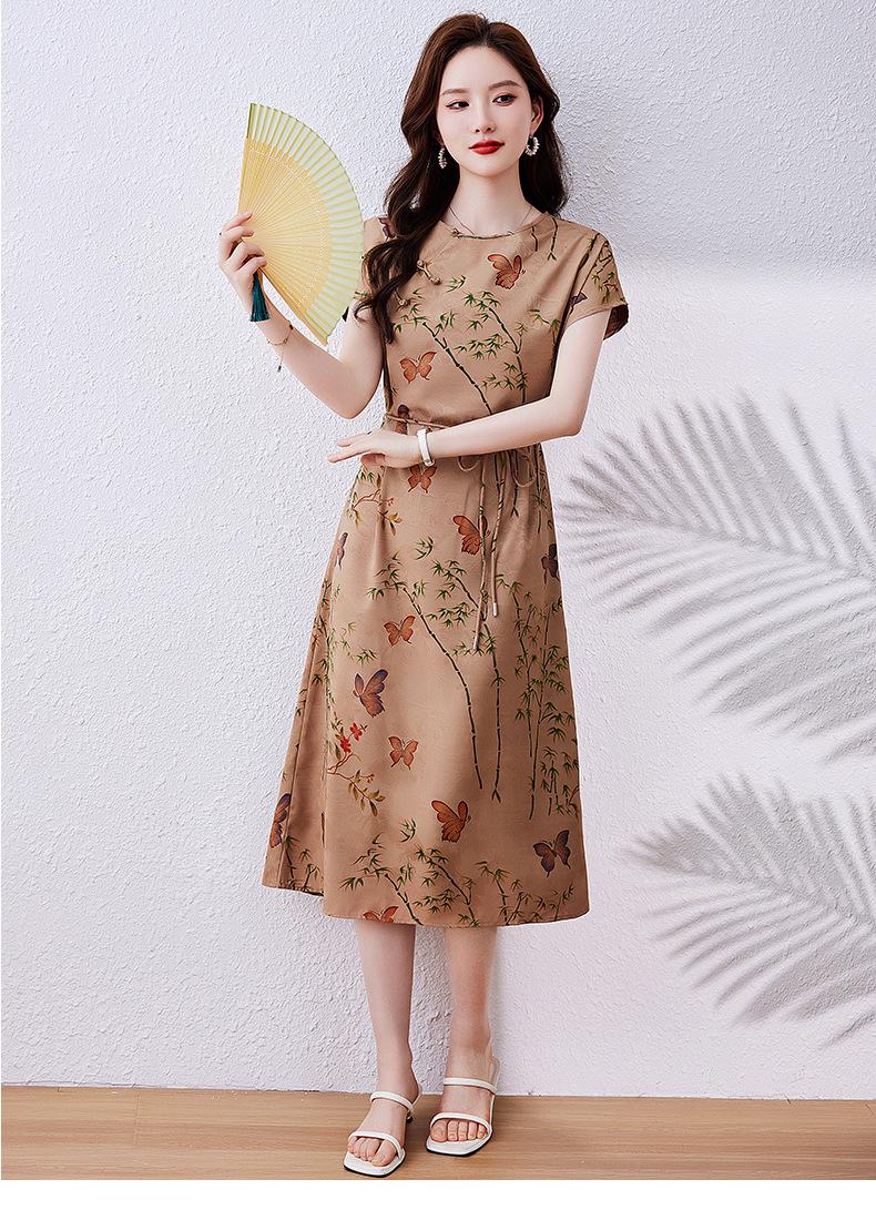 Vestido de cuello redondo de jacquard de seda vintage de estilo occidental de alta gama de verano 2024, falda estampada de verano de longitud media