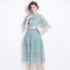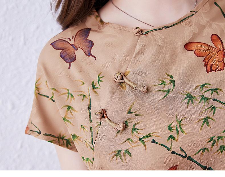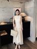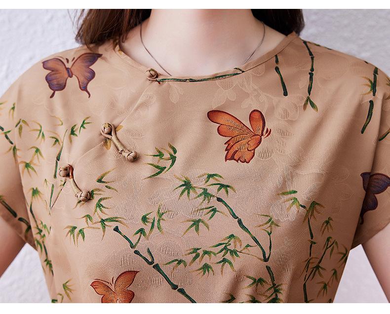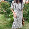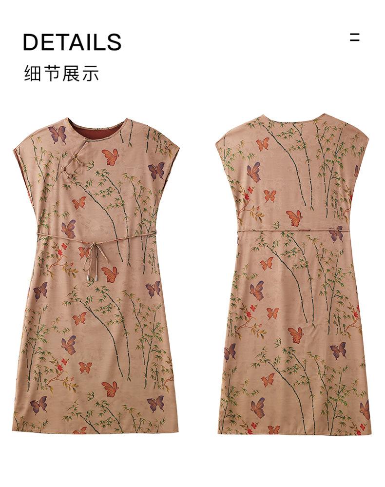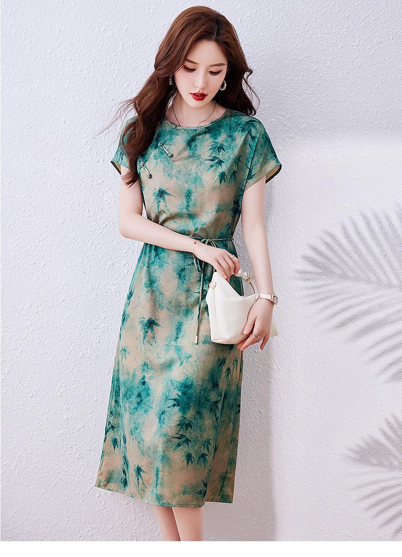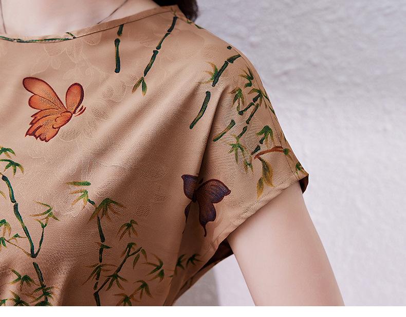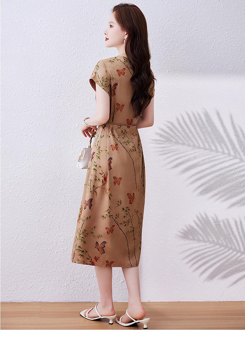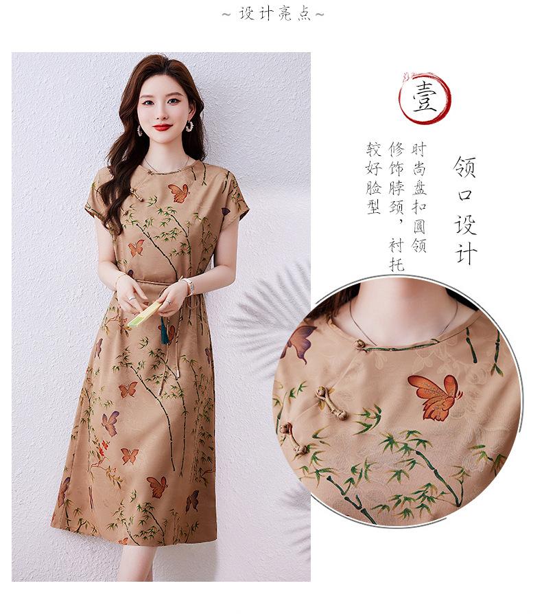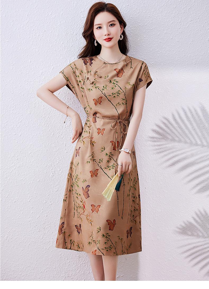 Vestido de cuello redondo de jacquard de seda vintage de estilo occidental de alta gama de verano 2024, falda estampada de verano de longitud media