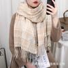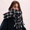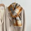 Bufanda a cuadros vintage verde para mujer, nueva bufanda cálida de invierno 2024, estilo coreano grueso y de doble uso para estudiantes.