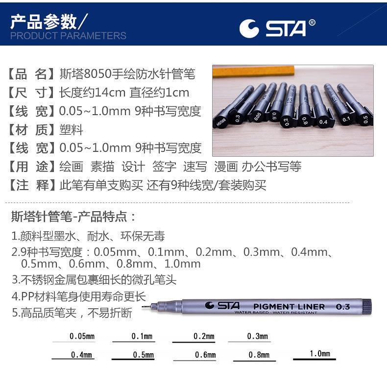 Sta 8050 Pluma de aguja Pluma de línea de gancho Pluma para bocetos Firma Boceto Pluma para hacer cómics