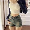 Pantalones cortos vaqueros blancos rotos para mujer, de verano 2023, finos, de cintura alta, elásticos, ajustados, color óxido, con pernera ancha.