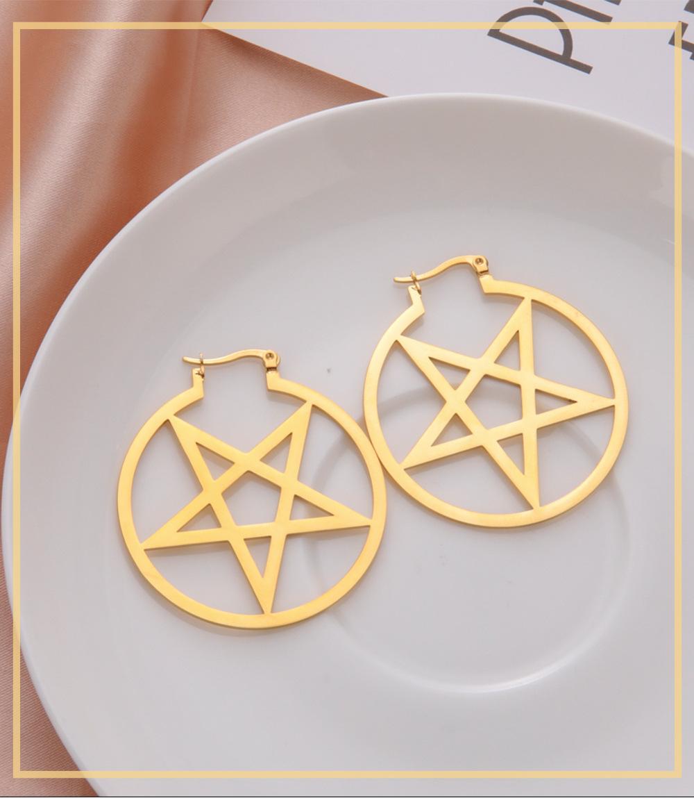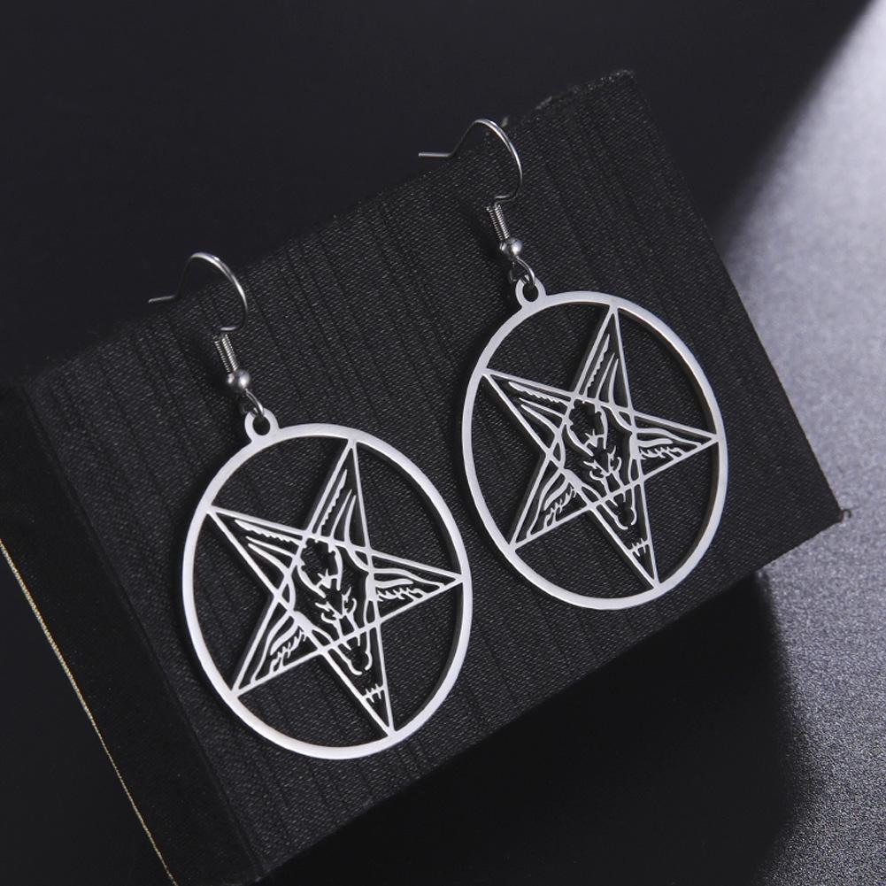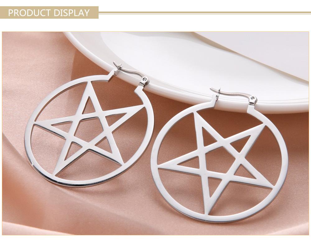 Pendientes de anillo de estrella de cinco puntas de acero inoxidable con joyería transfronteriza, pendientes colgantes de estrella gótica para mujer, personalizados al por mayor
