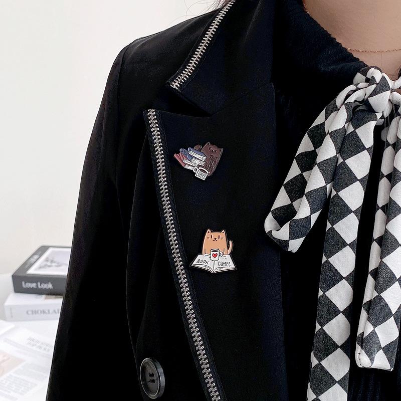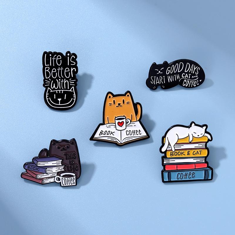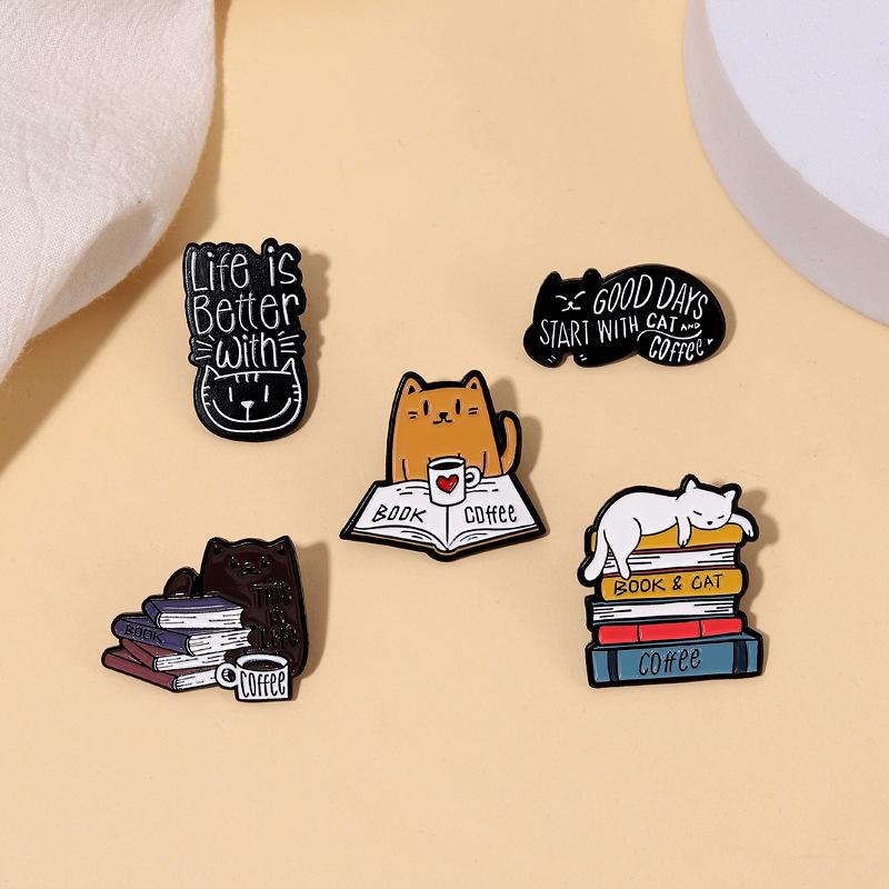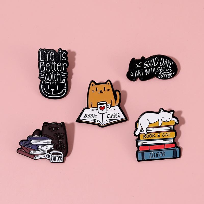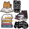 Nuevo broche de aleación con diseño de gato leyendo amor y letras en inglés, insignia creativa y bonita para bolso de ropa