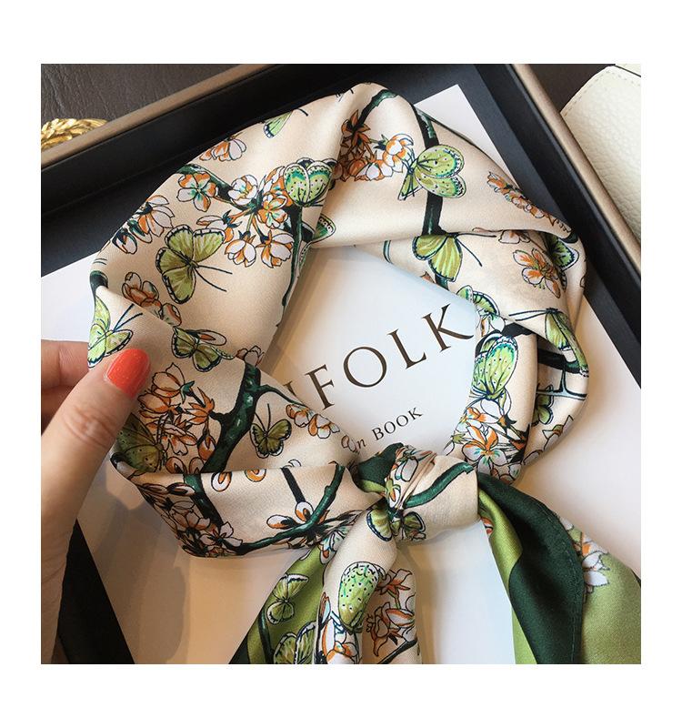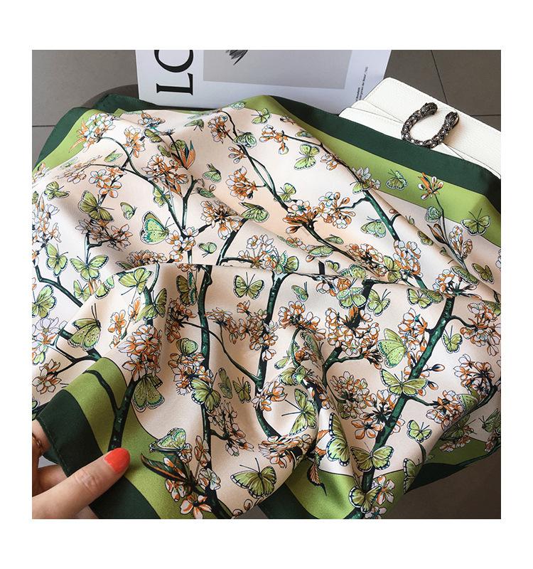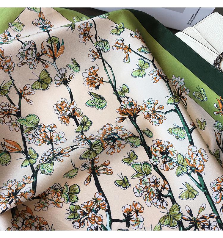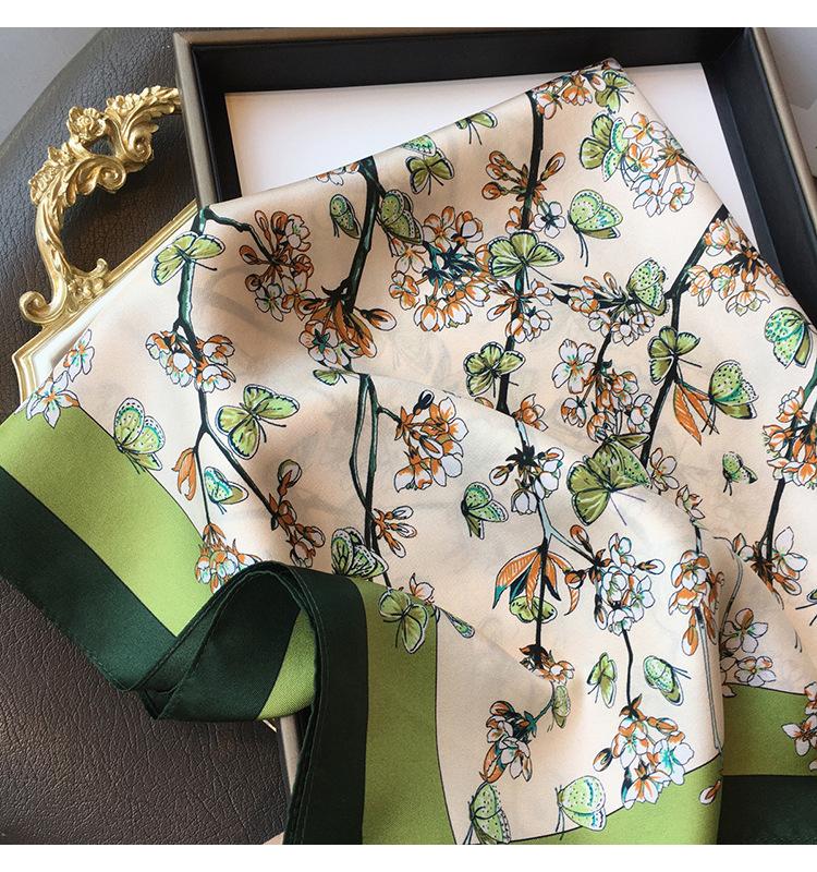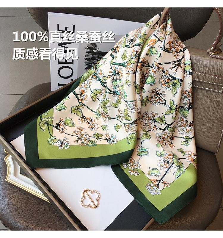 Nueva bufanda de seda morera con diseño de mariposas y flores, chal de otoño para mujer, bufanda cuadrada de 70 cm.