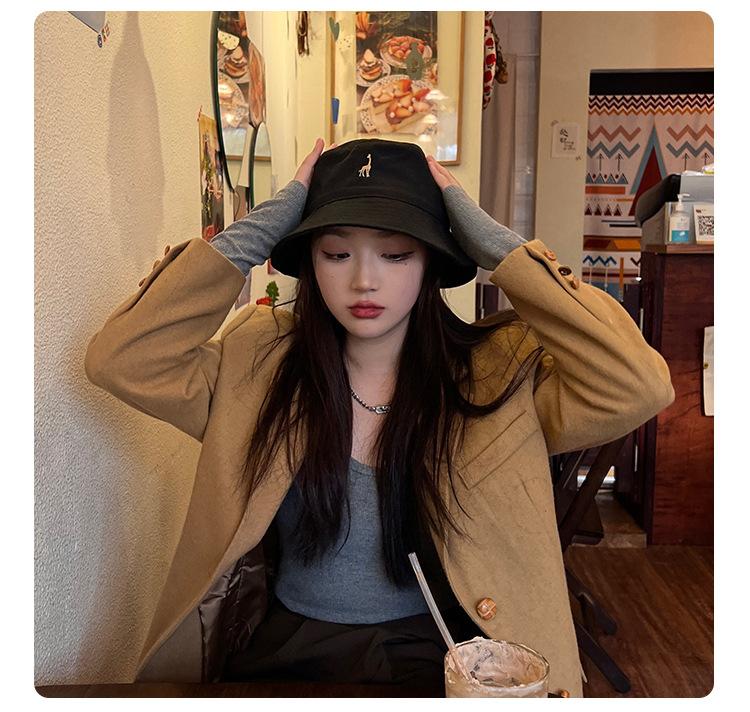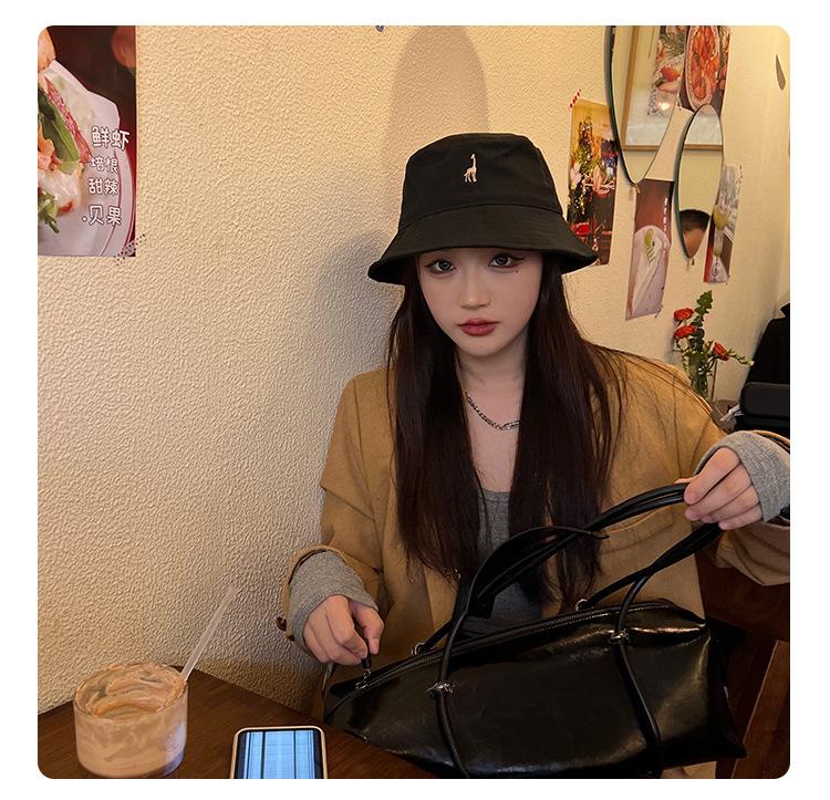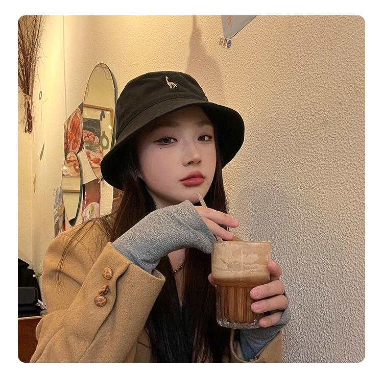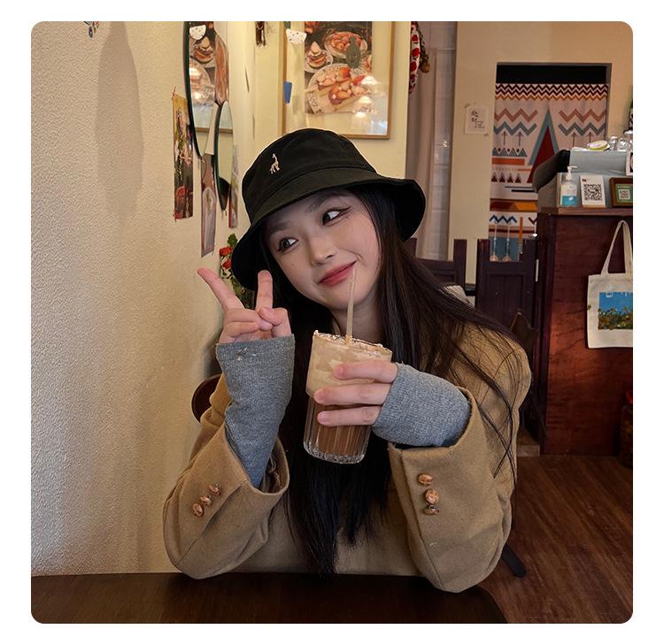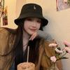 Sombrero de pescador negro de ala pequeña para mujer, verano, protección solar, estilo japonés lindo para estudiante, nuevo estilo coreano, moda ins, sombrero de cubo, primavera y otoño
