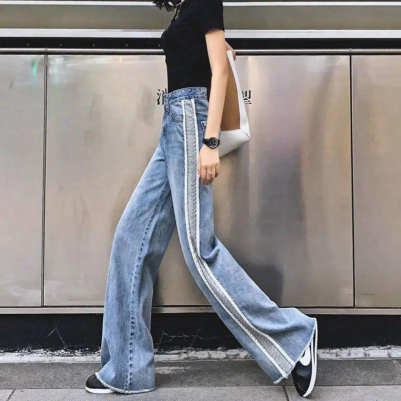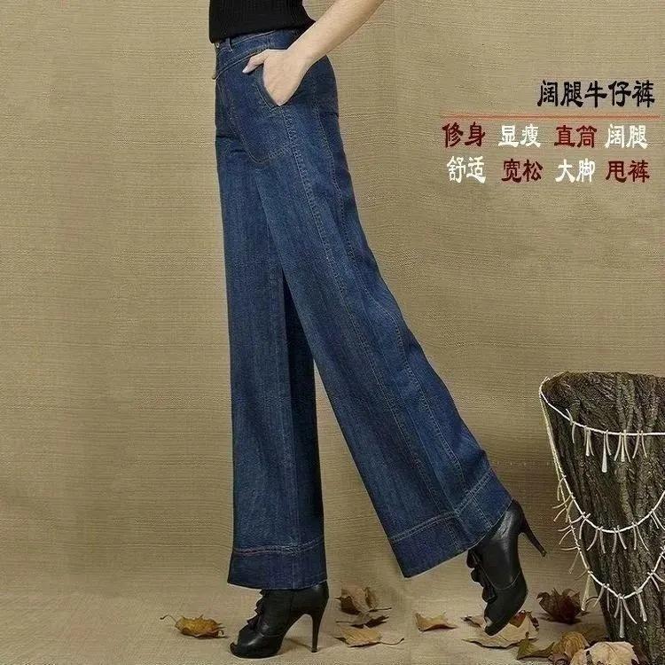 Pantalones vaqueros de cintura alta y pierna ancha para mujer, primavera y otoño 2024, holgados, rectos, informales, nuevos, adelgazantes, para personas con sobrepeso.