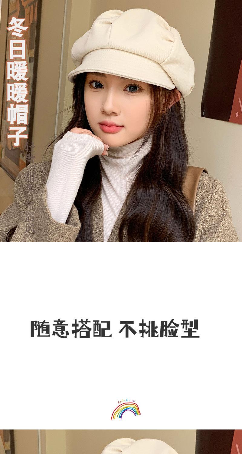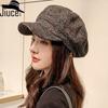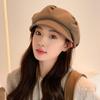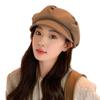 Sombrero octogonal para mujer otoño e invierno engrosado cálido sombrero de pintor cabeza grande cara pequeña nube boina de repartidor gorra con visera