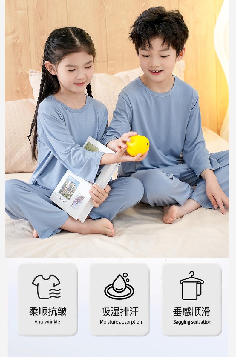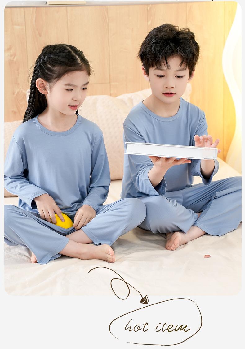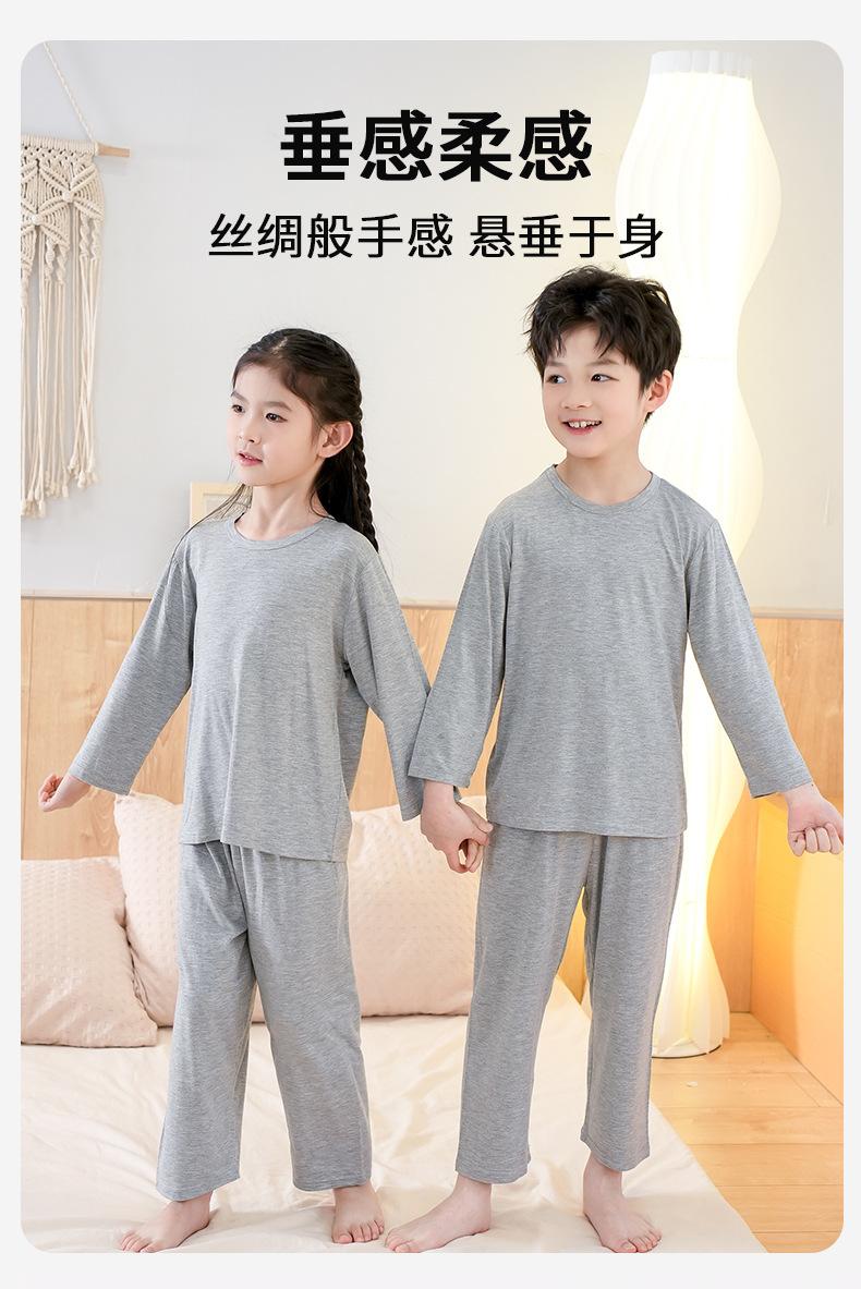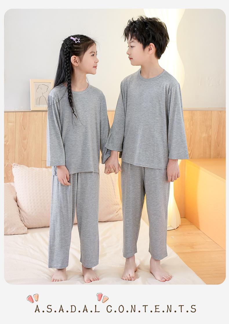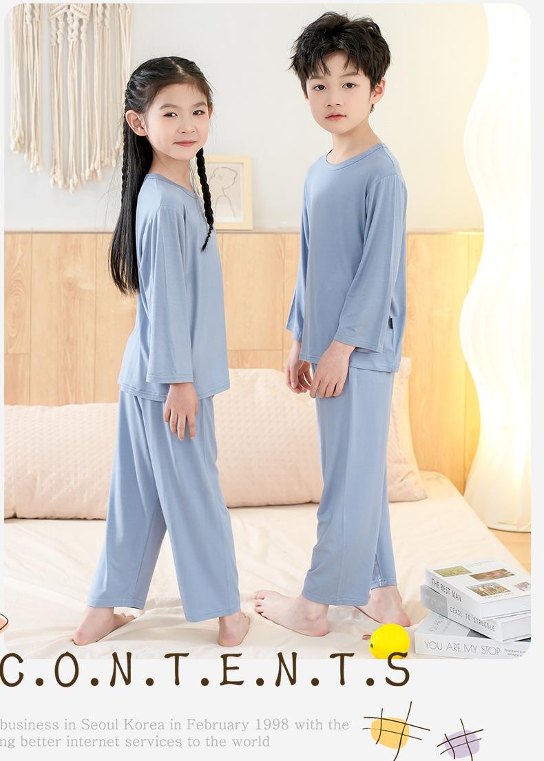 Conjunto de Ropa para el Hogar para Niños y Niñas Modal Fino Pijama Verano Cuello Redondo Manga Larga Pantalones Ropa para el Hogar con Aire Acondicionado