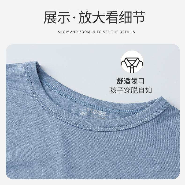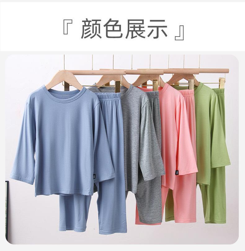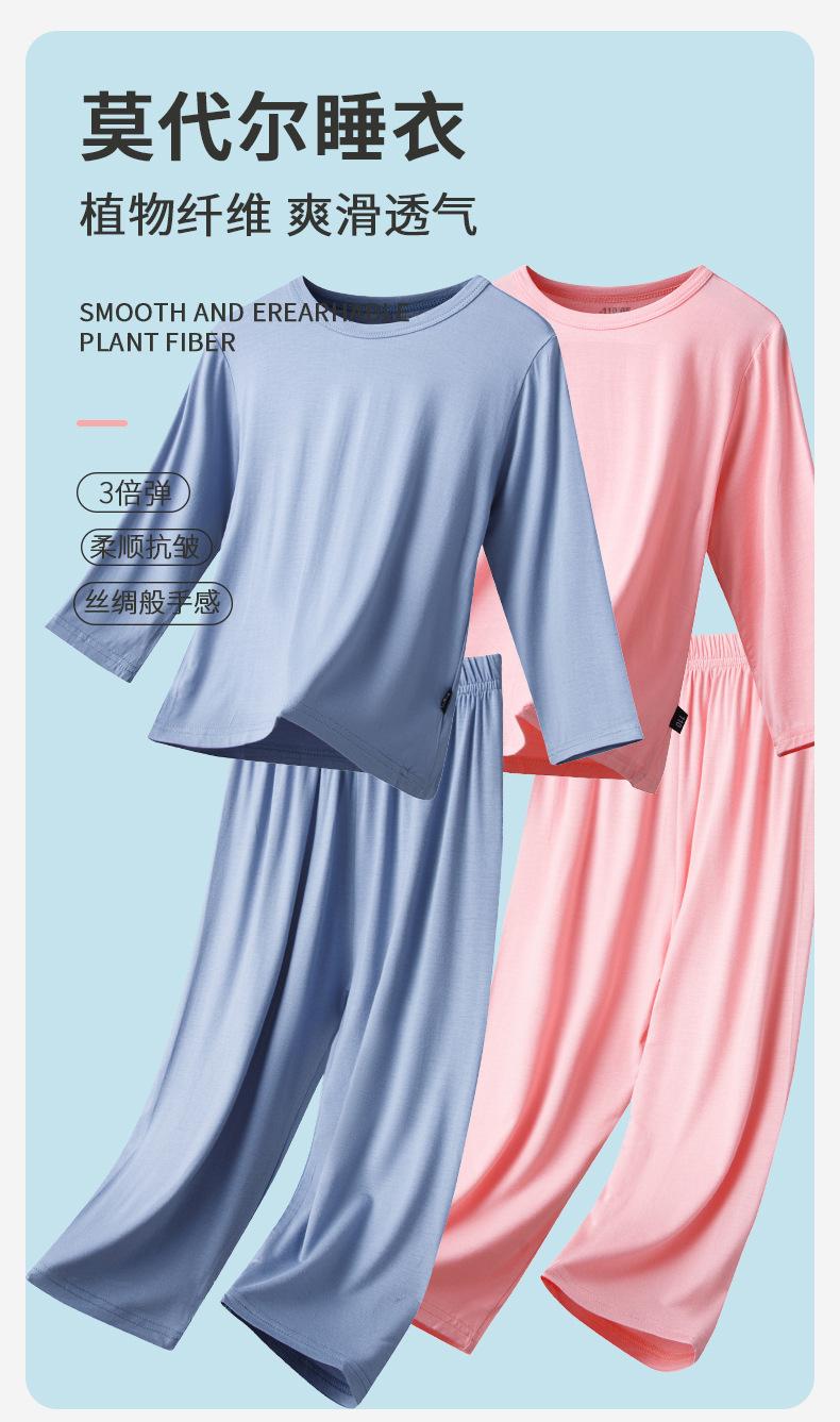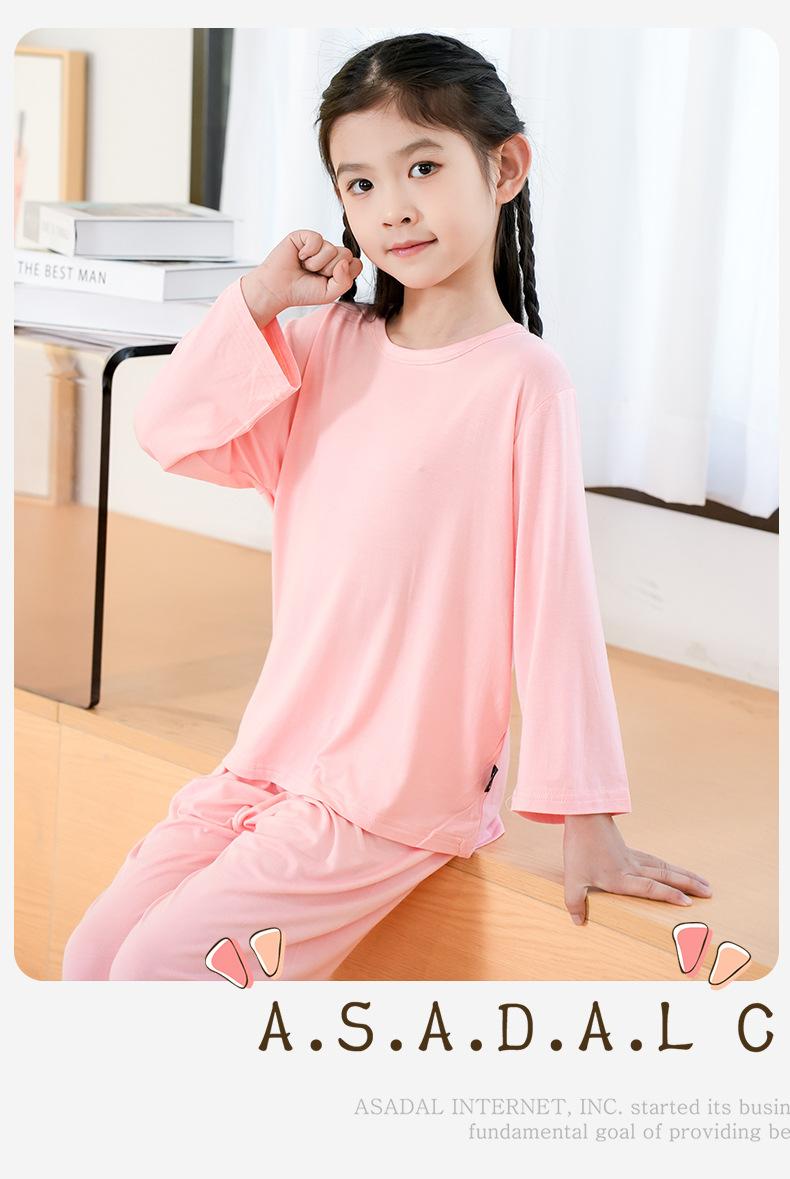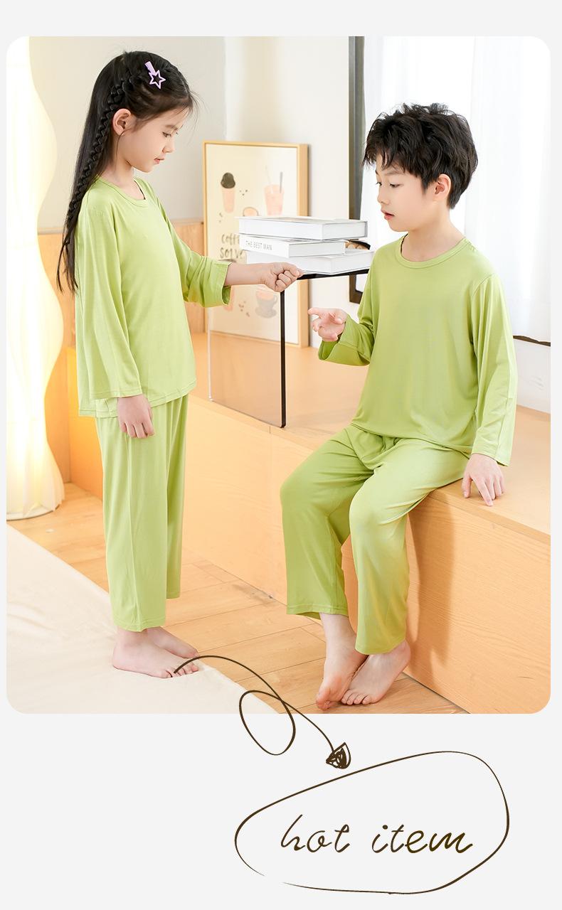 Conjunto de Ropa para el Hogar para Niños y Niñas Modal Fino Pijama Verano Cuello Redondo Manga Larga Pantalones Ropa para el Hogar con Aire Acondicionado