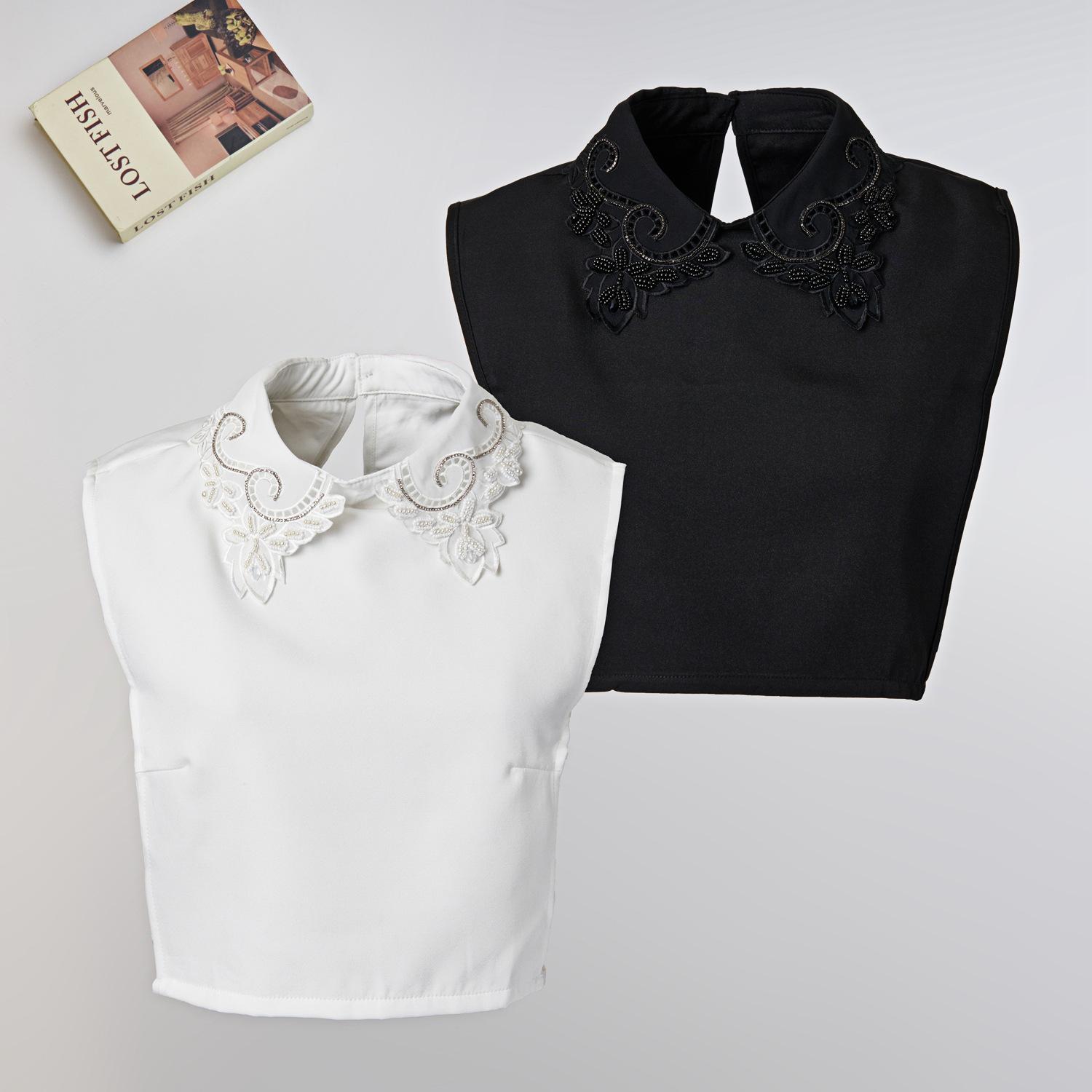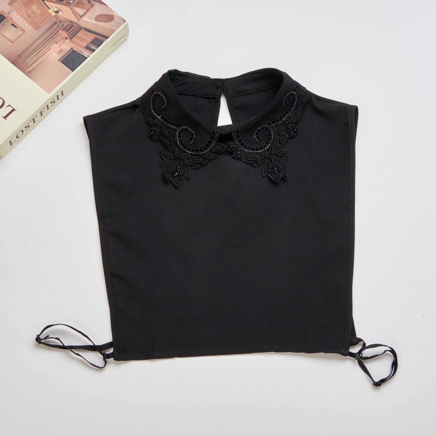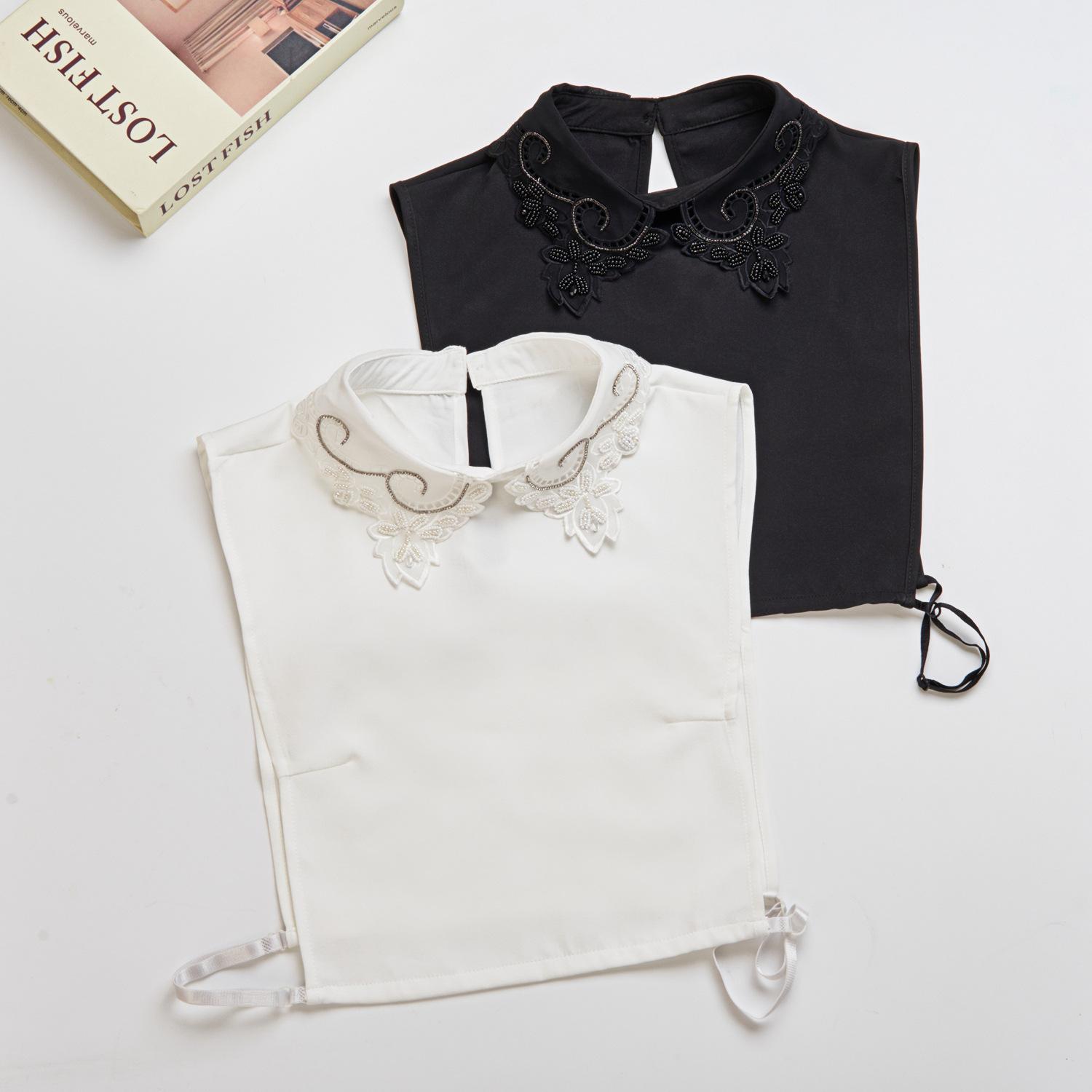 Nuevo Fabricante Transfronterizo Venta al por Mayor Popular Cuello Bordado Hecho a Mano Cuello de Pedrería Versátil Cuello Mandarín Blanco y Negro Cuello Falso