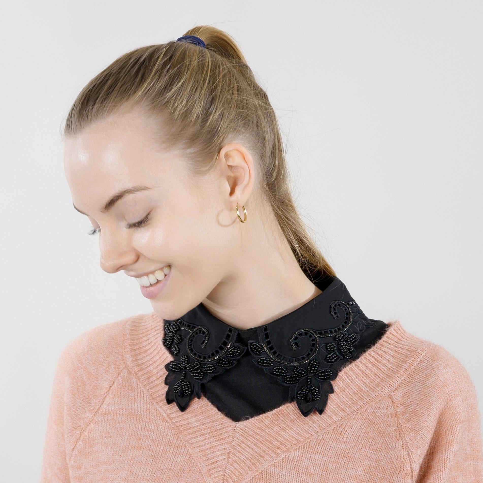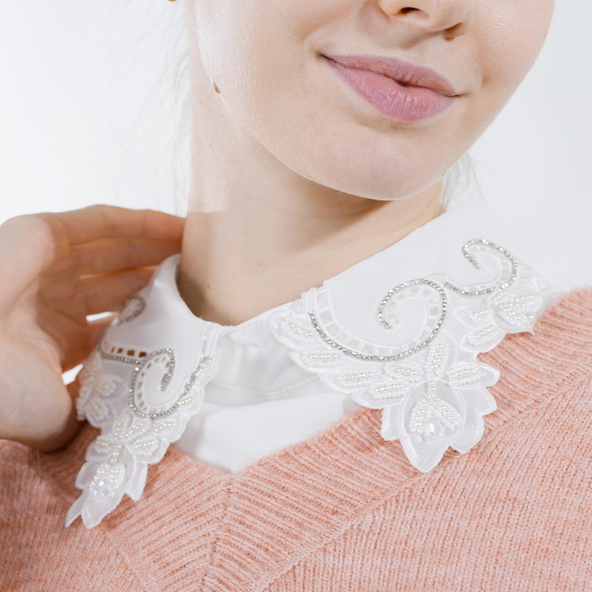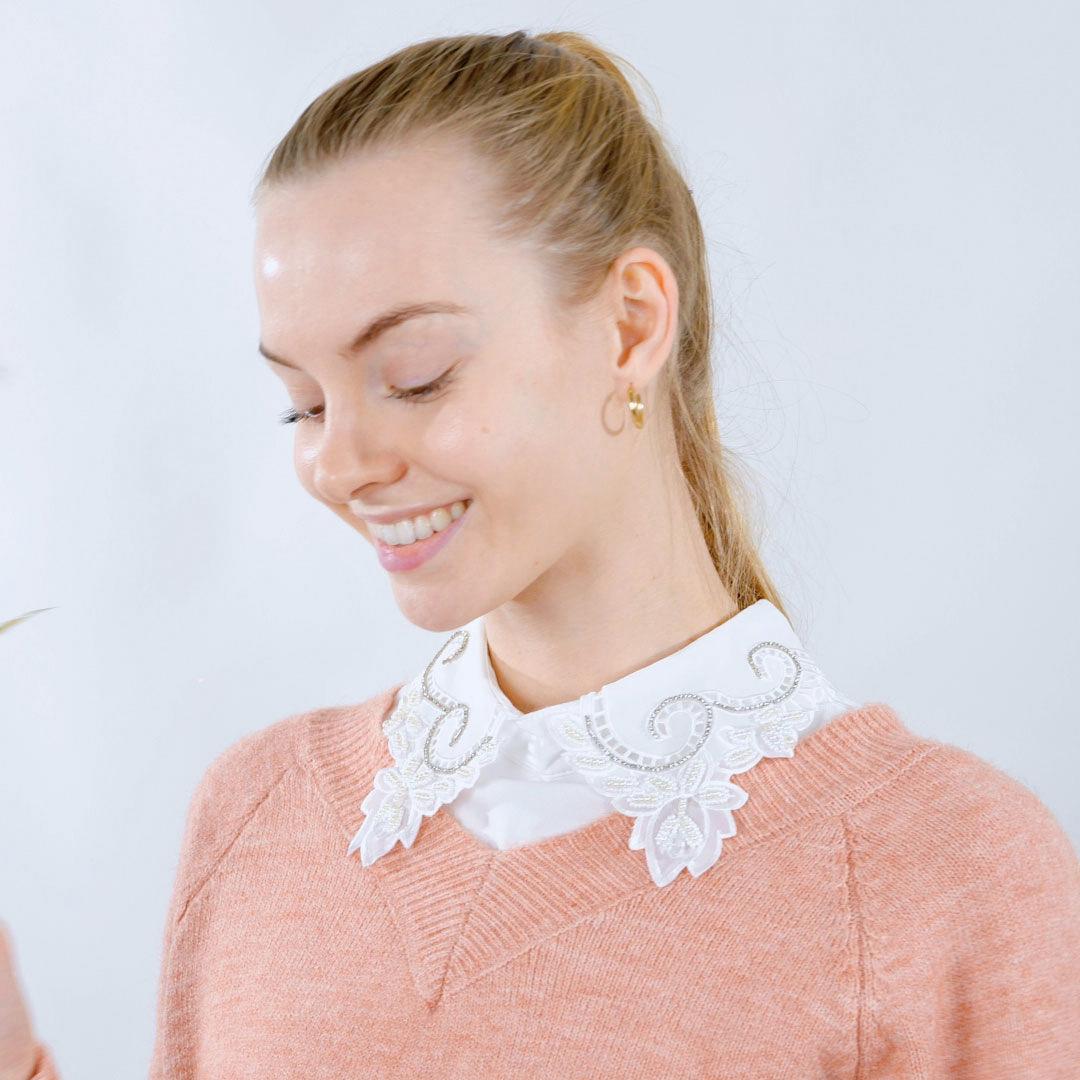 Nuevo Fabricante Transfronterizo Venta al por Mayor Popular Cuello Bordado Hecho a Mano Cuello de Pedrería Versátil Cuello Mandarín Blanco y Negro Cuello Falso