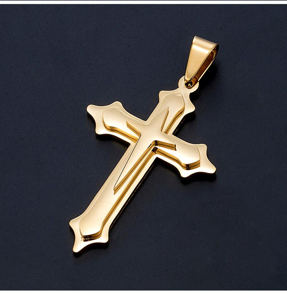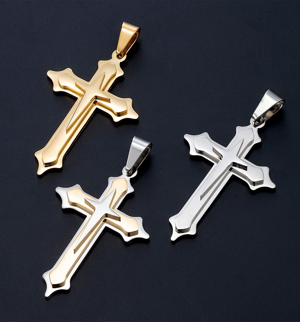 Joyería de acero inoxidable transfronteriza europea y americana, estilo Ins, colgante de cruz simple multicapa, collar de cruz de hip-hop de moda
