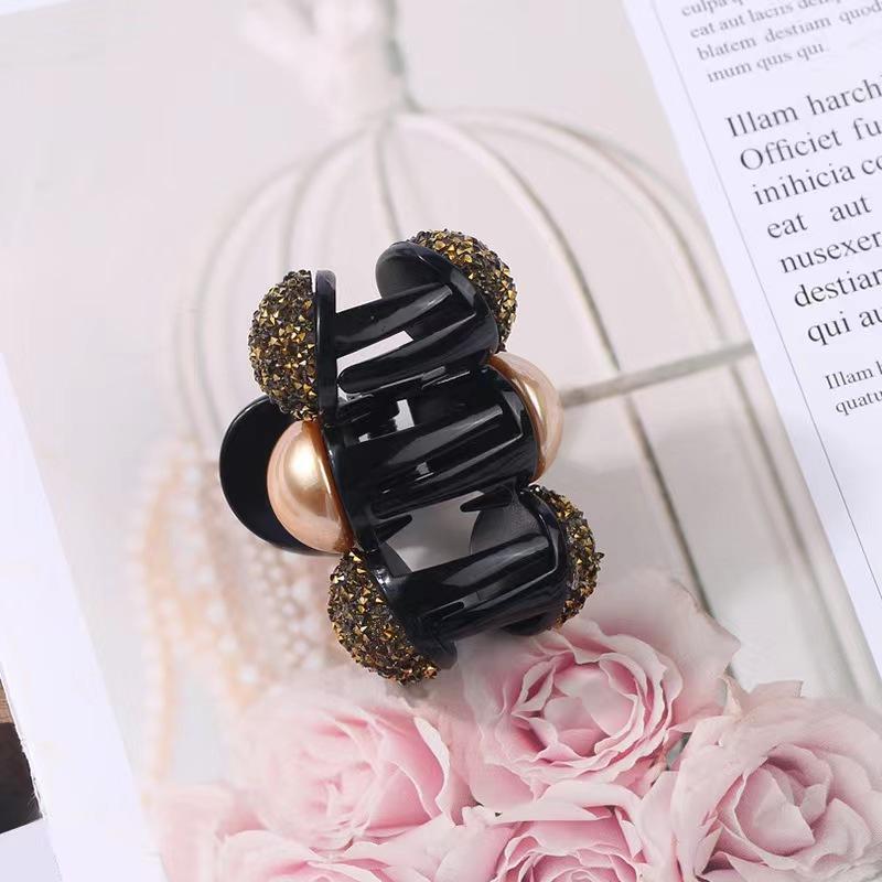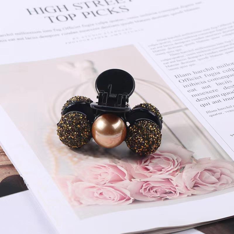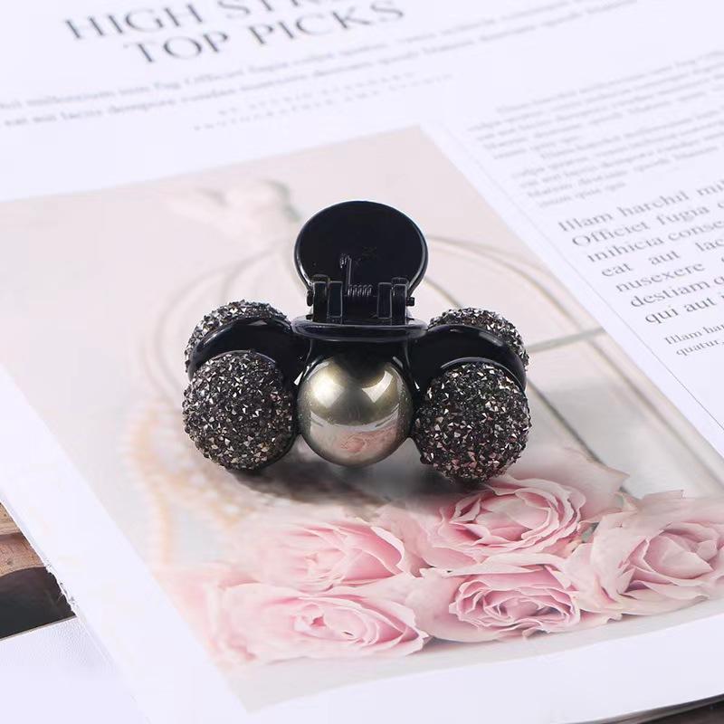 Pinza pequeña francesa retro de alta calidad con diamantes de imitación y perlas, para atar el cabello, diseño de lujo ligero, pinza de tiburón, accesorios para el cabello femenino