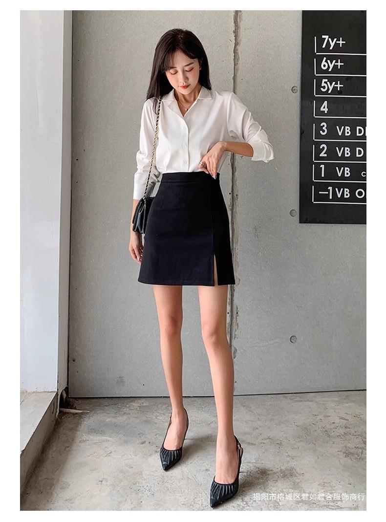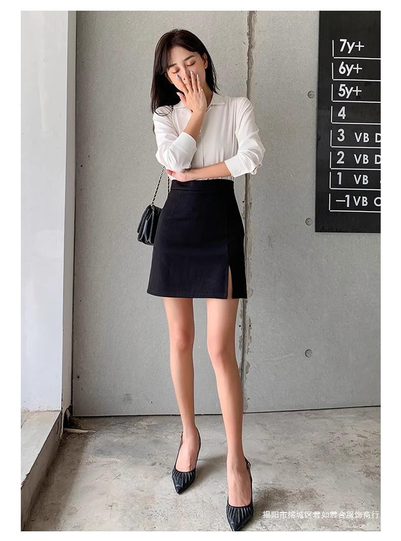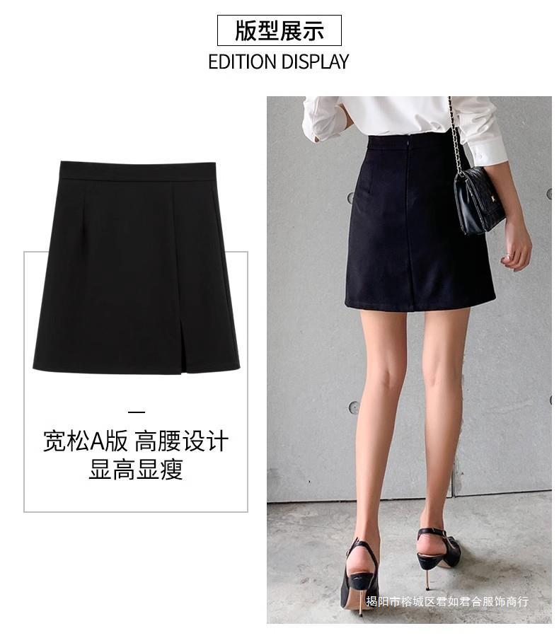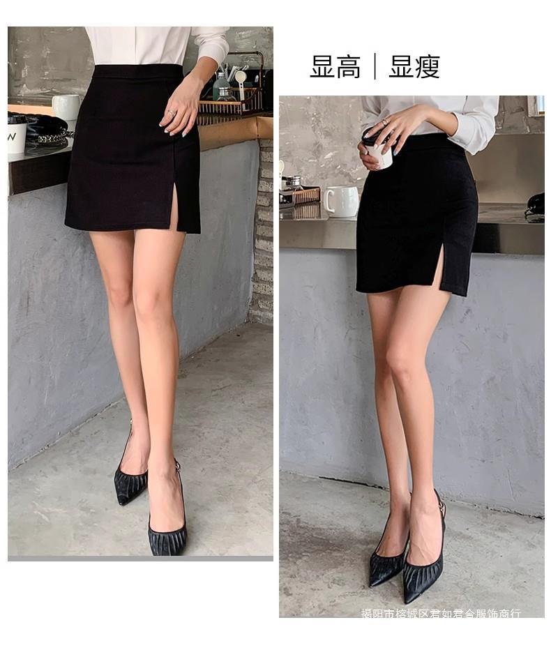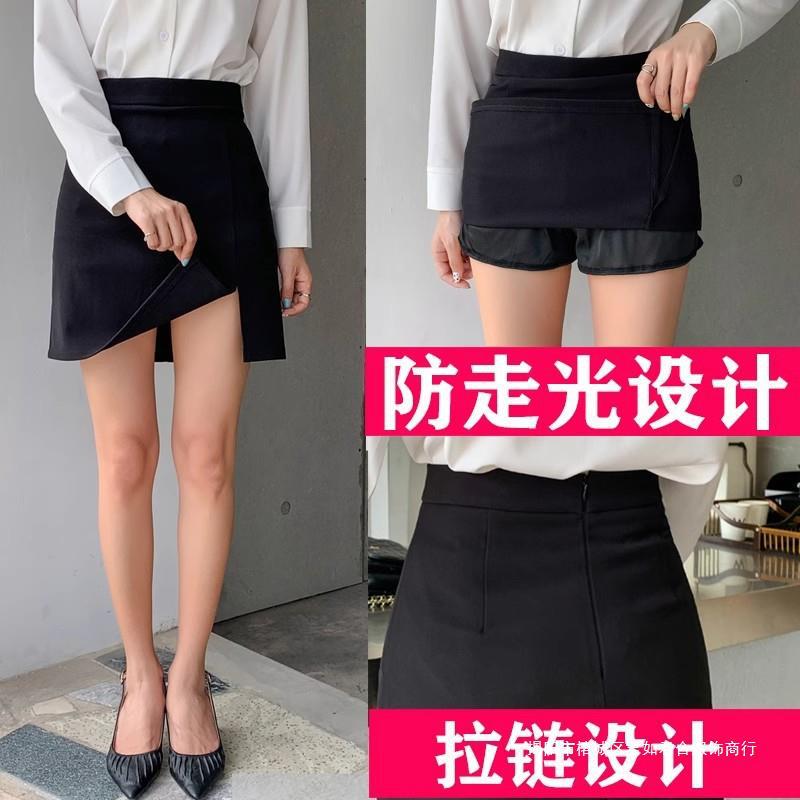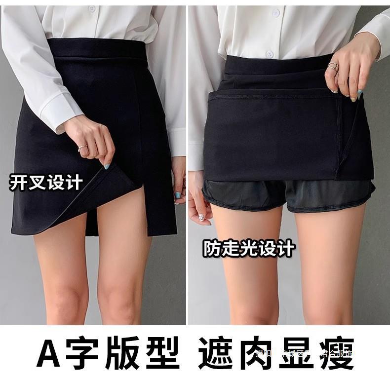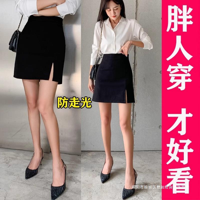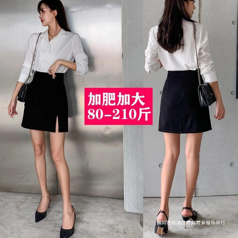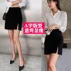 Falda de traje para mujer, talla grande, para chica gordita, nueva, negra, línea A, falda corta, falda de cintura alta dividida, falda de cadera, pantalones, falda