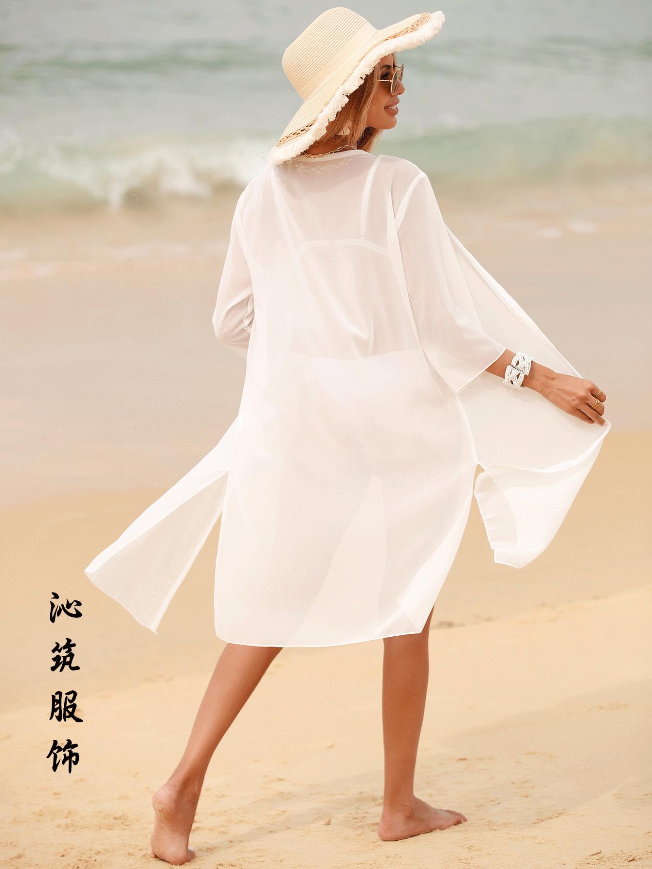 Blusa playera de gasa tipo cárdigan para mujer, estilo bikini, con siete mangas y protector solar, estilo europeo y americano, 2024