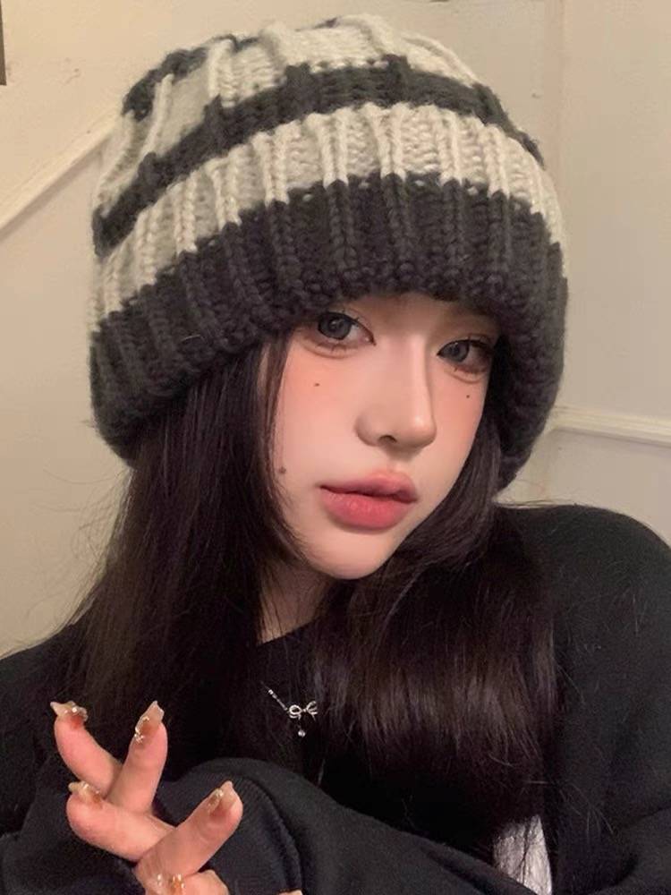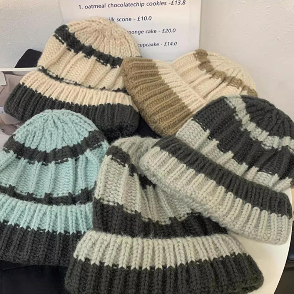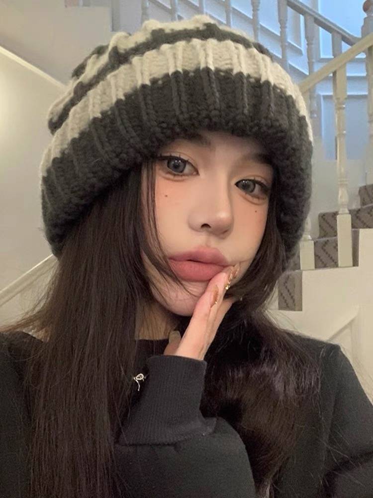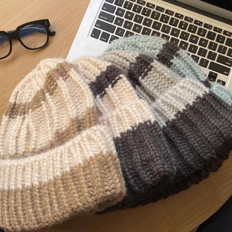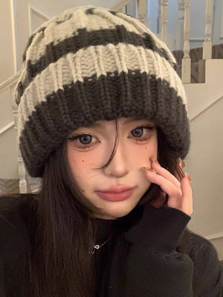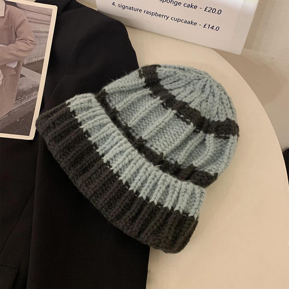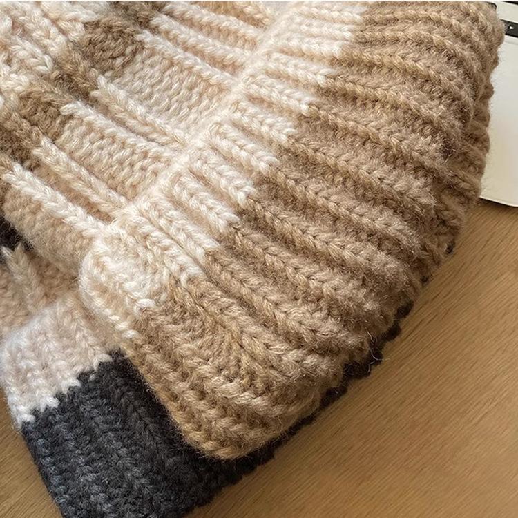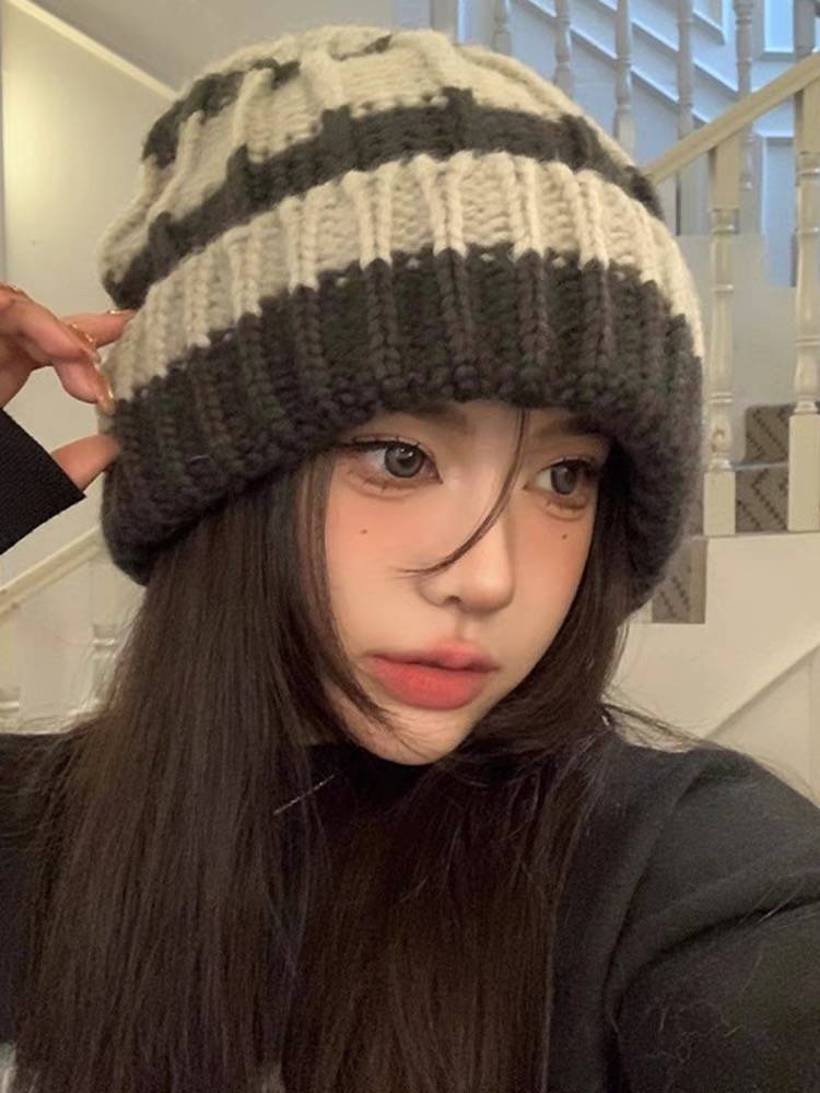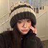 Gorro de lana de punto para mujer, otoño e invierno, tejido grueso, combinable, cálido, resistente al frío, con puntera y orejeras, forro polar, cara pequeña
