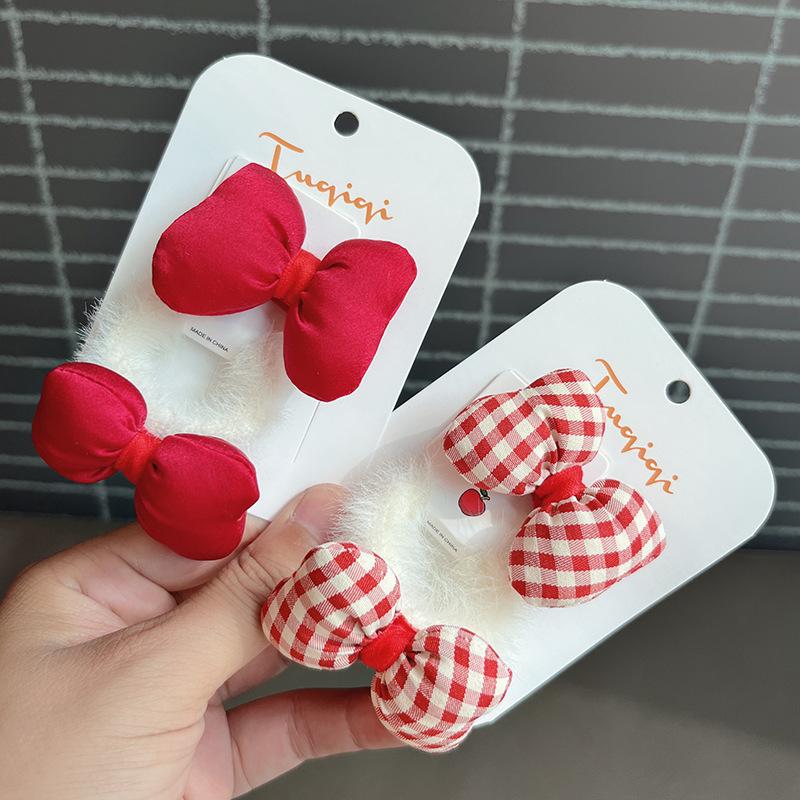 Set de dos piezas de pinza para el cabello con lazo y banda elástica