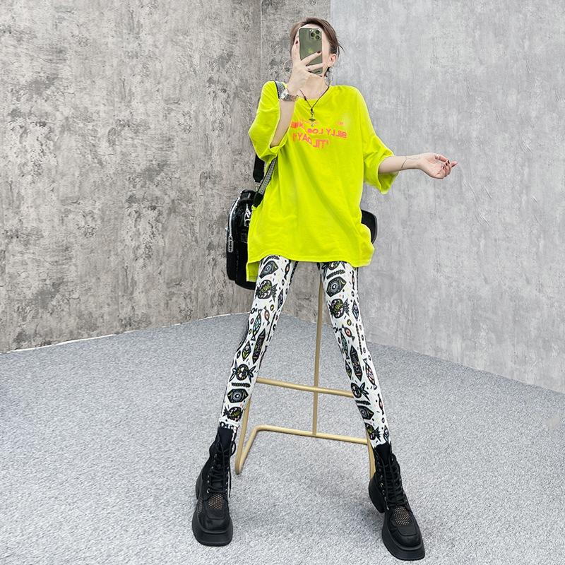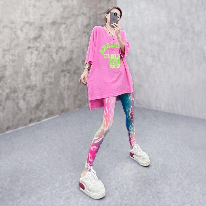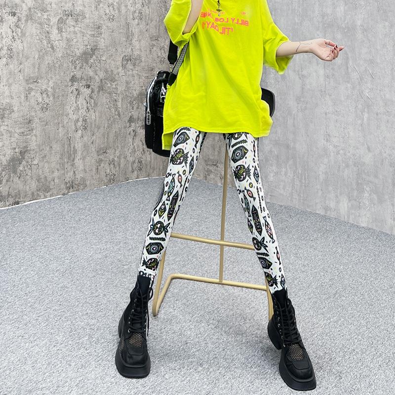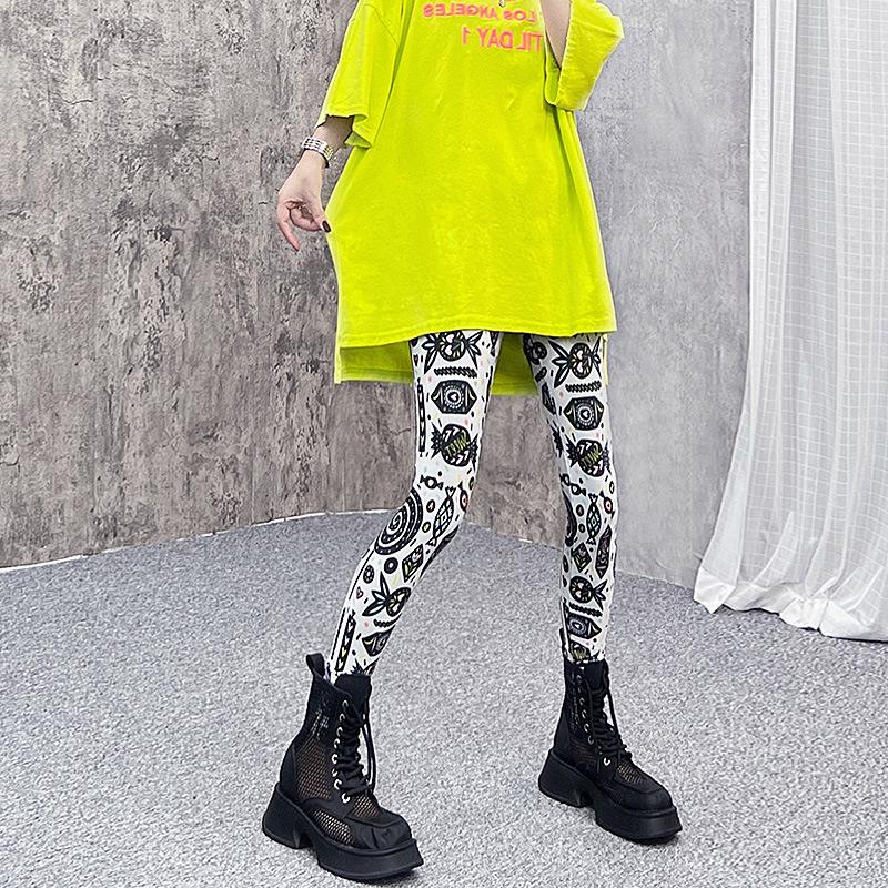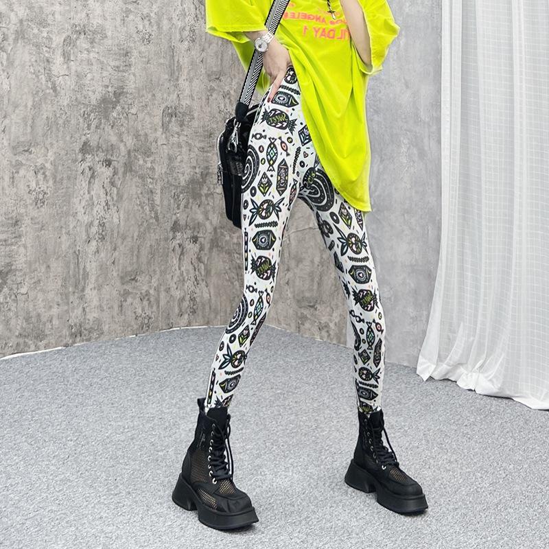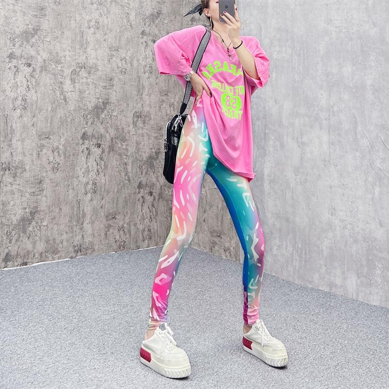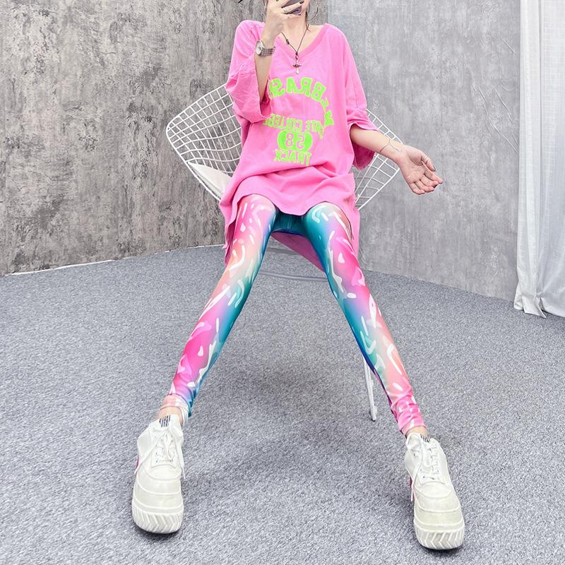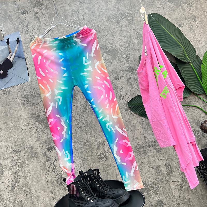 Pantalones Estampados Graffiti Degradado Polvo Azul Colorido Elásticos Cintura Alta Pantalones Elásticos Nuevos 2023 Pantalones de Pierna Recortada